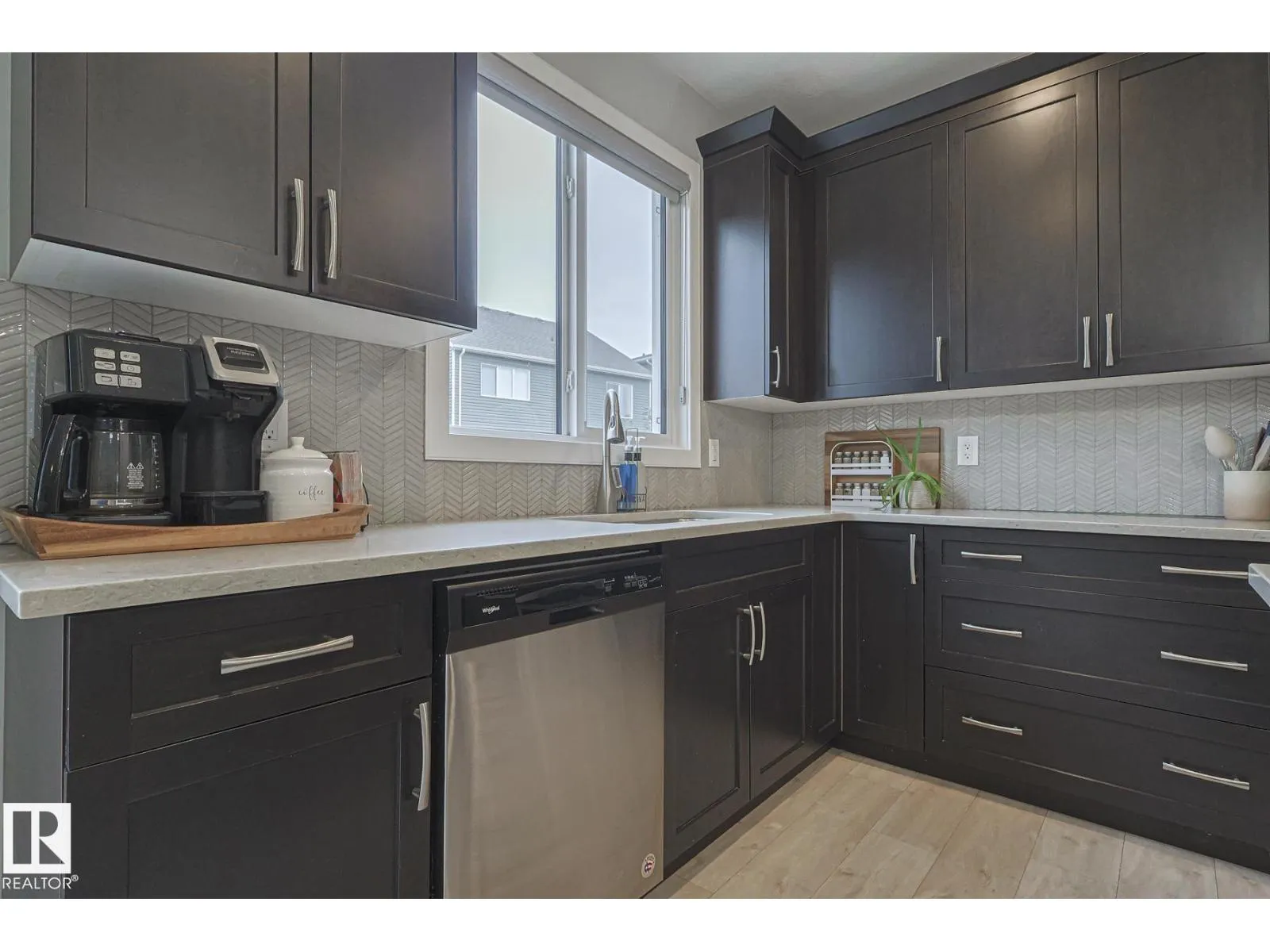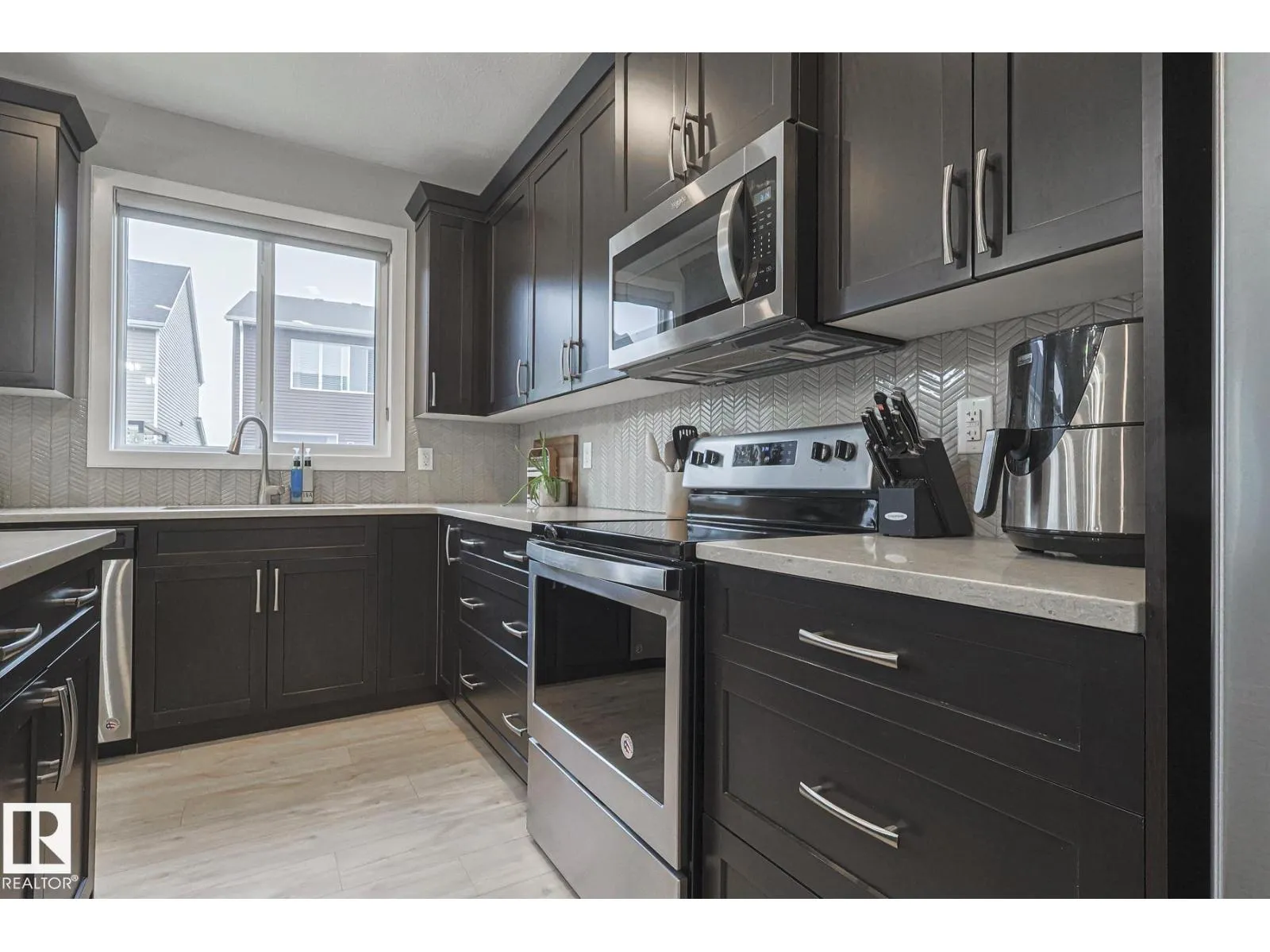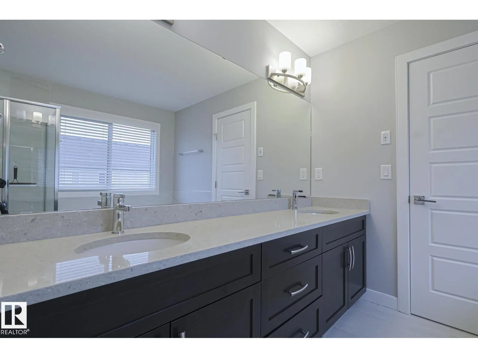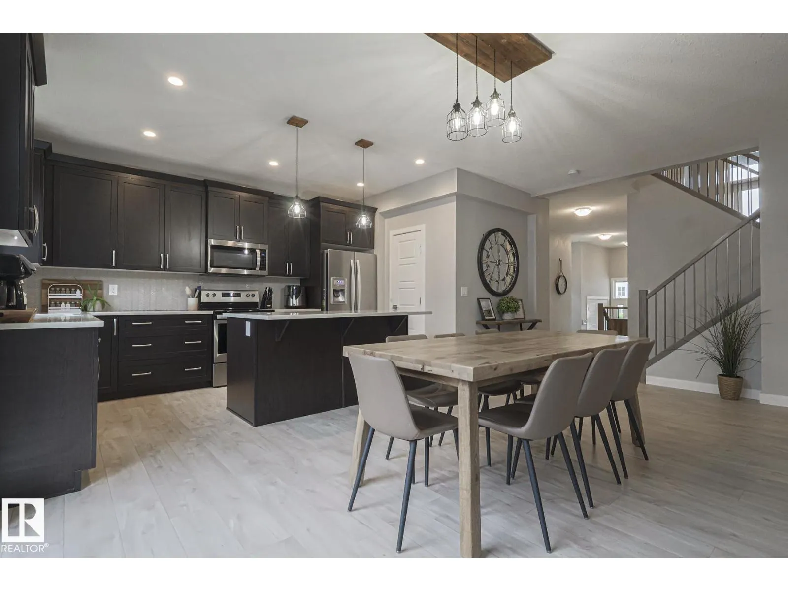 Absolutely stunning! Mattamyâs popular model, The Banff, is located in the desirable community of Stillwater. This open-concept home showcases quality craftsmanship and design. Perfect for large families, the main floor features 9â ceilings and large windows that fill the space with natural light. Enjoy a mix of carpet, ceramic tile, and hardwood flooring with flush-mount wood vents. The gourmet kitchen boasts quartz countertops, stylish cabinetry, a large island with breakfast bar, and a convenient spice kitchen. A cozy gas fireplace warms the great room, and the spacious dining area is perfect for family gatherings. Upstairs, a vaulted bonus room opens to a covered veranda. The top floor includes two generous bedrooms and a master suite with walk-in closet and ensuite. If you're looking for something beyond the usual floor plans, this home is a must-see. Conveniently located near amenities, shopping, West Edmonton Mall, and the Anthony Henday. (id:27476)