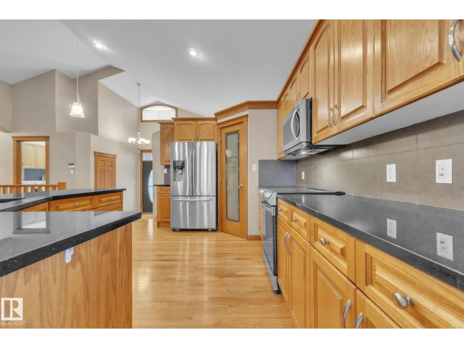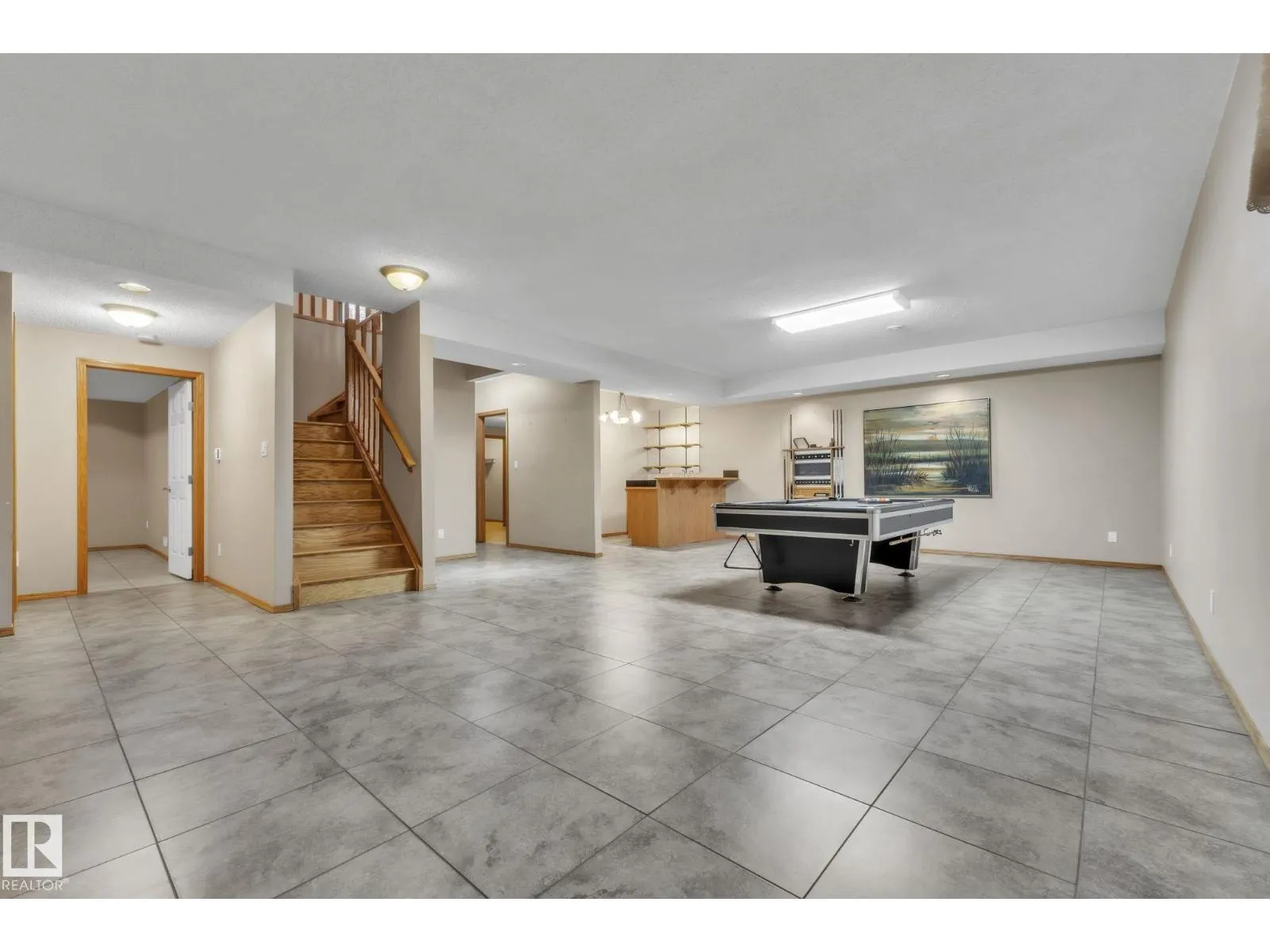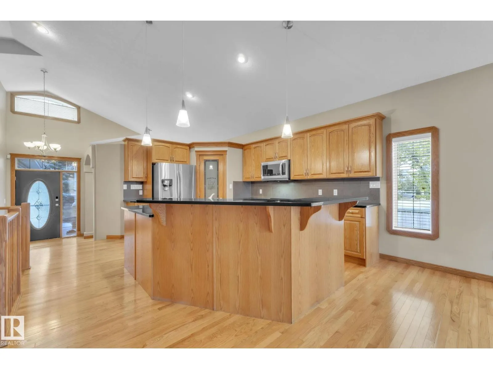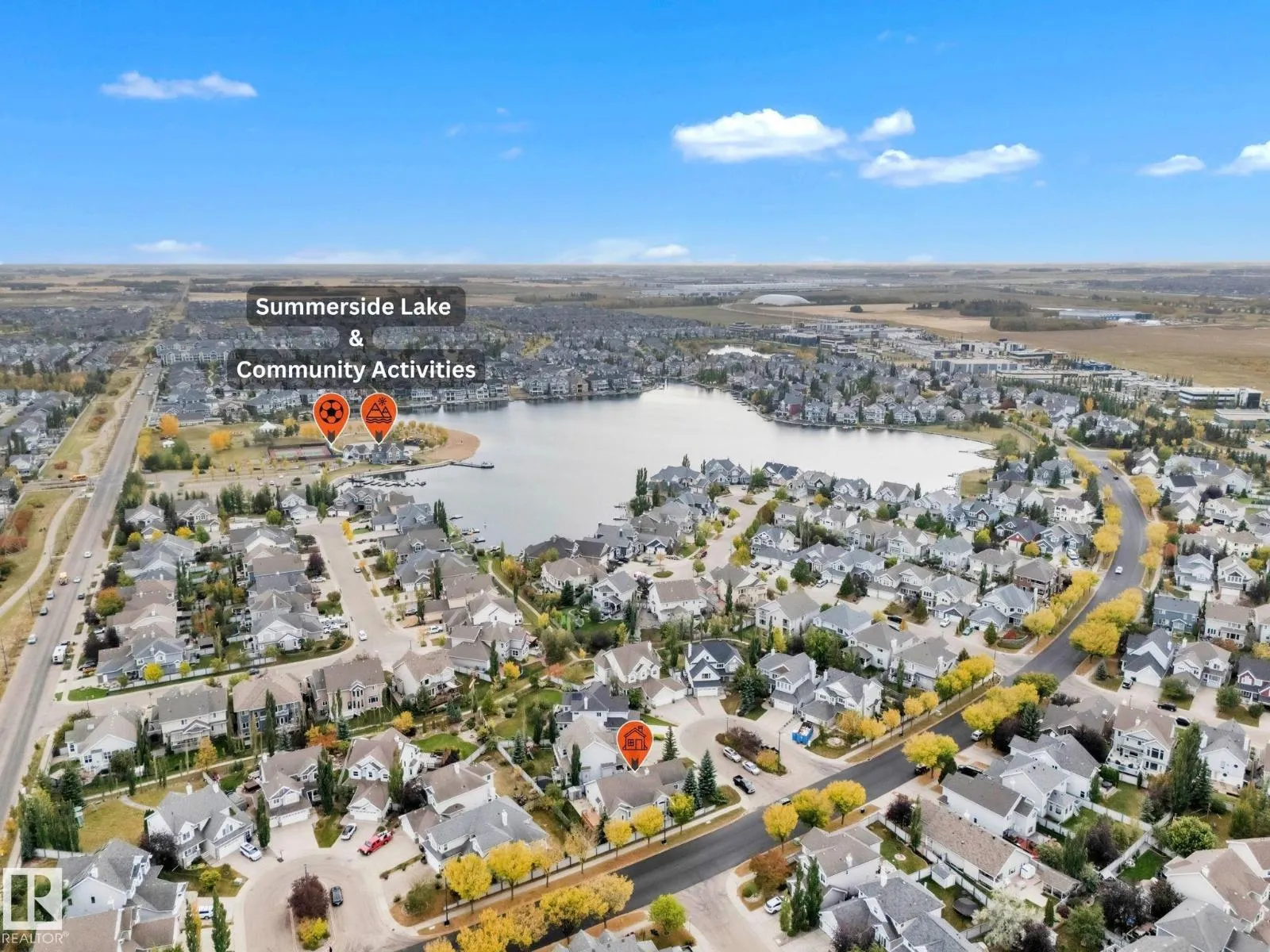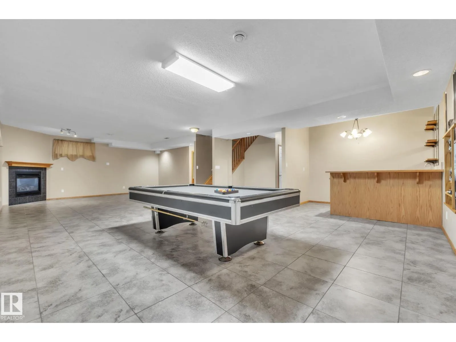 Your next ADDRESS awaits in SUMMERSIDE with quick possession! Located steps from the lake in a quiet cul-de-sac, this beautiful bungalow offers style, space, and an unbeatable location.The main floor features a bright open concept layout with vaulted ceilings, a versatile formal dining room/den/home office, and a spacious kitchen complete with SS appliances, corner pantry, and central island. The eating nook opens to a deck, concrete pad and fenced yard, perfect for relaxing or entertaining.Living room filled with natural light and centered around a gas fireplace with surrounding windows. Enjoy the convenience of main floor laundry, a primary suite with 4-piece ensuite, 2nd bedroom and full bathroom. The fully finished basement is built for entertaining with in-floor heating, a second fireplace, massive rec room, wet bar, and pool table (included!).2 additional bedrooms, bathroom, and plenty of storage complete this level.Hardwood floors on the main and a heated garage! Corner lot for added privacy! (id:27476)