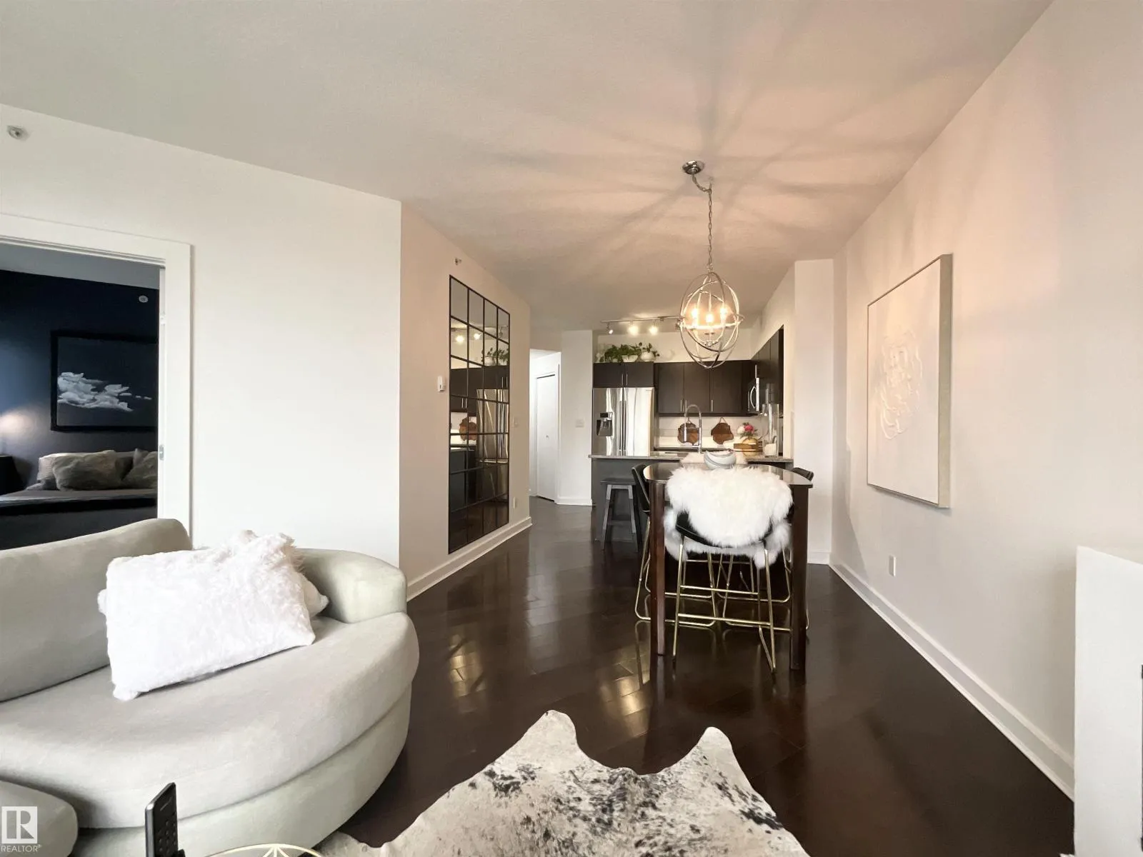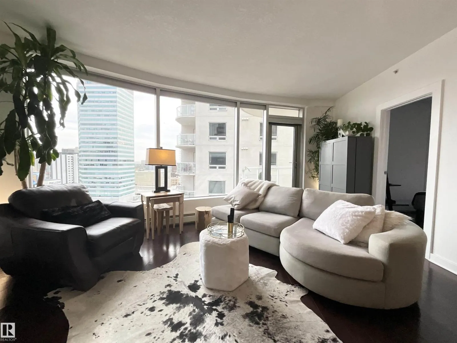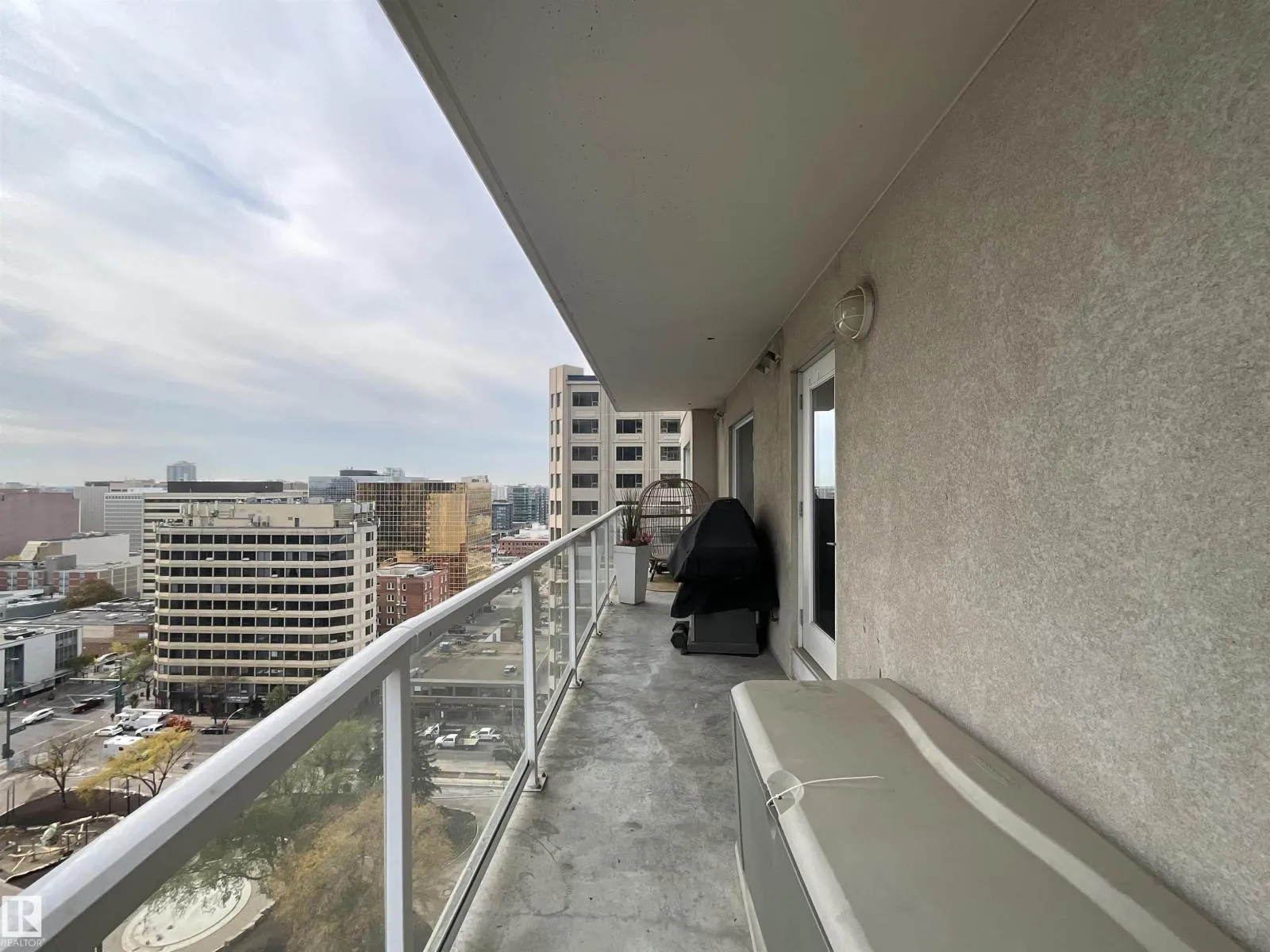 Experience downtown living at its absolute finest in this gorgeous high rise condo in the heart of Edmonton's city center. The pride of ownership is evident as this unit has been impeccably maintained and upgraded since it was constructed. The kitchen is open and bright with granite countertops and stainless steel appliances. Convenient barstool seating off the kitchen counter, with plenty of space for an additional dining room table. The main 3-piece washroom contains quartz countertops, marble flooring, and a spacious standup shower. The primary bedroom contains a sizeable closet, and an ensuite with a full bath and upgraded vanity. The centerpiece of the living room is a stunning, built-in electric fireplace, perfect to cozy up to around the holidays. Or, relax outside on the enormous balcony with breathtaking views of the city and skyline. Located steps away from shopping, grocery stores, Rogers Place, ICE District, and the LRT station. Titled, indoor parking to keep the vehicle warm and free of snow. (id:27476)