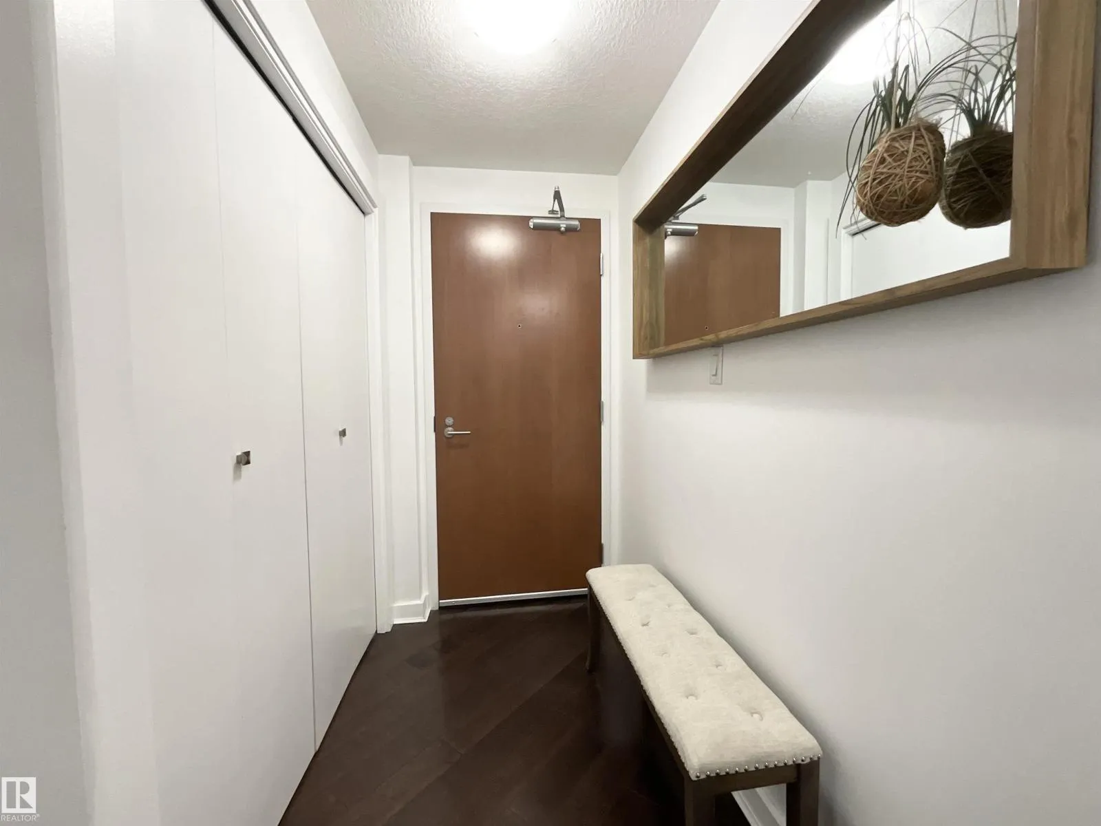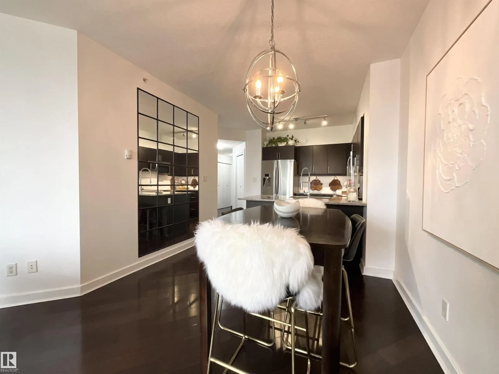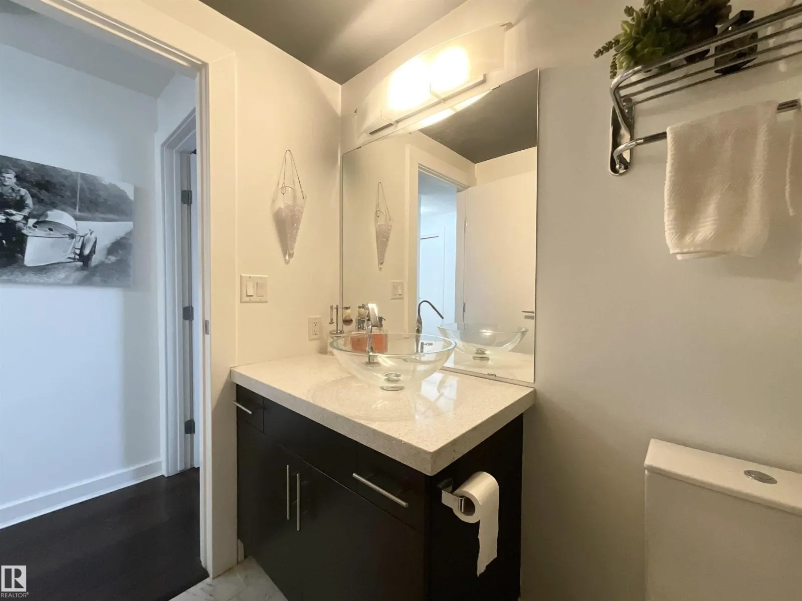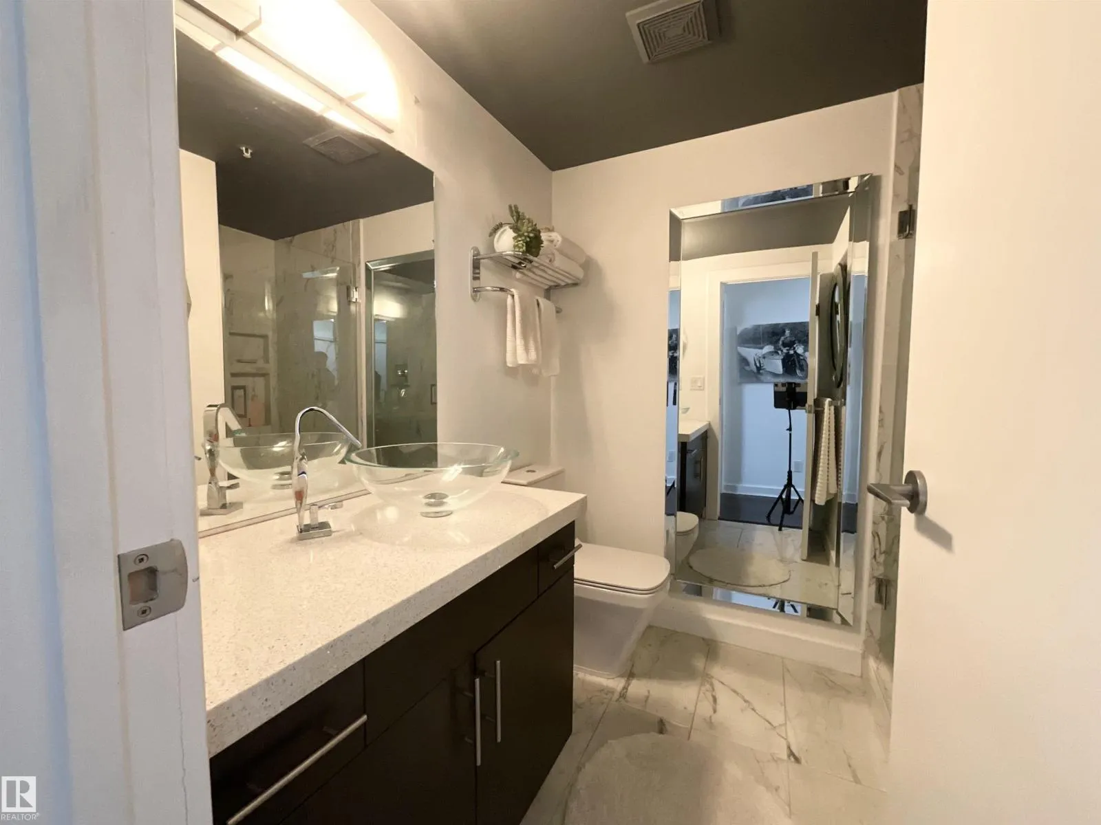 Experience downtown living at its absolute finest in this gorgeous high rise condo in the heart of Edmonton's city center. The pride of ownership is evident as this unit has been impeccably maintained and upgraded since it was constructed. The kitchen is open and bright with granite countertops and stainless steel appliances. Convenient barstool seating off the kitchen counter, with plenty of space for an additional dining room table. The main 3-piece washroom contains quartz countertops, marble flooring, and a spacious standup shower. The primary bedroom contains a sizeable closet, and an ensuite with a full bath and upgraded vanity. The centerpiece of the living room is a stunning, built-in electric fireplace, perfect to cozy up to around the holidays. Or, relax outside on the enormous balcony with breathtaking views of the city and skyline. Located steps away from shopping, grocery stores, Rogers Place, ICE District, and the LRT station. Titled, indoor parking to keep the vehicle warm and free of snow. (id:27476)