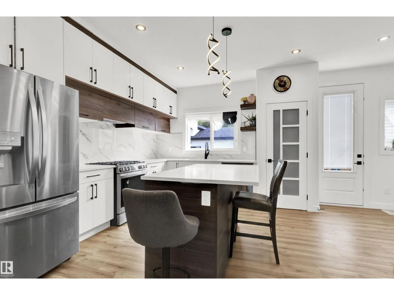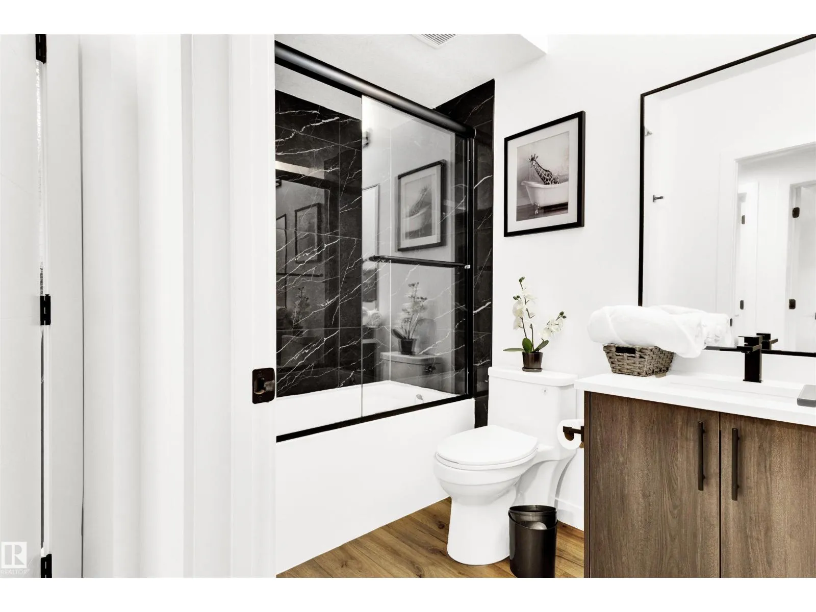 Step into this stylish home with a 2-BEDROOM LEGAL BASEMENT, ideally located just steps from Edmontonâs breathtaking River Valley trails. This home impresses with its sleek modern design, open-concept layout, and upscale finishes throughout. The main living area features bright, airy spaces with large windows and a chic colour palette. A fully equipped kitchen with stainless steel appliances and a half-bathroom completes this level. Upstairs, youâll find three generous bedrooms, a laundry area, and two full washrooms, including the ensuite washroom and a walk-in closet designed for comfort and convenience. The 2-bedroom LEGAL basement suite with its own private entrance is ideal for generating rental income, hosting extended family, or creating a flexible live-in arrangement. Situated in a highly desirable neighborhood near the river valley, downtown, schools, parks, and all amenities, this home offers the perfect blend of lifestyle, location, and investment opportunity. (id:27476)