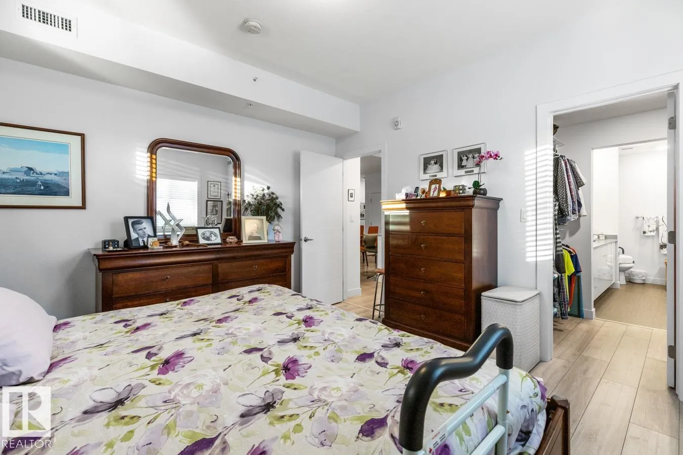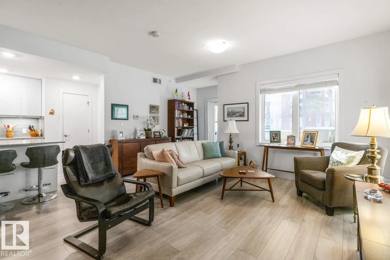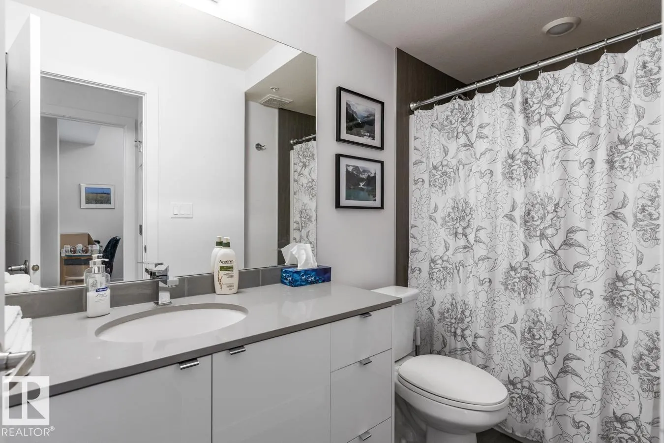 Welcome to this bright and beautifully finished 2 bed, 2 bath corner unit condo in the heart of Bonnie Doon. Youâll love the open-concept layout, designed for both everyday comfort and effortless entertaining. The kitchen features quartz countertops, a large island, glass tile backsplash, and stainless steel appliances. The spacious living & dining area all bathed in natural light from generous windows, opens to a large patio, perfect for relaxing mornings and summer evenings. The primary suite offers a walk-through closet and spa-like 5-piece ensuite with dual vanity and a relaxing standalone soaker tub. A second bedroom and full 4-piece bath offer flexibility for guests or a home office. Thoughtful touches include in-suite laundry with extra storage, A/C, heated underground parking with storage cage, and a location thatâs truly walkableâclose to parks, transit, cafés, and restaurants. All this in a well-built concrete building on a beautiful tree-lined street. (id:27476)