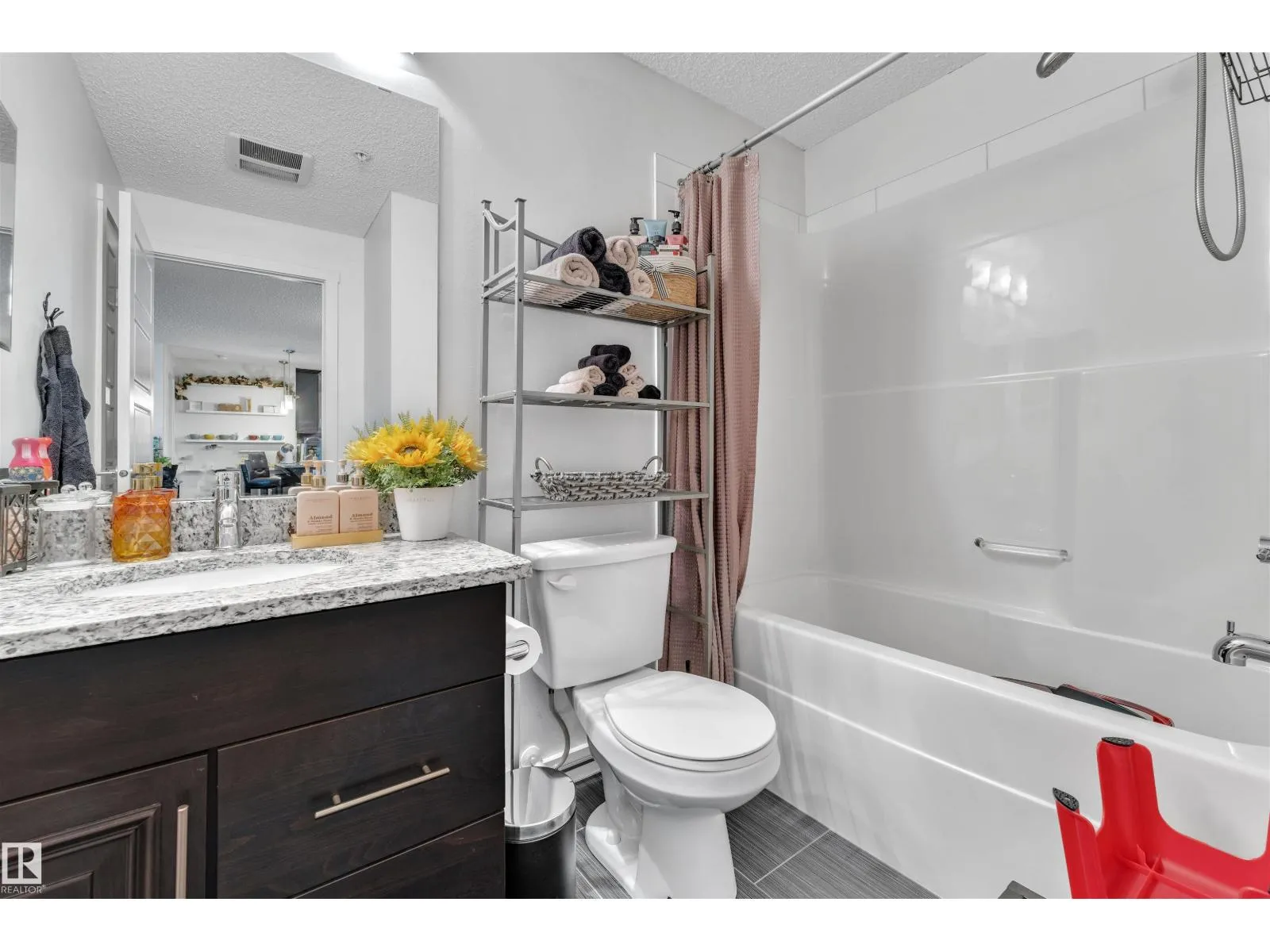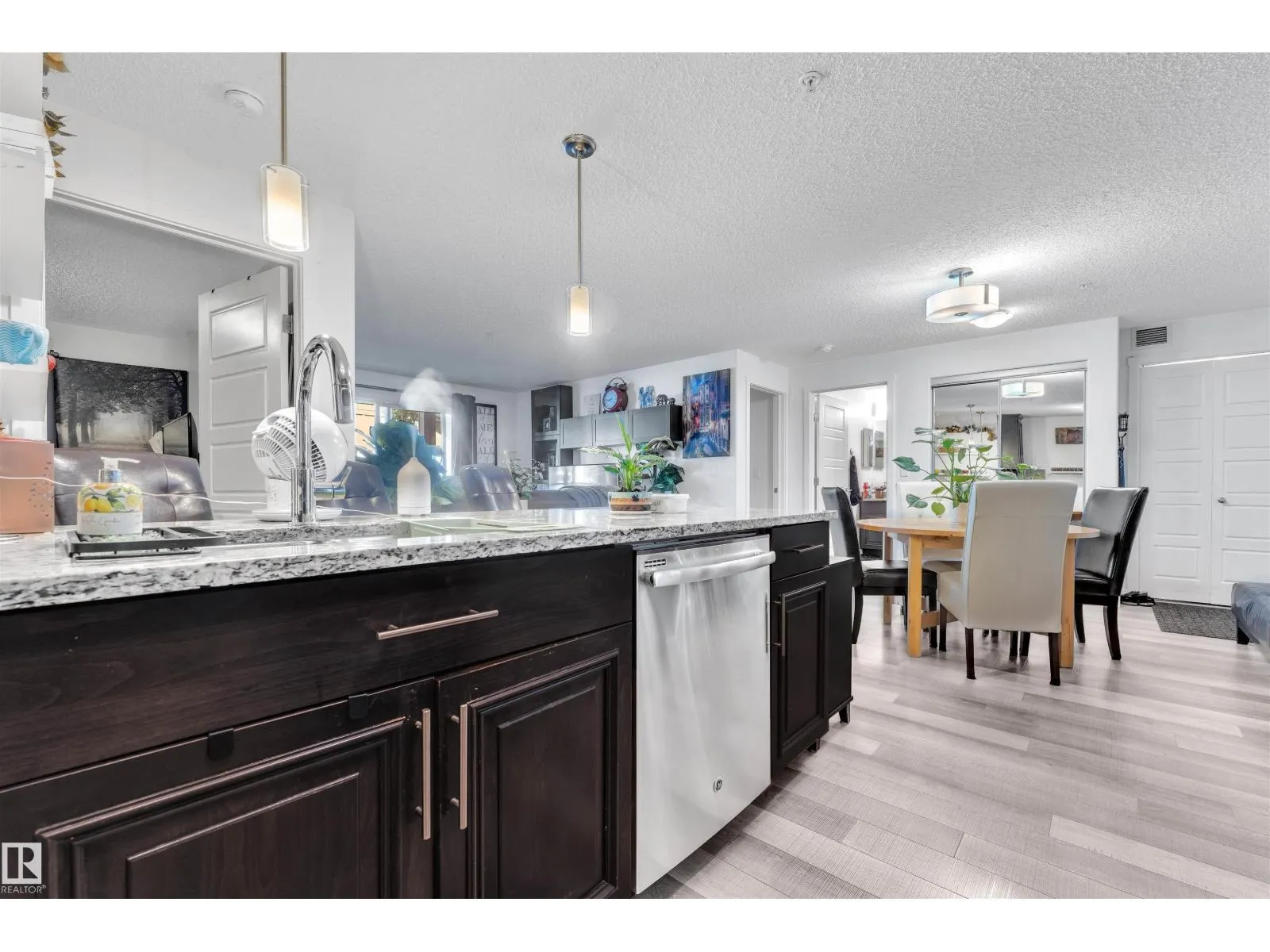 This SPACIOUS open layout condo is located in the sought after neighbourhood of Schonsee. Featuring 2 bedrooms, 2 bathrooms, a grand living space with LUXURY VINYL PLANK flooring and a kitchen with ample cabinetry plus GRANITE countertops. A patio is located off the living room where you can catch sun rays on a SUNNY day. An UNDERGROUND PARKING STALL is included. Looks like NEW, very BRIGHT, and ready to move into! (id:27476)