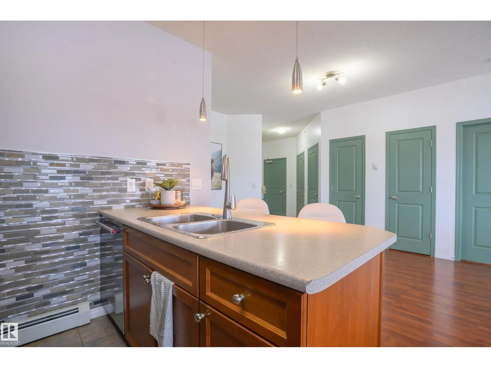 Welcome to this stunning 4th floor corner unit in an exclusive, highly sought after community. Meticulously maintained, this home radiates pride of ownership and offers a pristine interior that is truly move in ready. Spanning a bright and open layout, this unit features 2 spacious bedrooms and 2 full bathrooms, perfect for singles, professionals, or growing families. You will appreciate the convenience and security of your own TITLED underground parking stall and storage unit. The location is unbeatable! Enjoy quick access to the airport, weekend rounds at nearby golf courses, and peaceful walks along the creek and surrounding greenspaces. With schools and shopping just minutes away, everything you need is right at your doorstep. Offering an ideal blend of luxury, convenience, and comfort, this is simply the perfect place to call home. (id:27476)