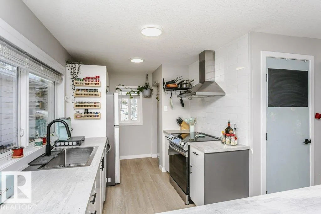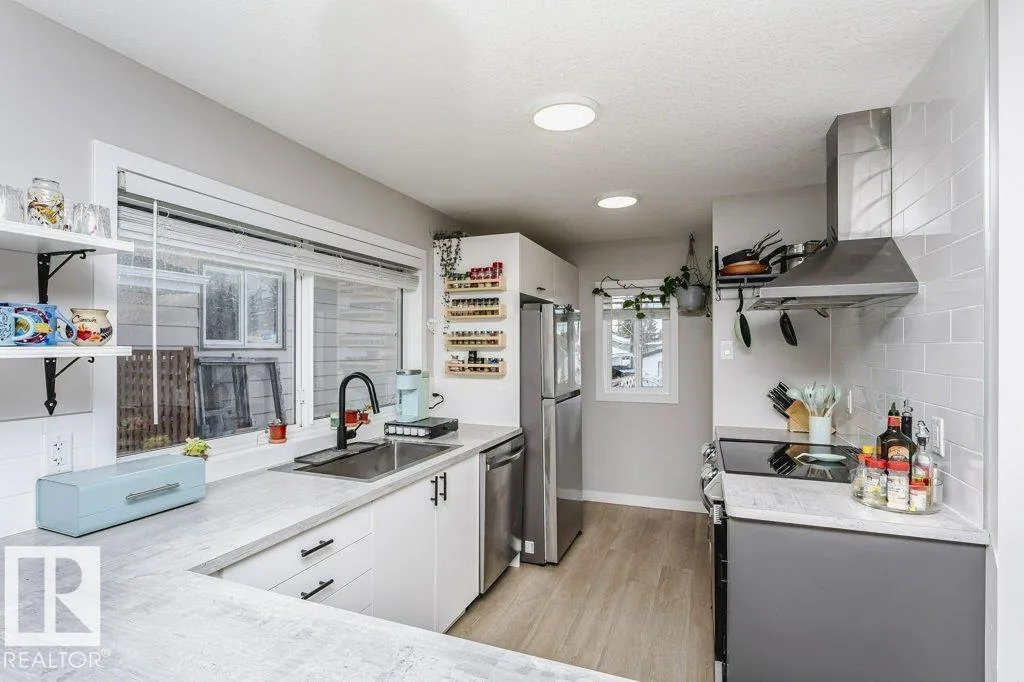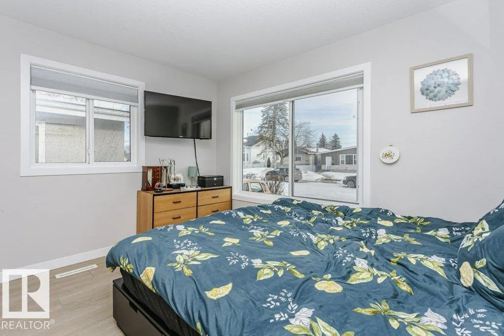 Cute as a button and beautifully updated, this bright and sunny bungalow is ideally located in the mature and highly sought-after neighbourhood of Jasper Park. The main floor features a stunning, updated chefâs kitchen with stainless steel appliances, ample counter space, and an abundance of natural light from large windows throughout the home. Stylish updated vinyl plank flooring adds a modern touch. The fully finished basement offers additional living space, complete with a bedroom and full bathroom, perfect for guests, a home office, or a growing family. Situated on a large lot, the home also features a rear deck ideal for relaxing or entertaining. Extensive updates include siding, soffits, fascia, and roof, offering peace of mind for years to come. Located just down the street from a park and school, with numerous amenities nearby, this move-in-ready home combines charm, functionality, and an unbeatable location. (id:27476)