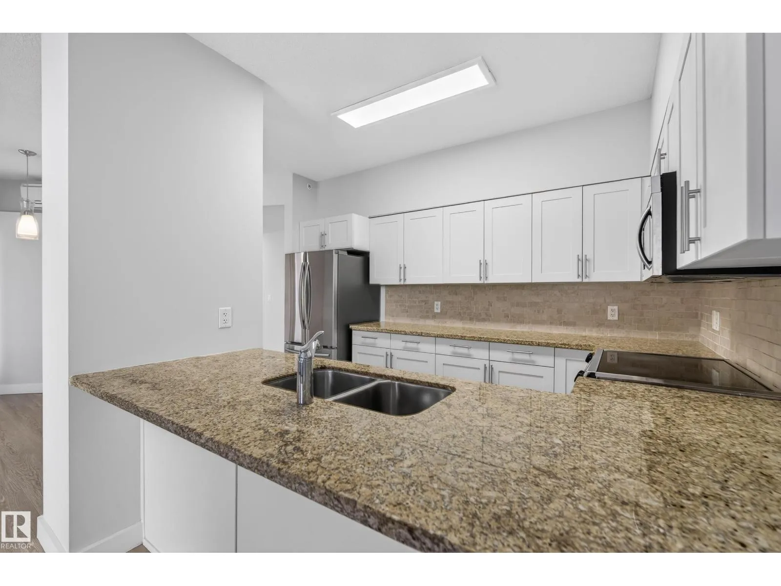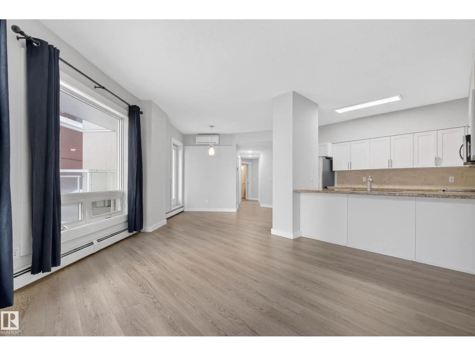Experience the best of downtown living in this bright 2-bedroom, 2-bath condo, with titled TANDEM underground parking and a large private patio perfect for entertaining. The open-concept living and dining area flows into a modern kitchen with granite counters, eating bar, and stainless-steel appliances. The spacious primary bedroom offers a generous walk in closet and 3 pc ensuite. The large second bedroom has ample closet space and direct access to the 4 pc bath. Enjoy in-suite laundry, sleek vinyl plank flooring, air conditioning, and plenty of storage. Steps to fantastic restaurants, cafes, shops & nightlife. Minutes to Ice District & Rogers Place. Quick access to the U of A and the rest of the city with LRT across the street. This move-in ready condo is perfect for anyone seeking style, comfort, and vibrant downtown living. (id:27476)