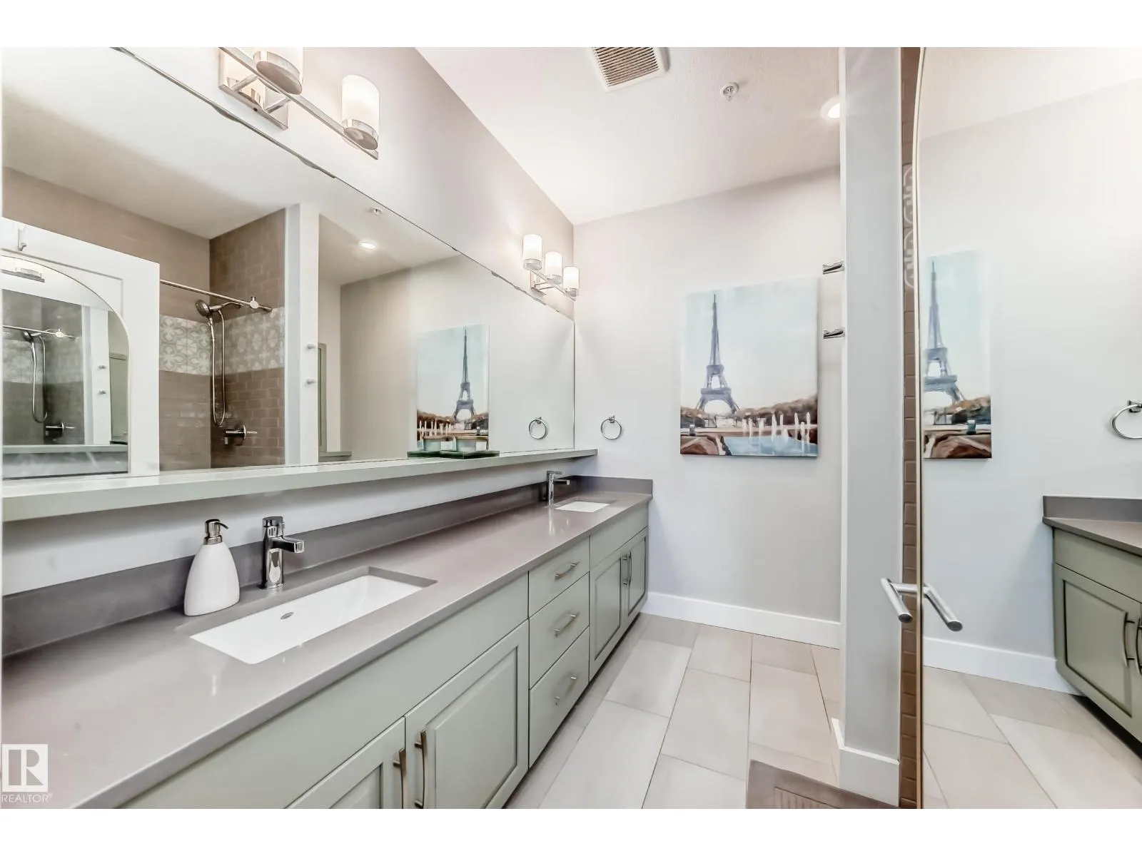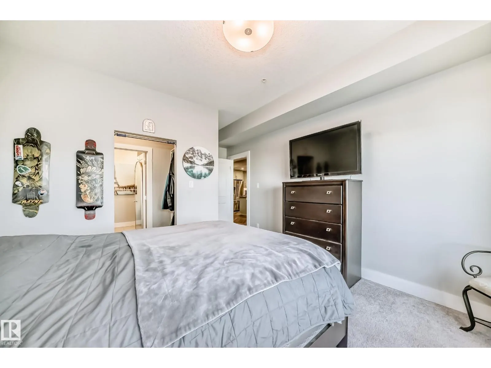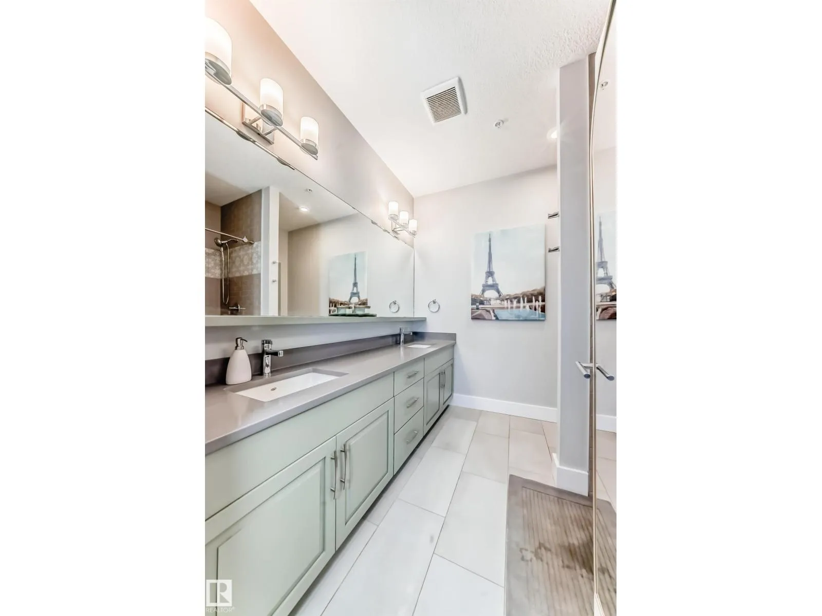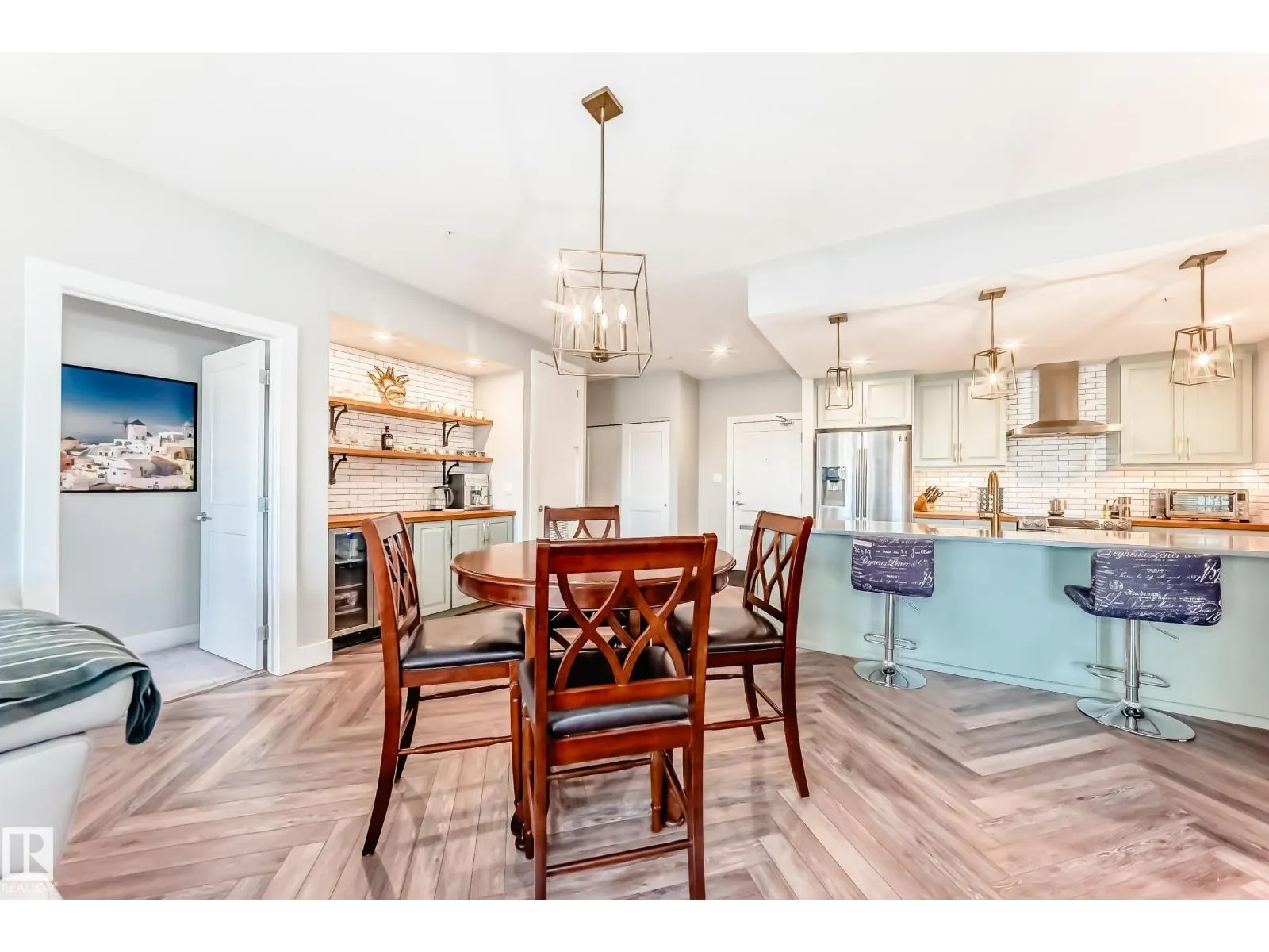 Beautiful Griesbach executive style 1,130 square foot, 2 bedroom, 2 bathroom, 2018 built, 3rd floor condo, in and incredible location backing onto greenspace and lake. The main floor has vinyl plank flooring, separate wet bar with mini fridge, and a great open floor plan with eat up island style kitchen having 2 tone cabinets, quartz countertops, upgraded stainless appliances, walk in pantry & sliding doors to a large balcony. The spacious primary bedroom has walk-through closets, and a 4 piece bathroom. The second bedroom is located close to the main 4 piece bathroom. There are 2 titled parking stalls included underground #98 and surface stall #11. The area has many amenities just minutes away, including shopping, transportation, schools, walking trails, and much more. The Veritas condominium complex has a beautiful front entrance and many extras including, fitness room, air conditioning, guest room, social room, & visitor parking out front. This unit shows pride of ownership and shows a 10 out of 10 (id:27476)