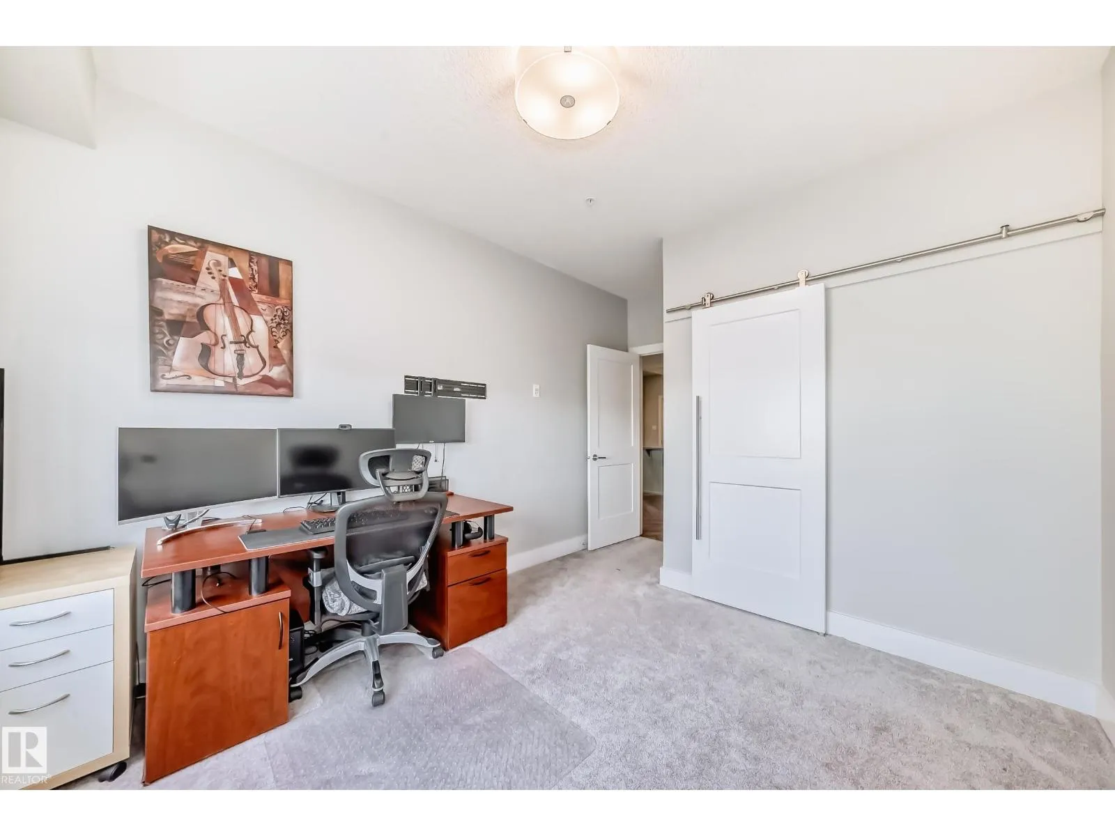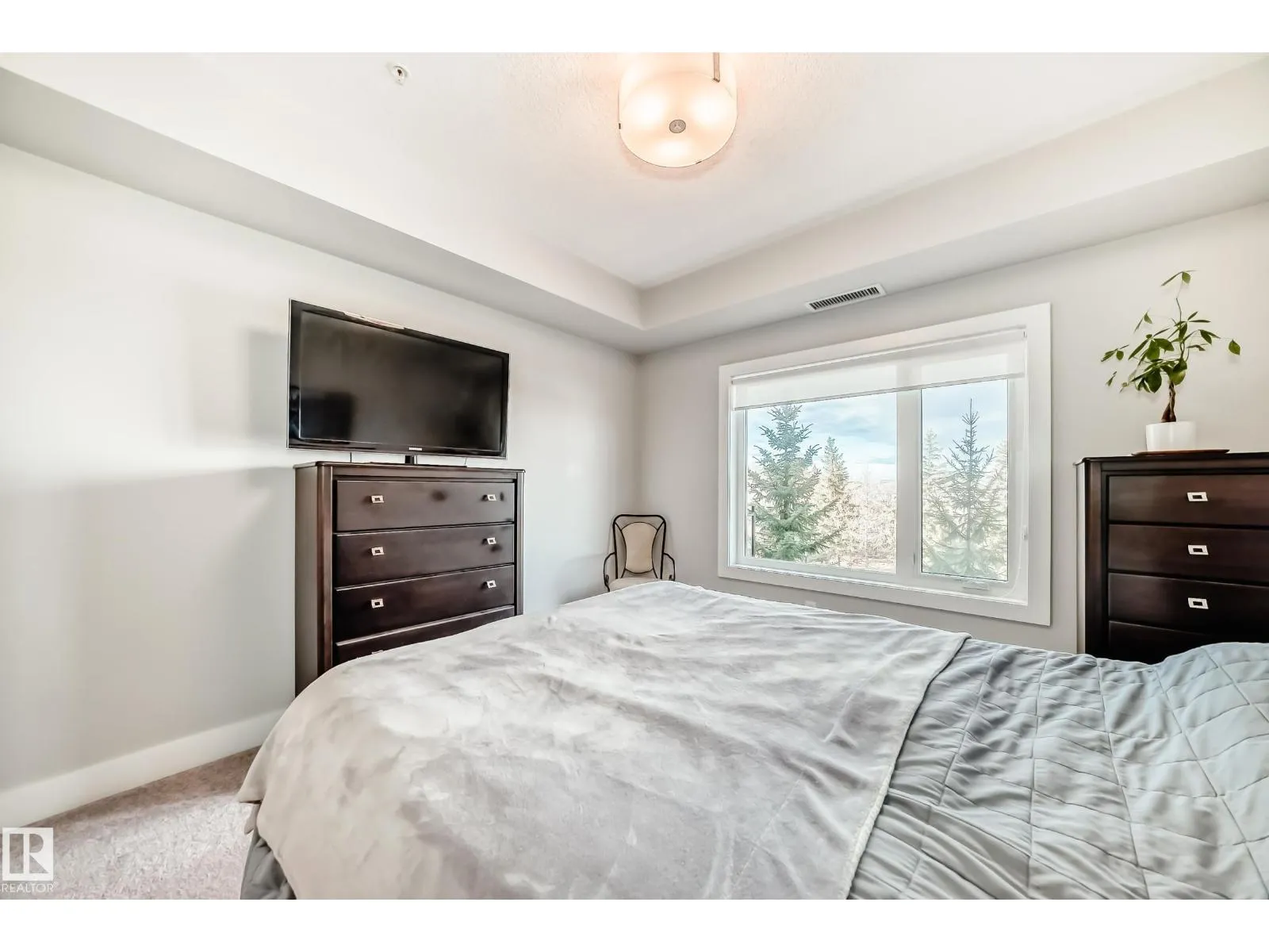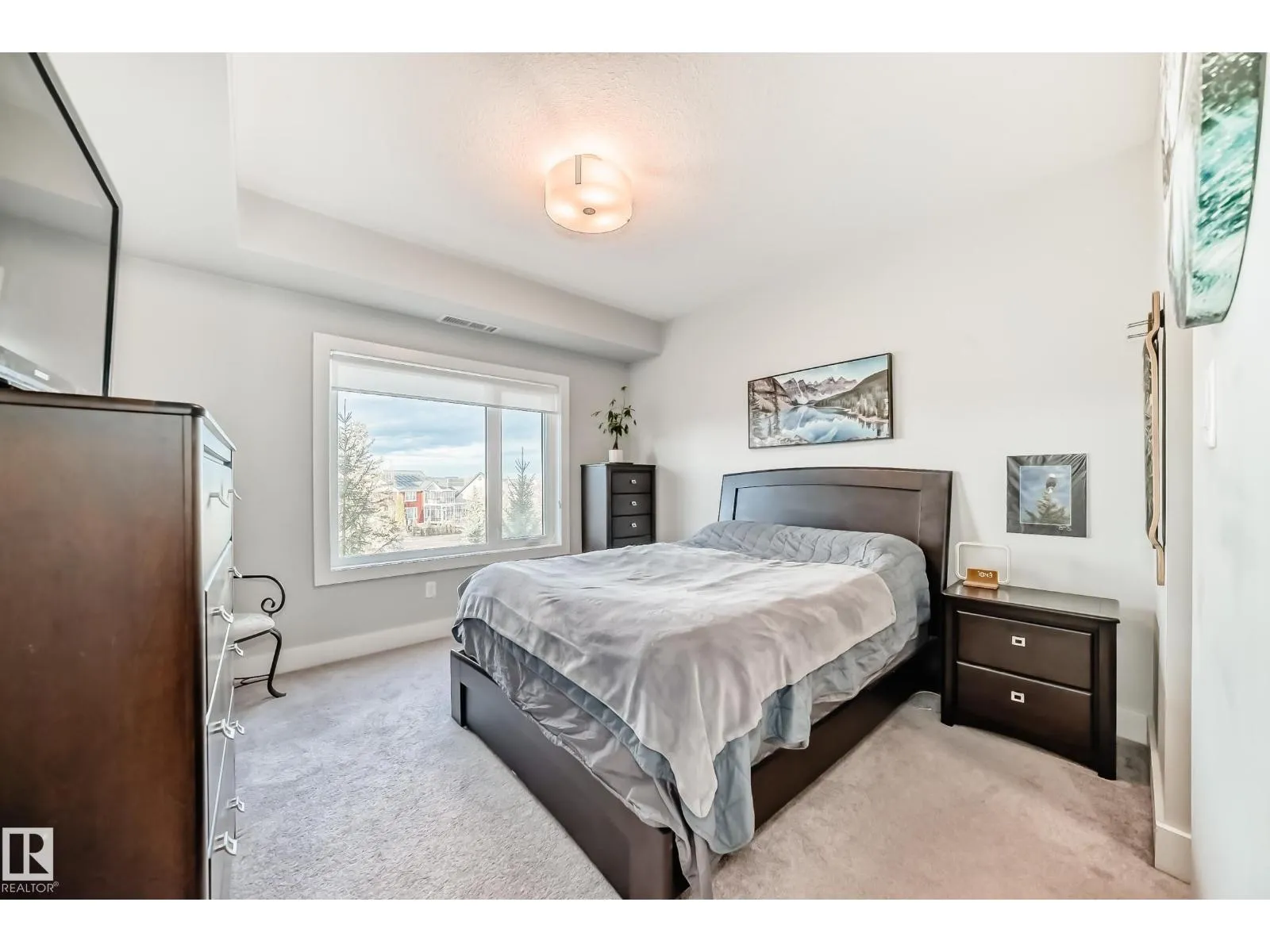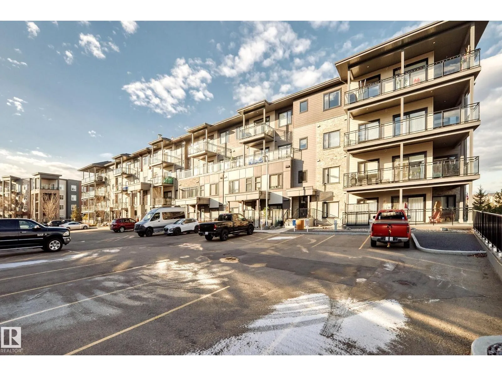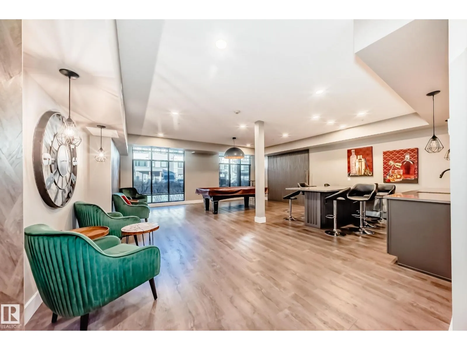 Beautiful Griesbach executive style 1,130 square foot, 2 bedroom, 2 bathroom, 2018 built, 3rd floor condo, in and incredible location backing onto greenspace and lake. The main floor has vinyl plank flooring, separate wet bar with mini fridge, and a great open floor plan with eat up island style kitchen having 2 tone cabinets, quartz countertops, upgraded stainless appliances, walk in pantry & sliding doors to a large balcony. The spacious primary bedroom has walk-through closets, and a 4 piece bathroom. The second bedroom is located close to the main 4 piece bathroom. There are 2 titled parking stalls included underground #98 and surface stall #11. The area has many amenities just minutes away, including shopping, transportation, schools, walking trails, and much more. The Veritas condominium complex has a beautiful front entrance and many extras including, fitness room, air conditioning, guest room, social room, & visitor parking out front. This unit shows pride of ownership and shows a 10 out of 10 (id:27476)