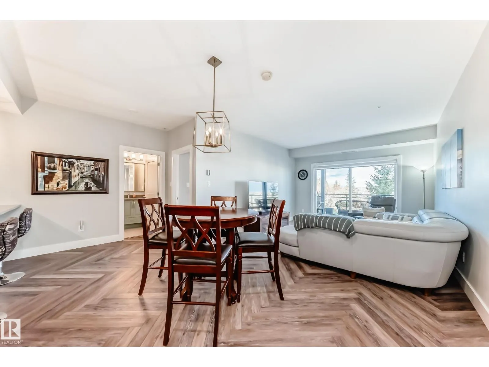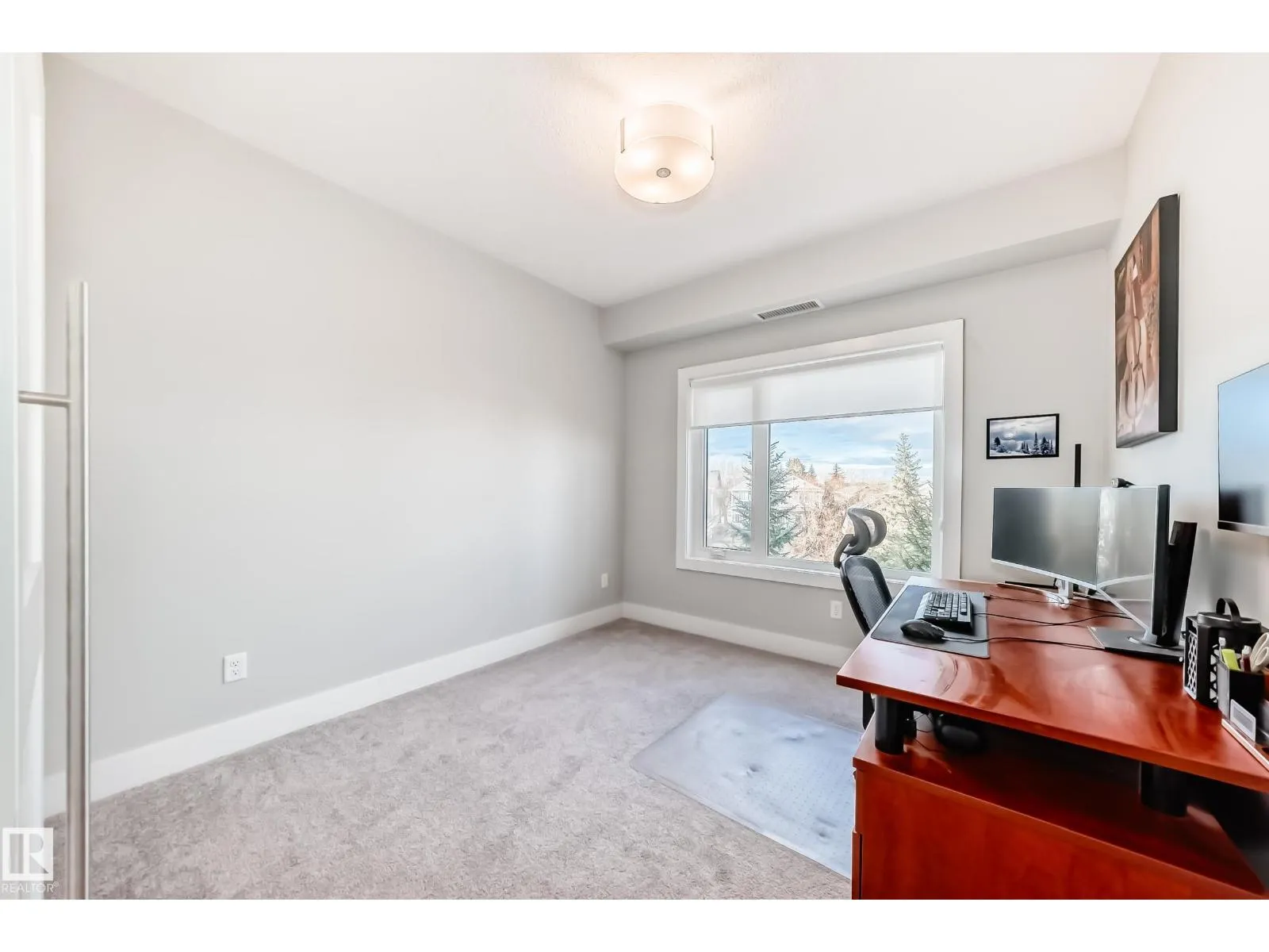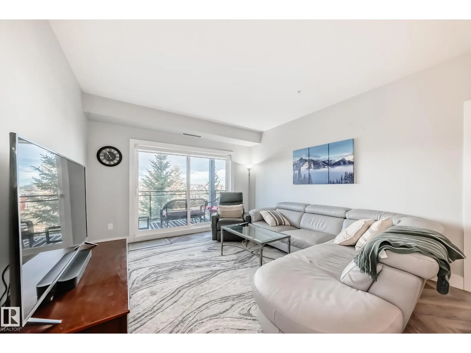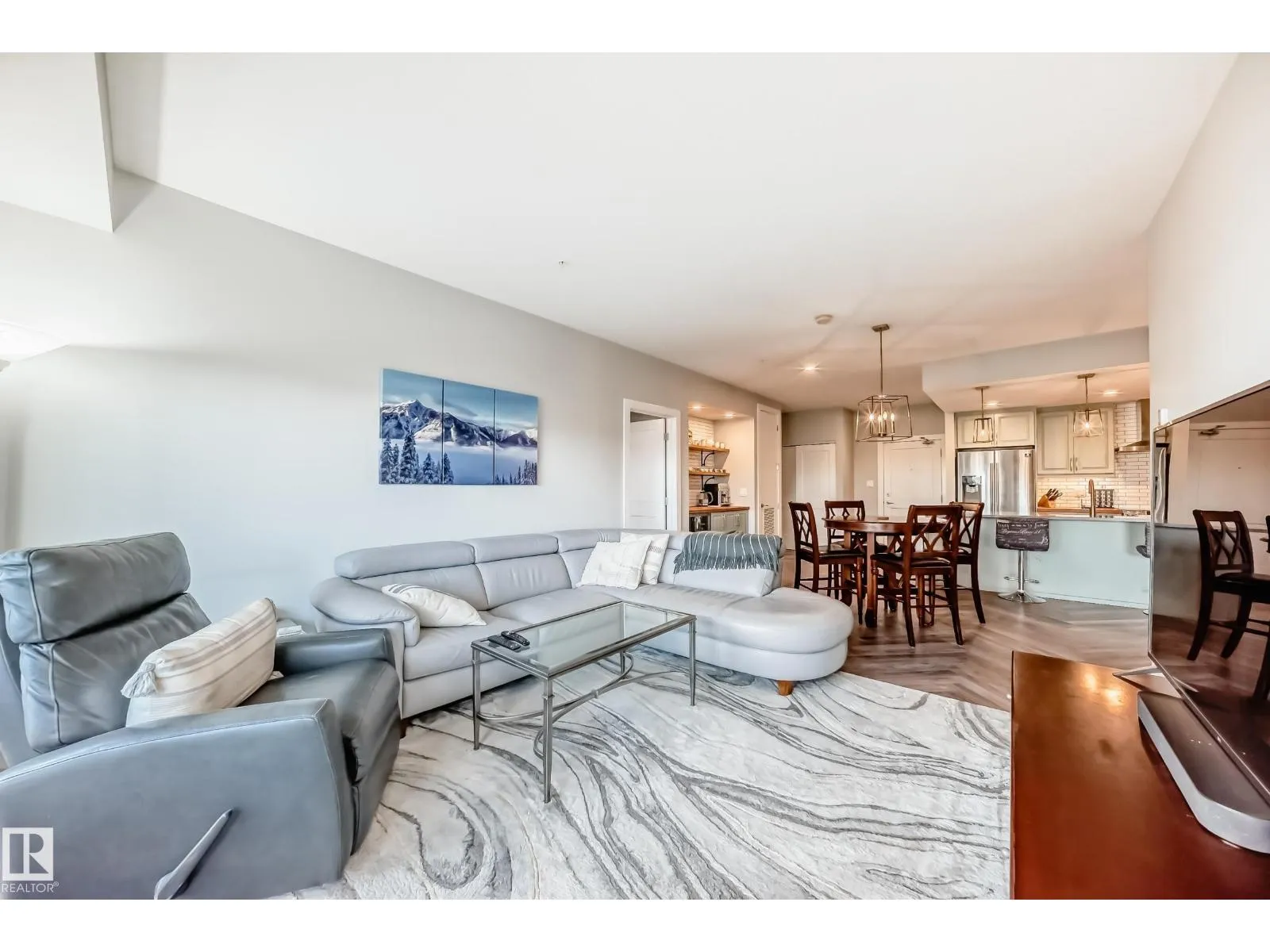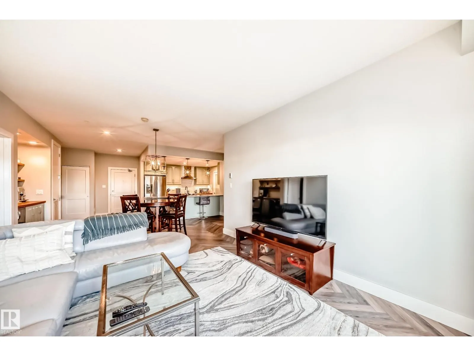 Beautiful Griesbach executive style 1,130 square foot, 2 bedroom, 2 bathroom, 2018 built, 3rd floor condo, in and incredible location backing onto greenspace and lake. The main floor has vinyl plank flooring, separate wet bar with mini fridge, and a great open floor plan with eat up island style kitchen having 2 tone cabinets, quartz countertops, upgraded stainless appliances, walk in pantry & sliding doors to a large balcony. The spacious primary bedroom has walk-through closets, and a 4 piece bathroom. The second bedroom is located close to the main 4 piece bathroom. There are 2 titled parking stalls included underground #98 and surface stall #11. The area has many amenities just minutes away, including shopping, transportation, schools, walking trails, and much more. The Veritas condominium complex has a beautiful front entrance and many extras including, fitness room, air conditioning, guest room, social room, & visitor parking out front. This unit shows pride of ownership and shows a 10 out of 10 (id:27476)