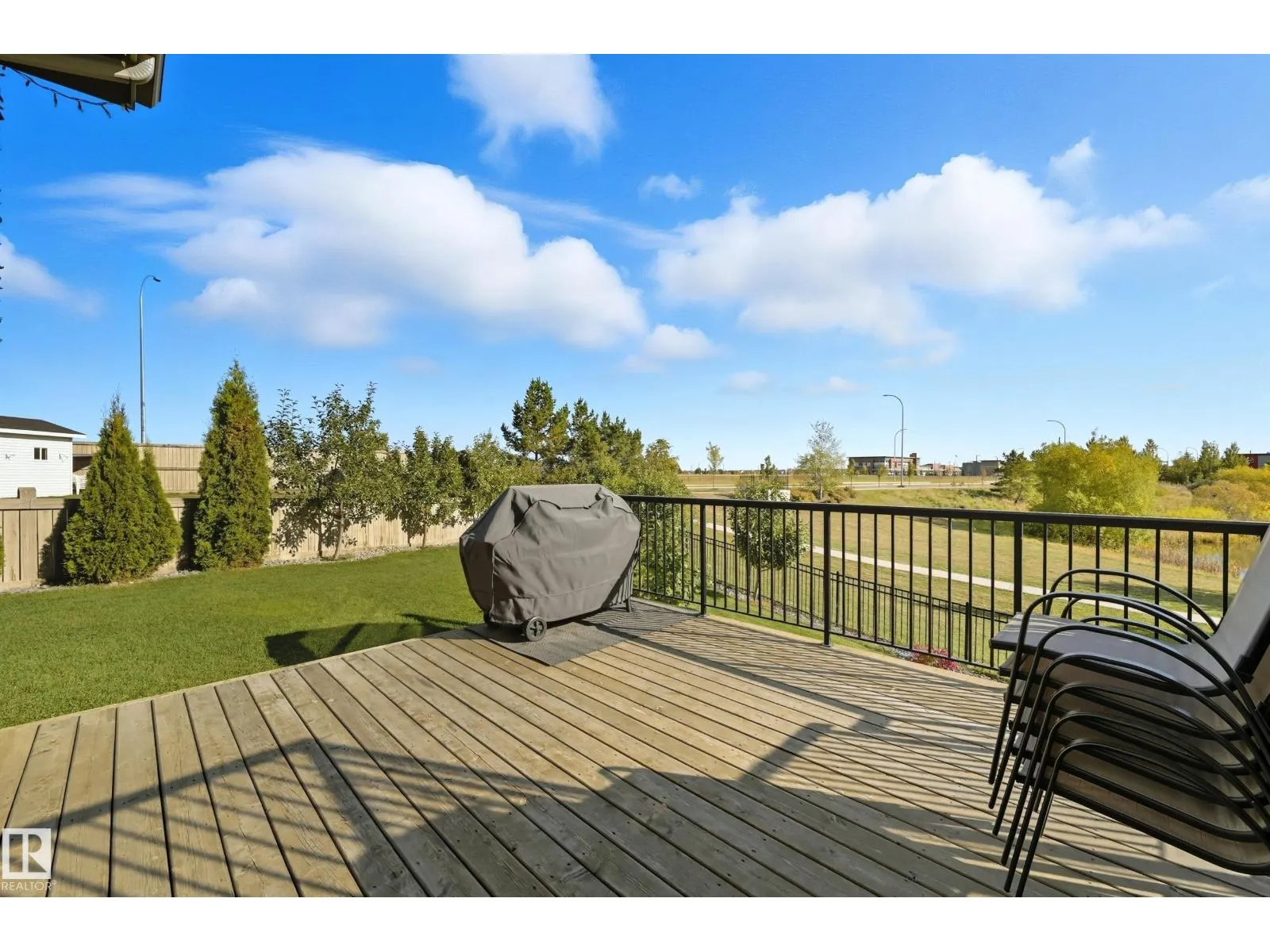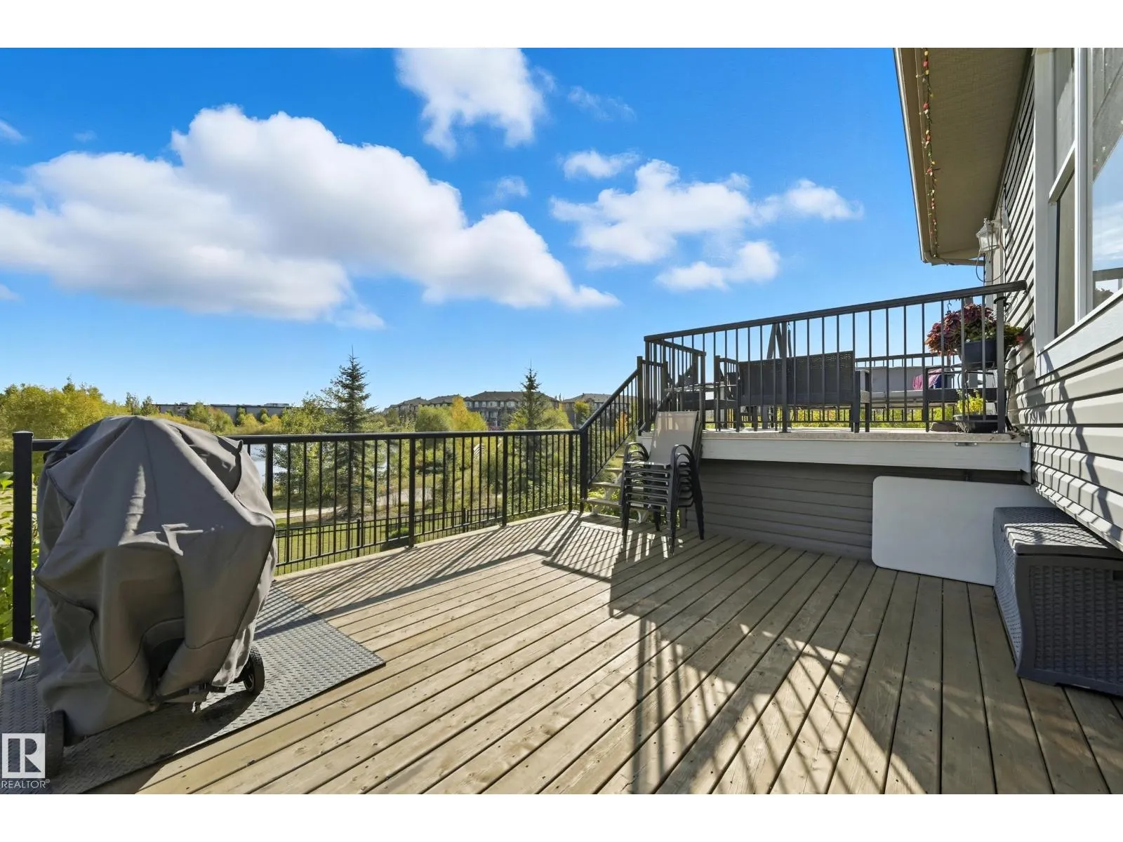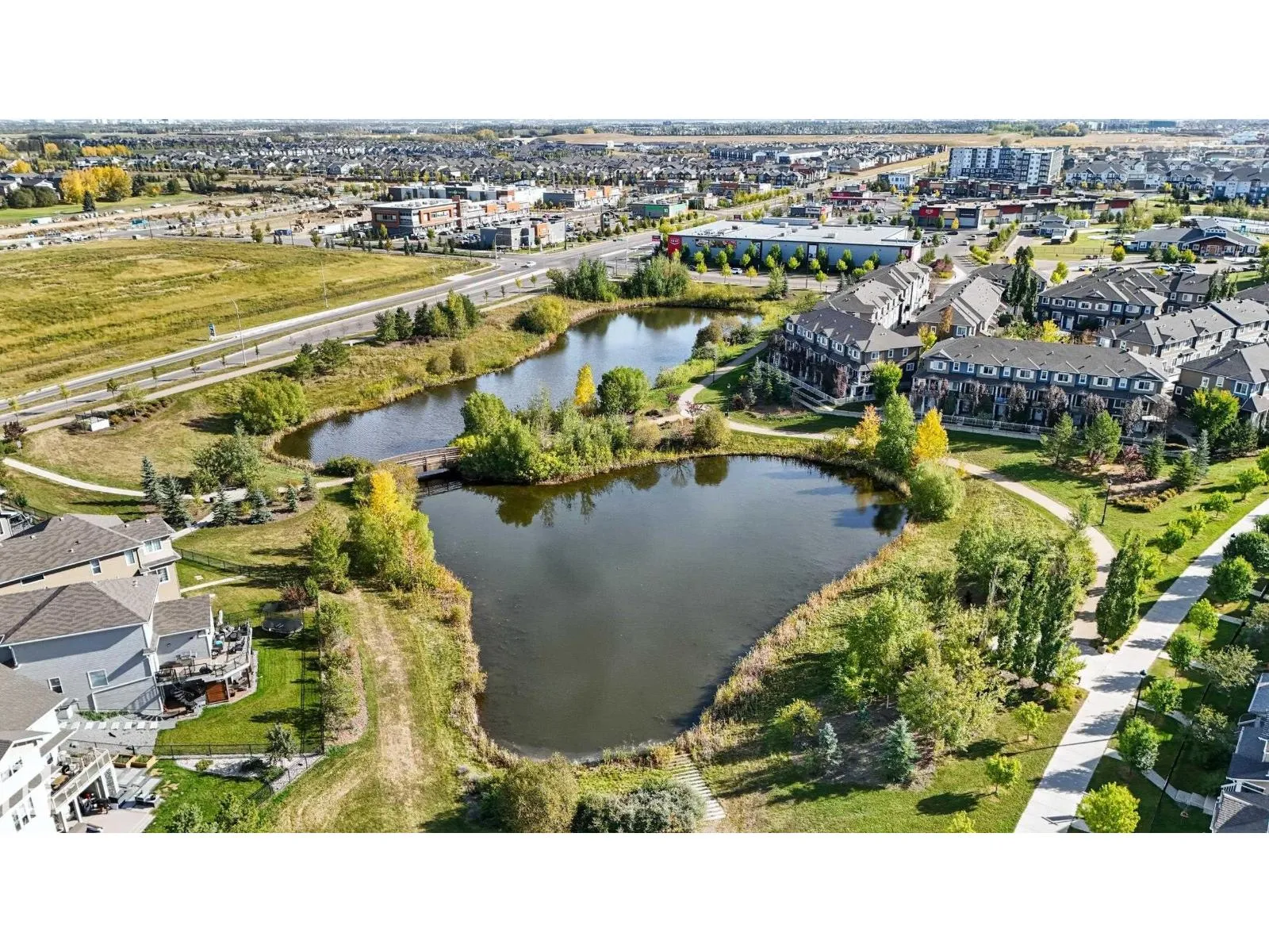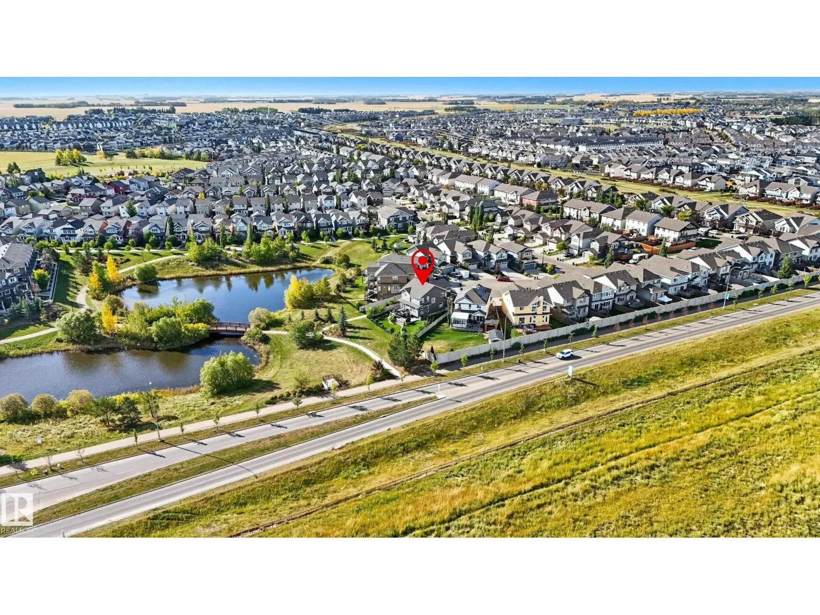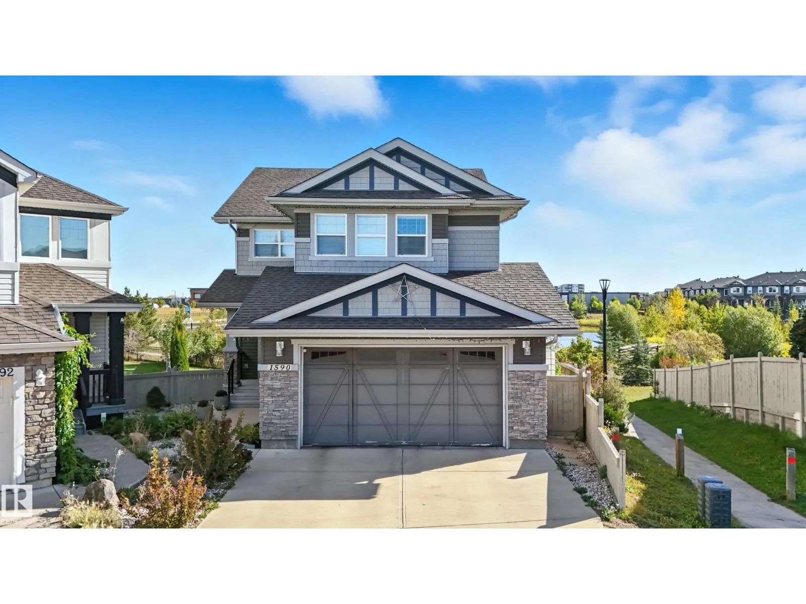 Welcome to this stunning custom-built property offering over 2,700 sqft of beautifully finished living space on a wide lot. From the moment you step inside, the spacious foyer sets the tone for this warm and inviting home. The open-concept main floor seamlessly connects the living room, dining area, and kitchenâflooded with natural light and framed by expansive lake views through thoughtfully added windows. Upstairs, a bright hallway leads to a large bonus room overlooking the pond, two spacious bedrooms, and a luxurious primary suite with a walk-in closet and a serene ensuite. The fully finished basement offers a generous rec room with a wet bar, full bath, and additional bedroom. Outside, enjoy your massive two-tiered deckâperfect for BBQs, gatherings, or simply relaxing with lakeside views. The landscaped yard features irrigation, a retaining wall, and direct access to walking trails. An oversized garage and access to Chapelleâs recreation center complete this perfect package. (id:27476)