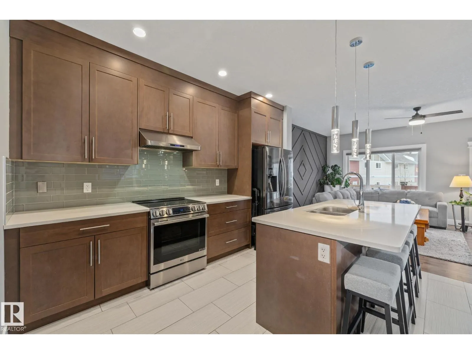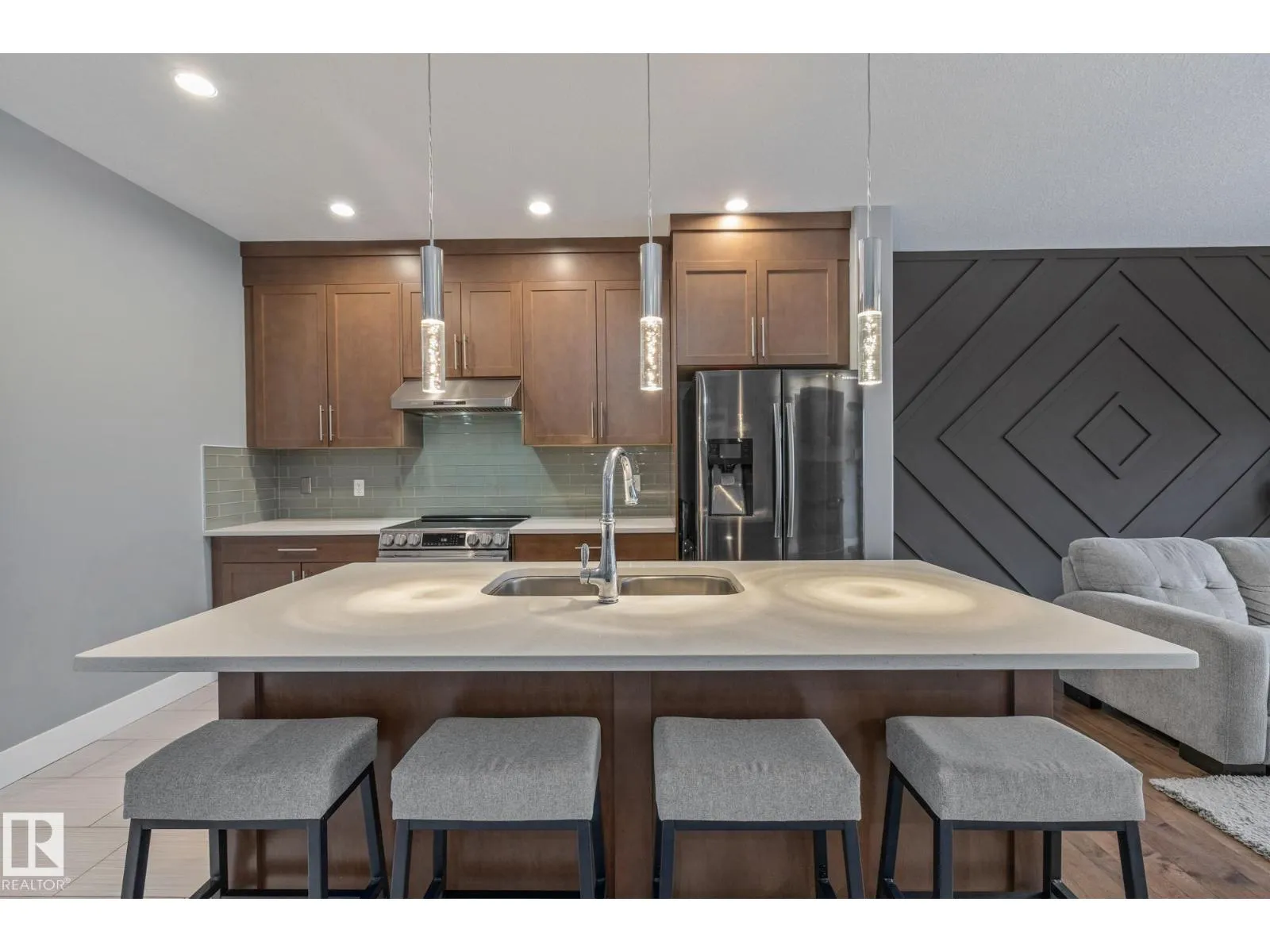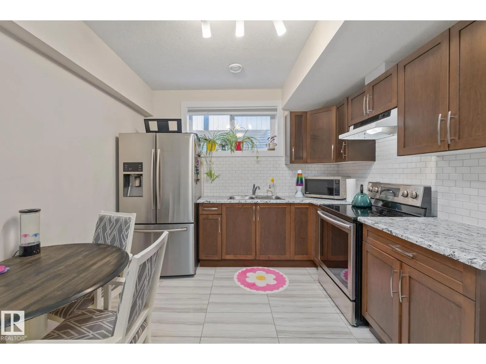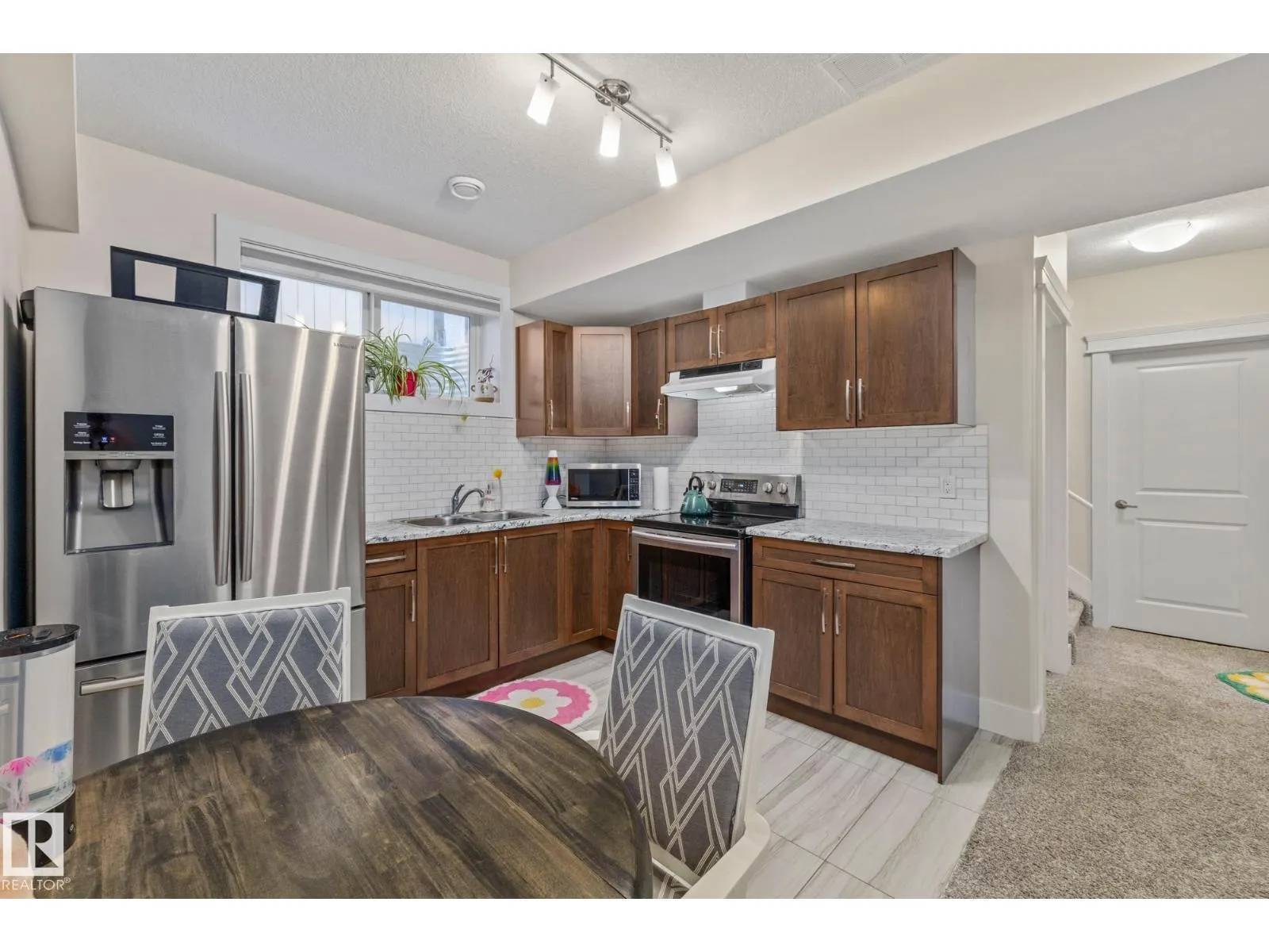Welcome to this executive-style half duplex located in the family-friendly community of McConachie. Offering over 1,700 sq ft of above-grade living space, this home features a functional and open layout designed for everyday family living. The main floor showcases a bright kitchen with ample storage, open sightlines to the dining and living areas, and a welcoming space to gather and entertain. Upstairs youâll find two additional bedrooms along with a spacious primary bedroom complete with a walk-in closet and ensuite. The fully finished basement includes a separate entrance and in-law suite, providing excellent flexibility for extended family, guests, or future needs. Enjoy time outdoors on the back deck and take advantage of the convenient location close to parks, schools, shopping, and major routes. A great opportunity for families seeking space, functionality, and long-term value. (id:27476)