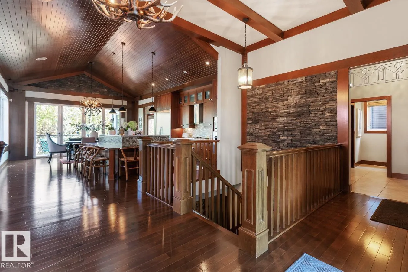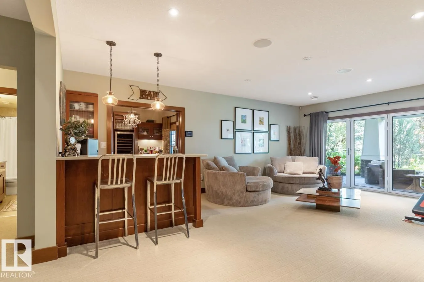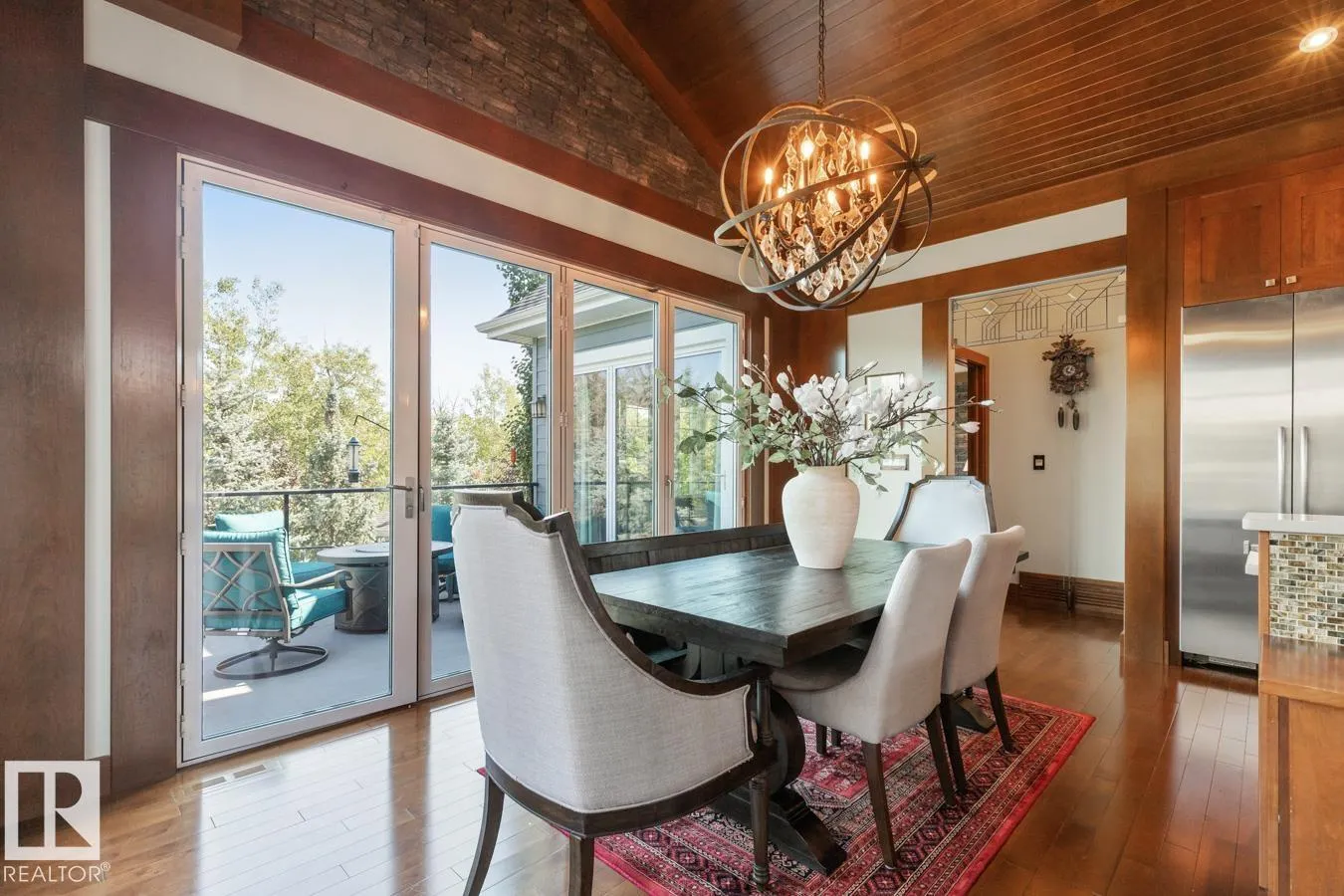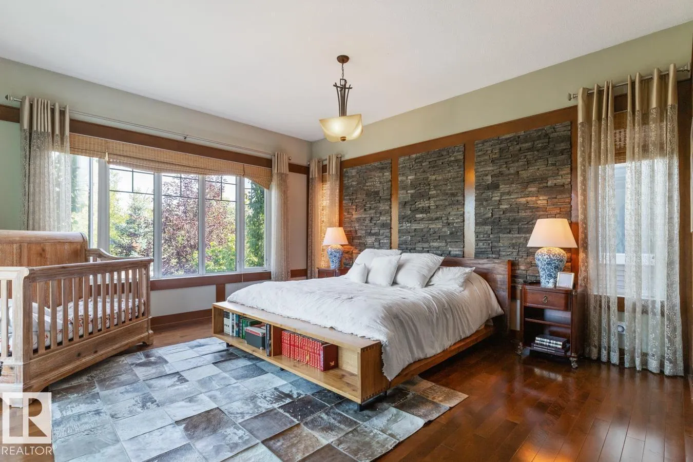 This stunning former Full House Lottery Dream Home offers luxury living in the exclusive Westpointe of Windermere, BACKING ONTO A TRANQUIL RAVINE. Built by Perry Built Homes, this WALKOUT BUNGALOW combines rustic elegance with high-end finishesâfeaturing soaring vaulted ceilings, rich wood and stone accents, and over 3,500 sqft of finished space. Inside you'll find Miele appliances, Control4 system, heated floors (basement + ensuite), a soundproofed theatre room, and a beautifully designed wine cellar. Expansive custom bifold sliding doors on both levels create seamless indoor-outdoor living. The double-sided fireplace anchors the open-concept main floor, while breathtaking landscaping enhances the front and back yards. Every detail of this home has been thoughtfully crafted for refined living and lasting enjoyment. With HardiePlank® siding, oversized garage, and ravine views, this home is a rare find that must be seen in person. (id:27476)