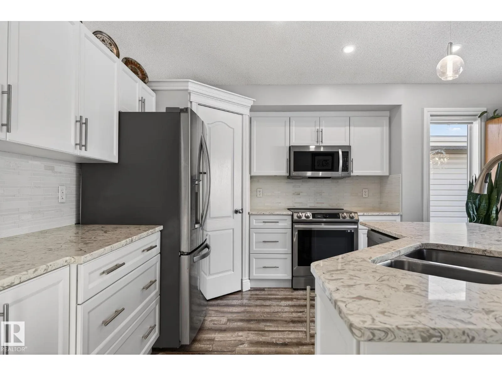 Renovated and fully finished bi-level located on a quiet street in Brintnell. The home features 3+2 bedrooms (total 5 bedrooms), 3 full bathrooms, new cabinets, island with breakfast bar, new quartz counter in both kitchen and bathrooms, corner pantry, stainless appliances, vaulted ceilings, electric fireplace, fresh paint, A/C, new doors, and MORE! The large master bedroom over the garage has a walk in closet and a 4 piece ensuite. Two additional bedrooms on EACH level and full bathrooms with bathtubs/showers on EACH level. Ideal for families of all ages. Other extras include vinyl fencing, no maintenance deck with glass railings and fire bowl, new shingles (2020), hot water tank (2018) and upgraded lighting. An absolute beauty to see in person. Also close are walking trails, a lake, plus all amenities including schools, shopping, restaurants and transportation. Act Now! (id:27476)