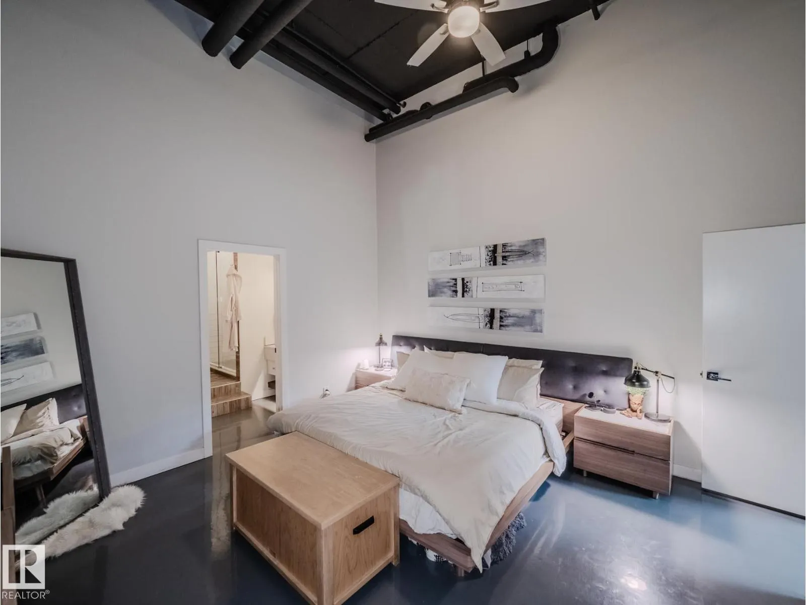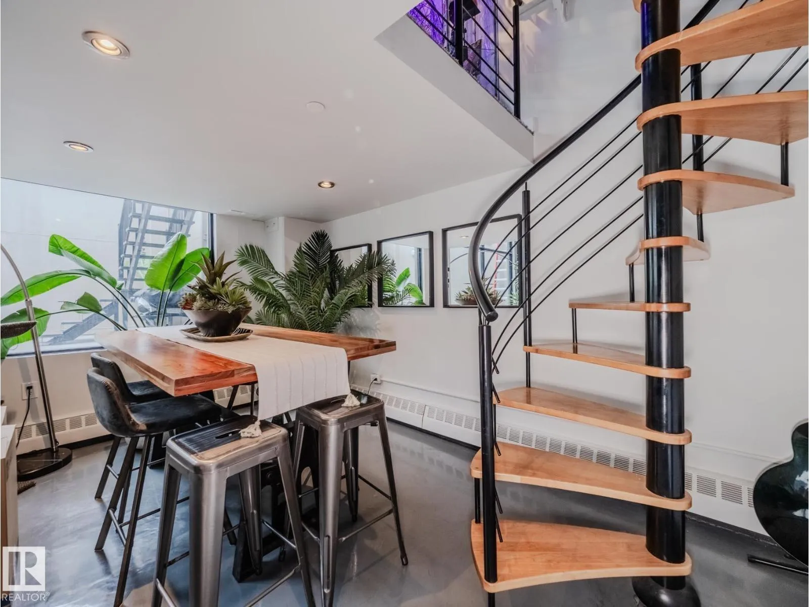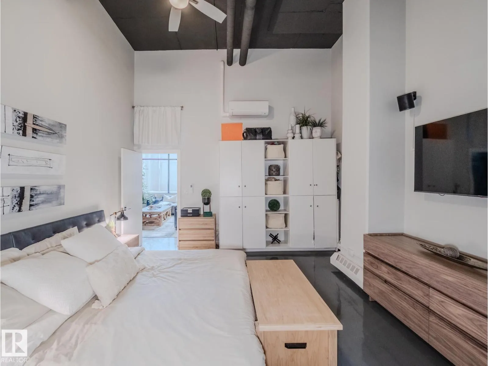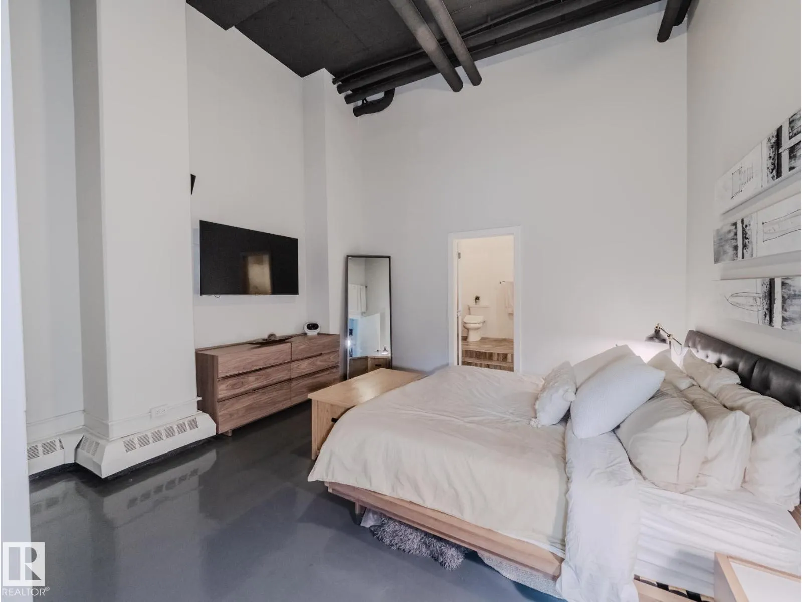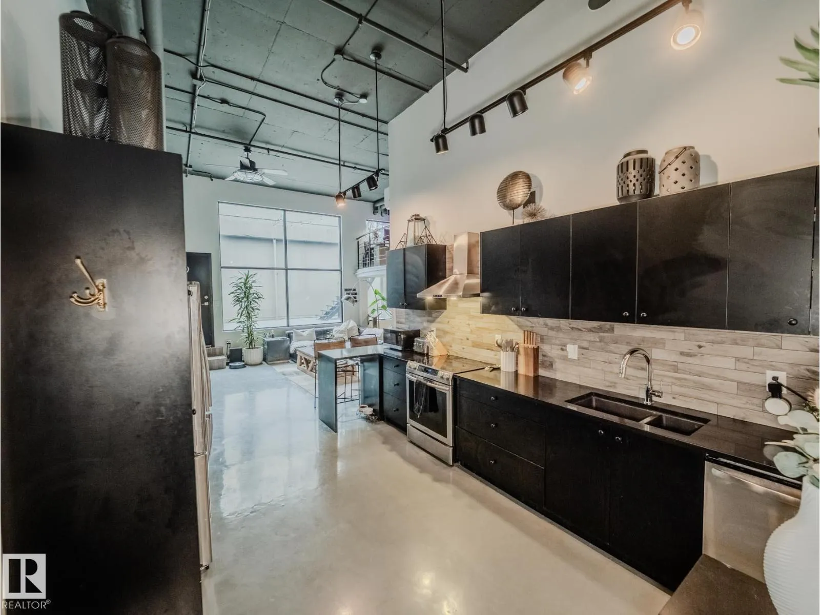 Discover this stunning downtown Edmonton PENTHOUSE LOFT featuring soaring 14-foot ceilings and an impressive open concept design. The spacious kitchen offers ample counter space, abundant storage, DUAL FRIDGES, and STAINLESS STEEL APPLIANCESâperfect for entertaining. The bright living room boasts large windows that flood the space with natural light and connect seamlessly to the open-to-below loft, ideal for an office or den. The large primary bedroom includes custom built-in closets and a SPA-LIKE ENSUITE with walk-in shower. A 4-piece bathroom, generous storage room, and IN-SUITE LAUNDRY add convenience. Enjoy outdoor living with a BRAND NEW 500sqft courtyard patio with a basketball hoop, plus a private 1,000 sqft ROOF TOP PATIO with outdoor TV and HOT TUB. Walk to Rogers Place and the vibrant Ice District. Titled UNDERGROUND PARKING, LARGE TITLED STORAGE LOCKER, SURROUND SOUND, AIR CONDITIONING and a pet-friendly building complete this one-of-a-kind urban retreat. (id:27476)
