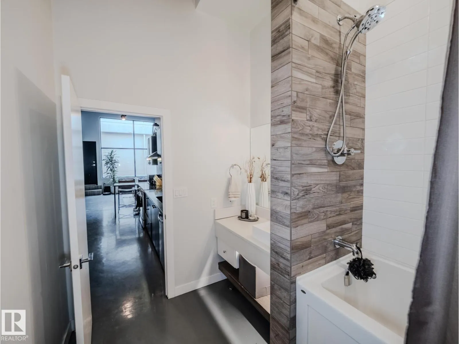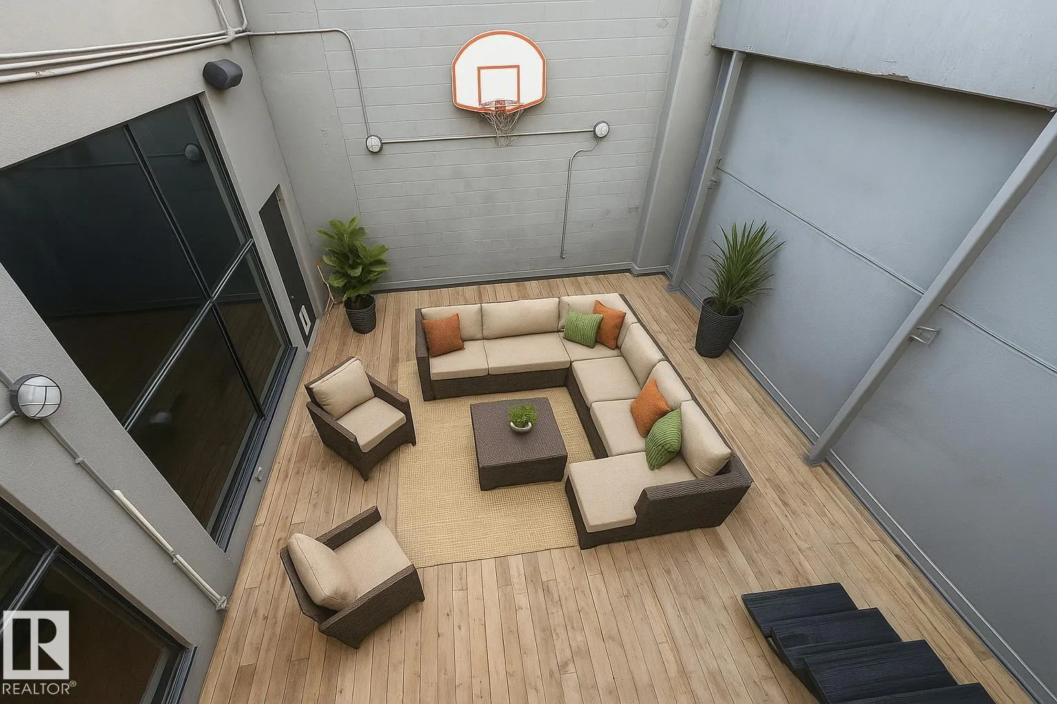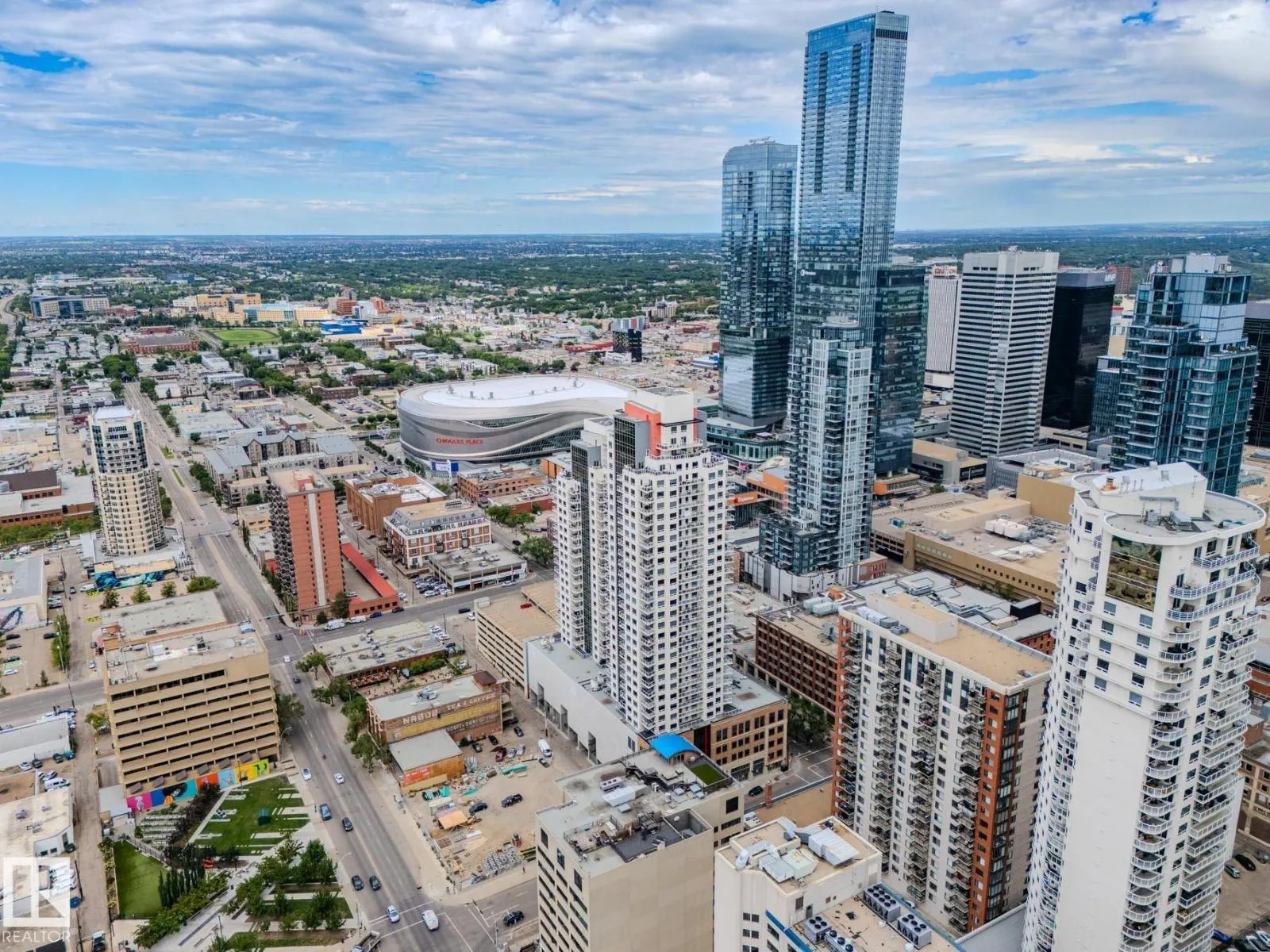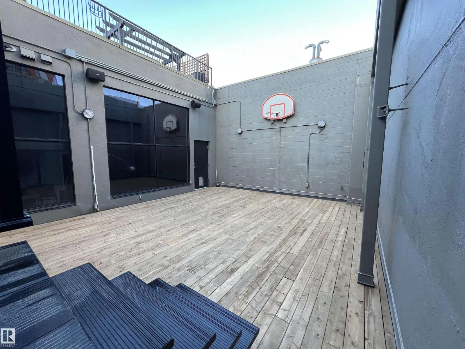 Discover this stunning downtown Edmonton PENTHOUSE LOFT featuring soaring 14-foot ceilings and an impressive open concept design. The spacious kitchen offers ample counter space, abundant storage, DUAL FRIDGES, and STAINLESS STEEL APPLIANCESâperfect for entertaining. The bright living room boasts large windows that flood the space with natural light and connect seamlessly to the open-to-below loft, ideal for an office or den. The large primary bedroom includes custom built-in closets and a SPA-LIKE ENSUITE with walk-in shower. A 4-piece bathroom, generous storage room, and IN-SUITE LAUNDRY add convenience. Enjoy outdoor living with a BRAND NEW 500sqft courtyard patio with a basketball hoop, plus a private 1,000 sqft ROOF TOP PATIO with outdoor TV and HOT TUB. Walk to Rogers Place and the vibrant Ice District. Titled UNDERGROUND PARKING, LARGE TITLED STORAGE LOCKER, SURROUND SOUND, AIR CONDITIONING and a pet-friendly building complete this one-of-a-kind urban retreat. (id:27476)