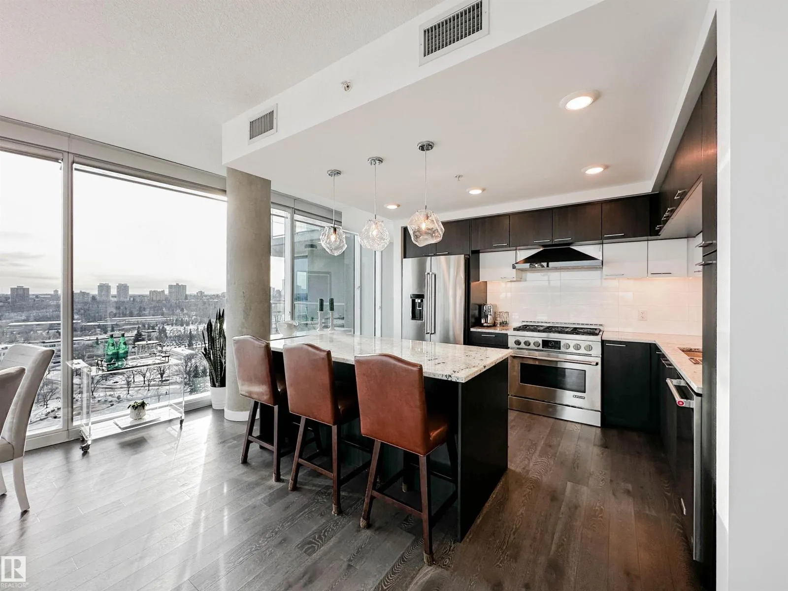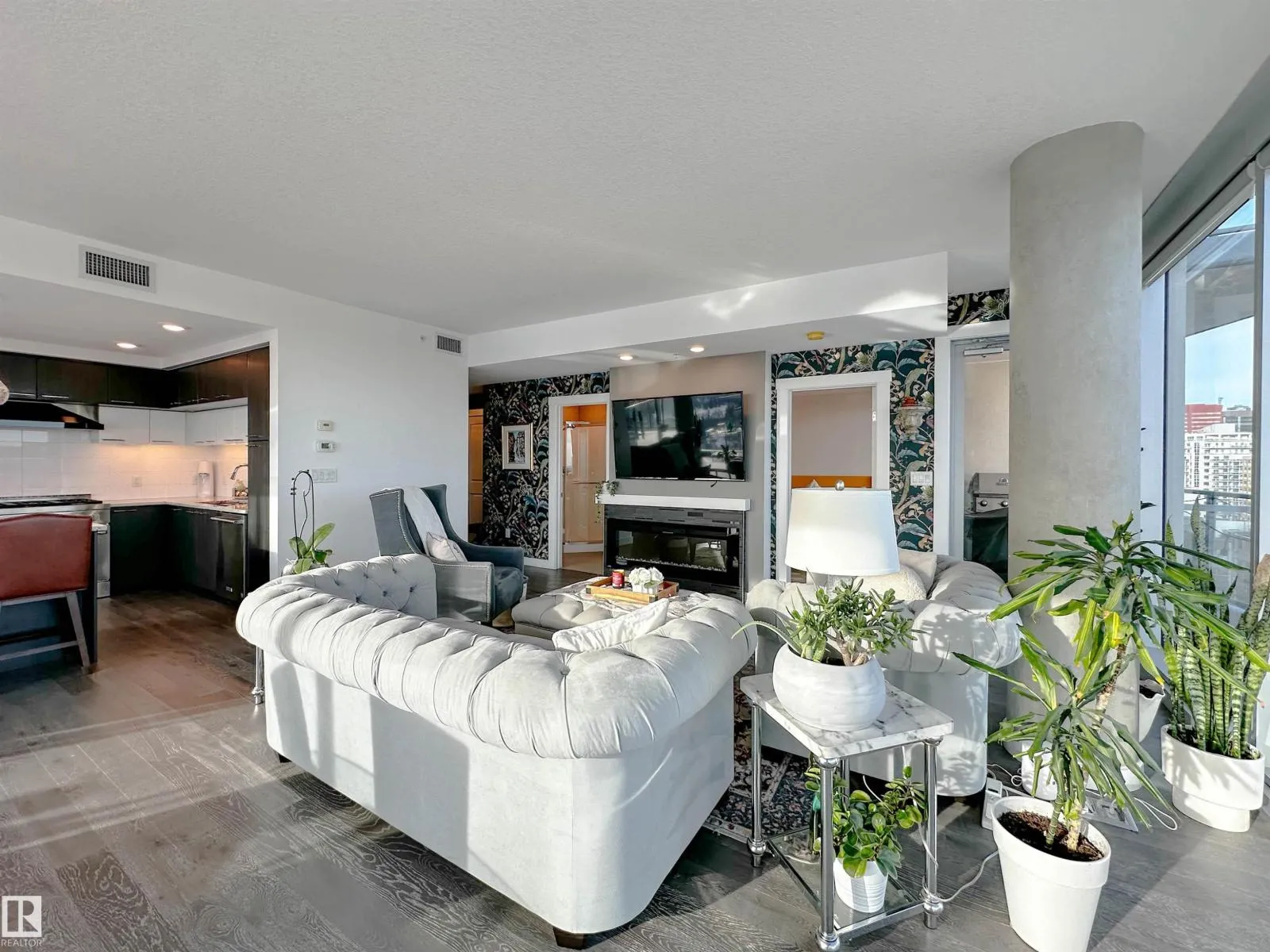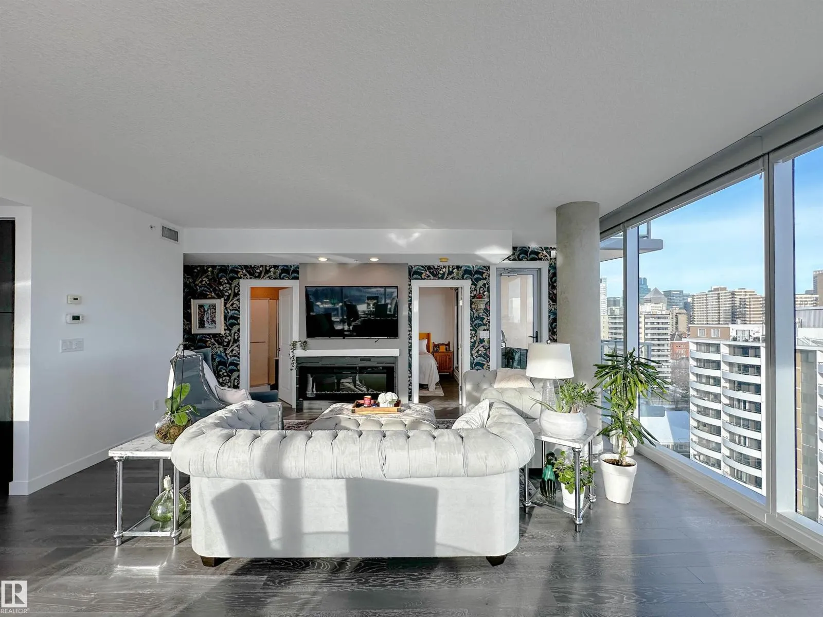 BREATHTAKING Panoramic Views From 1804 in The Symphony Tower! This Stunning 2 Bedroom Condo Features Floor To Ceiling Windows With Incredible East,South, & West Views Of The River Valley And Downtown. Open Concept Layout With A Spacious Living Area w/ Fireplace, Perfect For Entertaining. The Kitchen Offers A Large Island, Ample Cabinetry, 6 Burner Gas JennAir Stove And KitchenAid Appliances. The Primary Bedroom Includes A Walk In Closet, 6 Piece Ensuite And Wrap Around Balcony. Second Bedroom Or Den Features A Walk In Closet, w/ Cheater to Main Bathroom And Private East Facing Balcony. Additional Highlights Include In-Suite Laundry, Central Vac And Air Conditioning. Comes With Two Parking Stalls, One w/ a Lift, 1 w/ a Storage Cage. Exceptional Building With Secure Access, Fitness Centre, Social Room And Prime River Valley Location. (id:27476)