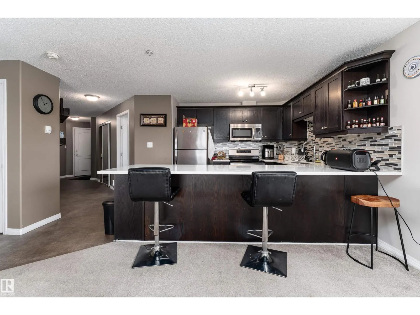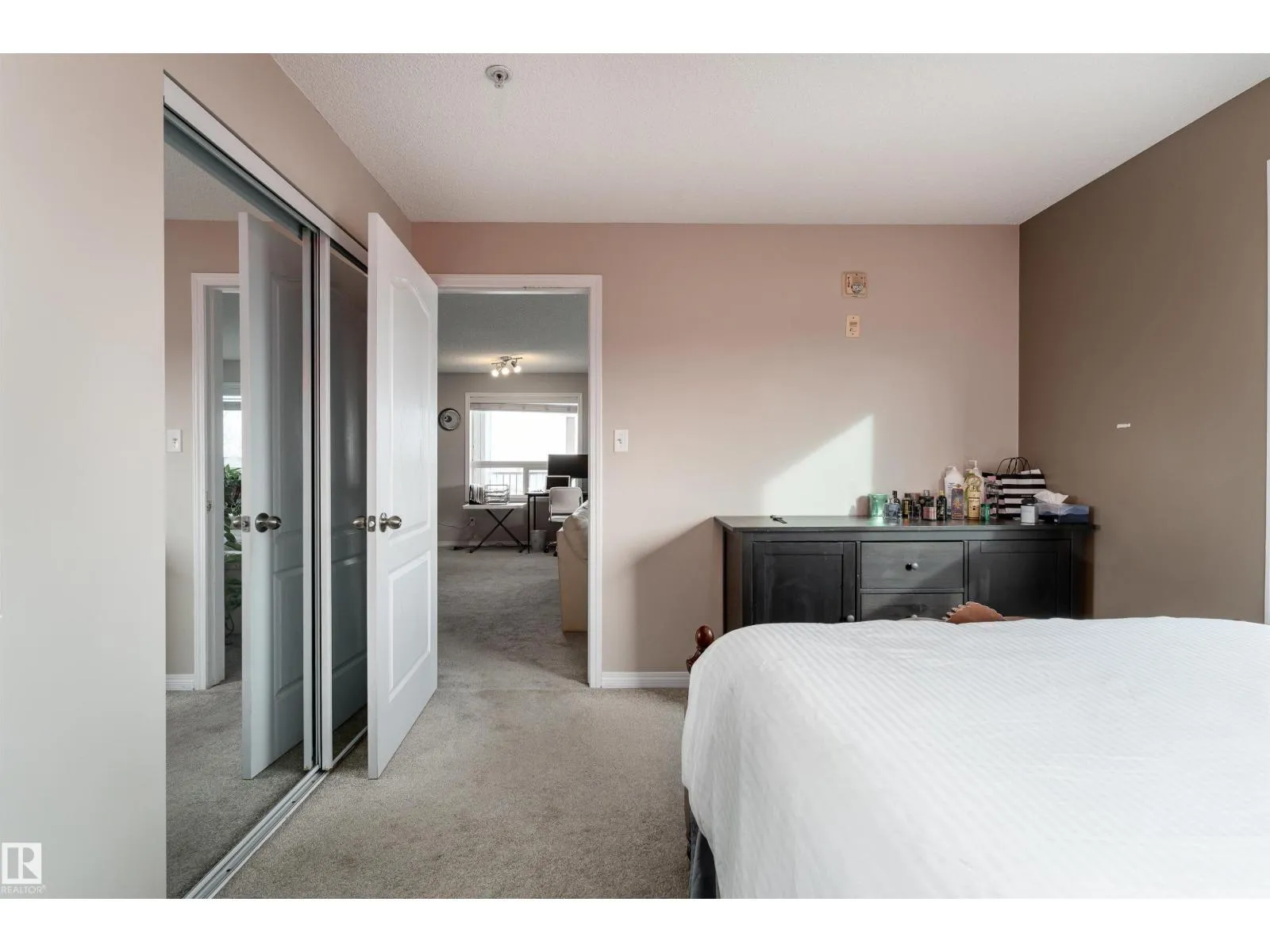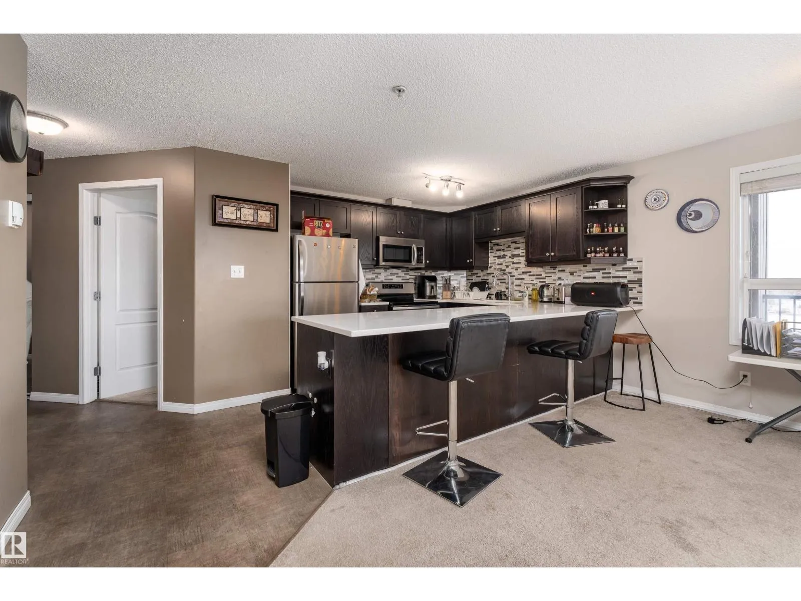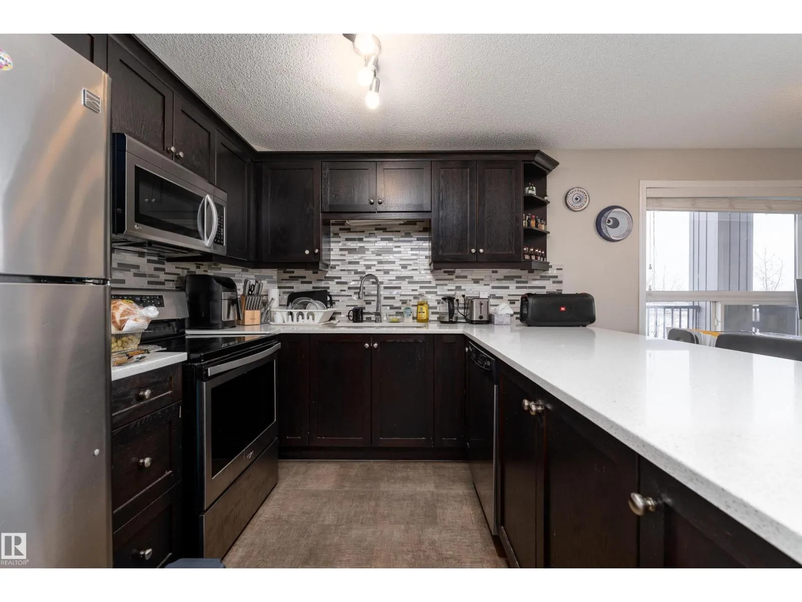 Welcome to your dream condo in the Hamptons! Ideally located with easy access to Anthony Henday Drive and Whitemud Drive, this well-maintained corner unit is perfect for commuters. Close to shopping, dining, parks, schools, and the Misericordia Hospital, convenience is right at your doorstep. This spacious condo offers 2 bedrooms, 2 four-piece bathrooms, and 1,060.25 sq. ft. of living space. The open-concept layout features a modern kitchen with quartz countertops (also in the bathrooms), stainless steel appliances, and a large breakfast bar that flows seamlessly into the bright living area. Enjoy the added comfort of in-suite laundry and extra storage, plus the security and convenience of a titled underground parking stall. Step out onto your private balcony and take in beautiful views of the city skyline, enhanced by the natural light that pours in thanks to the corner-unit design. The building also offers a games room, perfect for entertaining or unwinding with friends. A must-see! (id:27476)