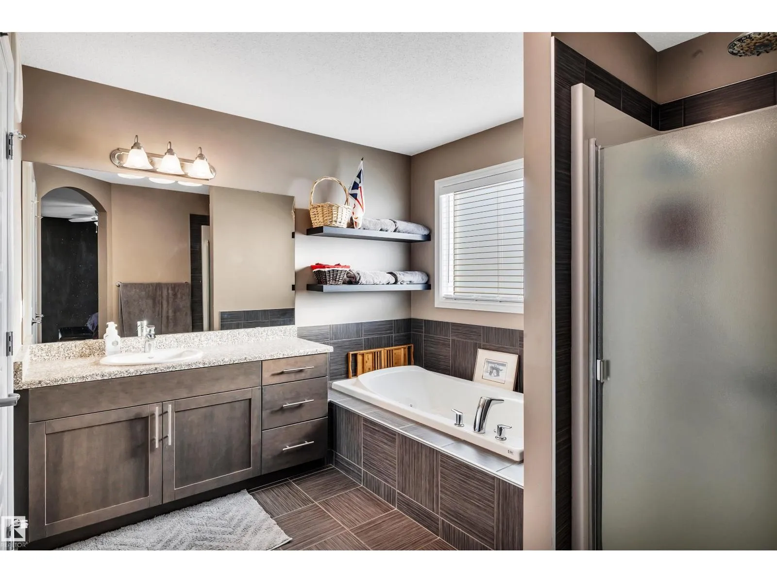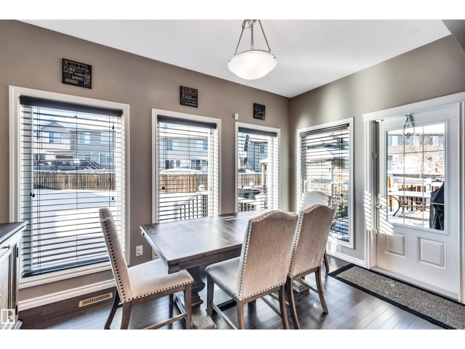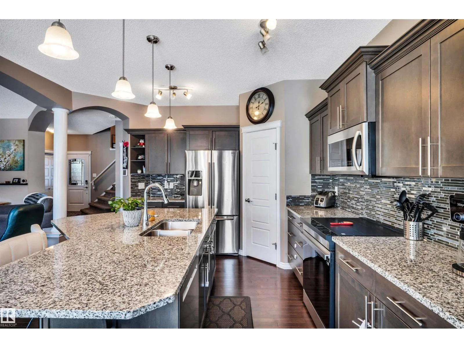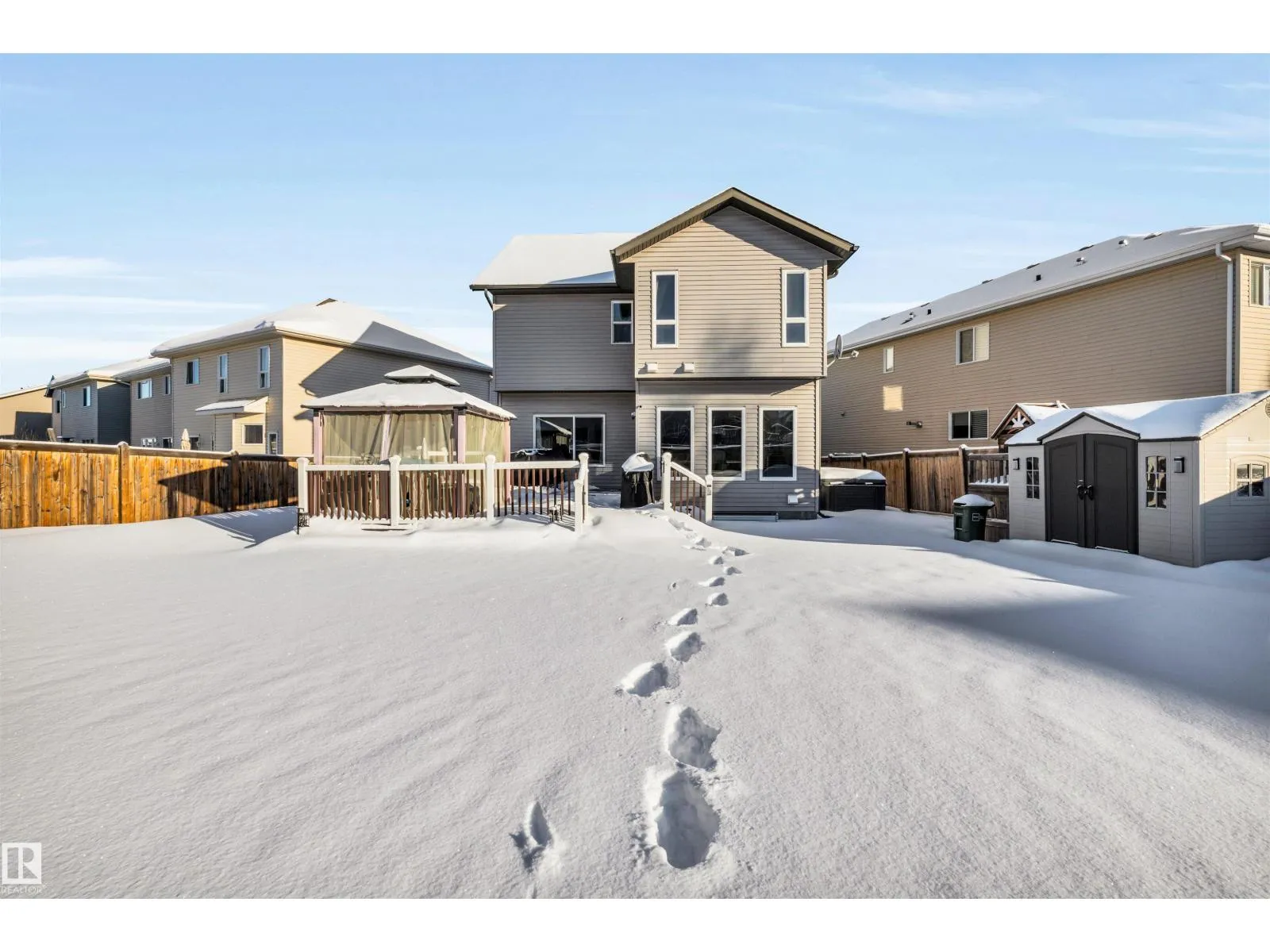 Beautifully kept 2138 sq. ft. 2 storey in the prestigious community of Chappelle located on a huge pie lot! The main floor is bright and airy with 9' ceilings and large windows. This home features a large chef's kitchen with a big center island, walk-thru pantry, granite countertops, stainless steel appliances and pot drawers. The living room has a gas fireplace and built-in cabinetry. Hardwood and ceramic tile flooring throughout main floor. Spacious bonus room over the garage is perfect for movie night. Upstairs you'll find three bedrooms including a spacious primary that easily fits a king size bed and that has a 4 piece ensuite with jetted tub and a walk-in closet. 2nd floor laundry room. Heated, double garage. Central A/C. The southwest facing backyard is something to behold with a large 2 tiered, maintenance free deck and gazebo! Great space for the whole family. (id:27476)