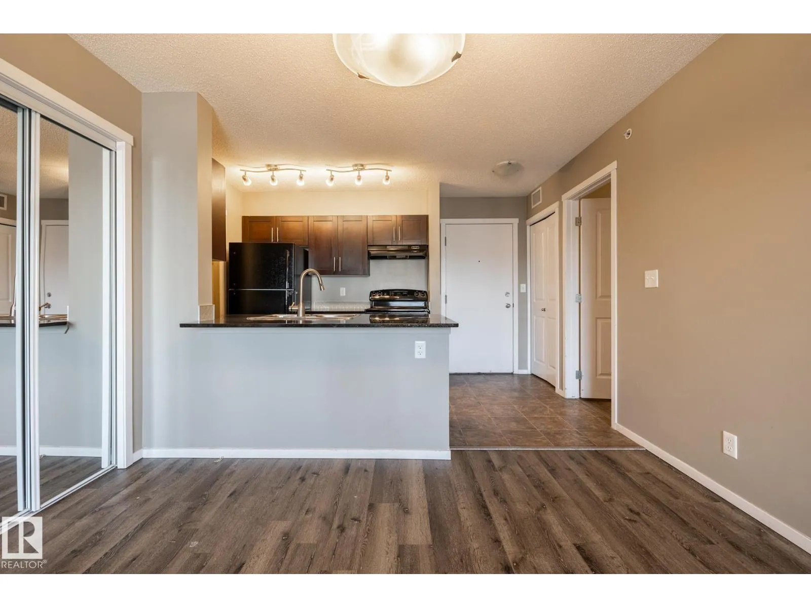 Step into this inviting and modern TOP-FLOOR, 3-bedroom condo that blends comfort with thoughtful upgrades. New vinyl plank flooring and mirrored closet doors give the home a fresh, contemporary feel, while the open layout enhances natural light and easy living. Enjoy a private balcony overlooking the parking areaâa quiet, practical outdoor space with no street noiseâwant to stay in-doors? stay comfortable year-round with A/C rough-in ready for installation. The kitchen is finished with sleek quartz countertops, and the primary bedroom offers a generous walk-in closet and ensuite washroom. Added convenience comes with a TITLED underground parking stall plus a fair size heated assigned storage space. Set in a well-managed building with an elevator, this home is an excellent fit for first-time buyers, downsizers, or investors seeking a low-maintenance property in a growing community. (id:27476)