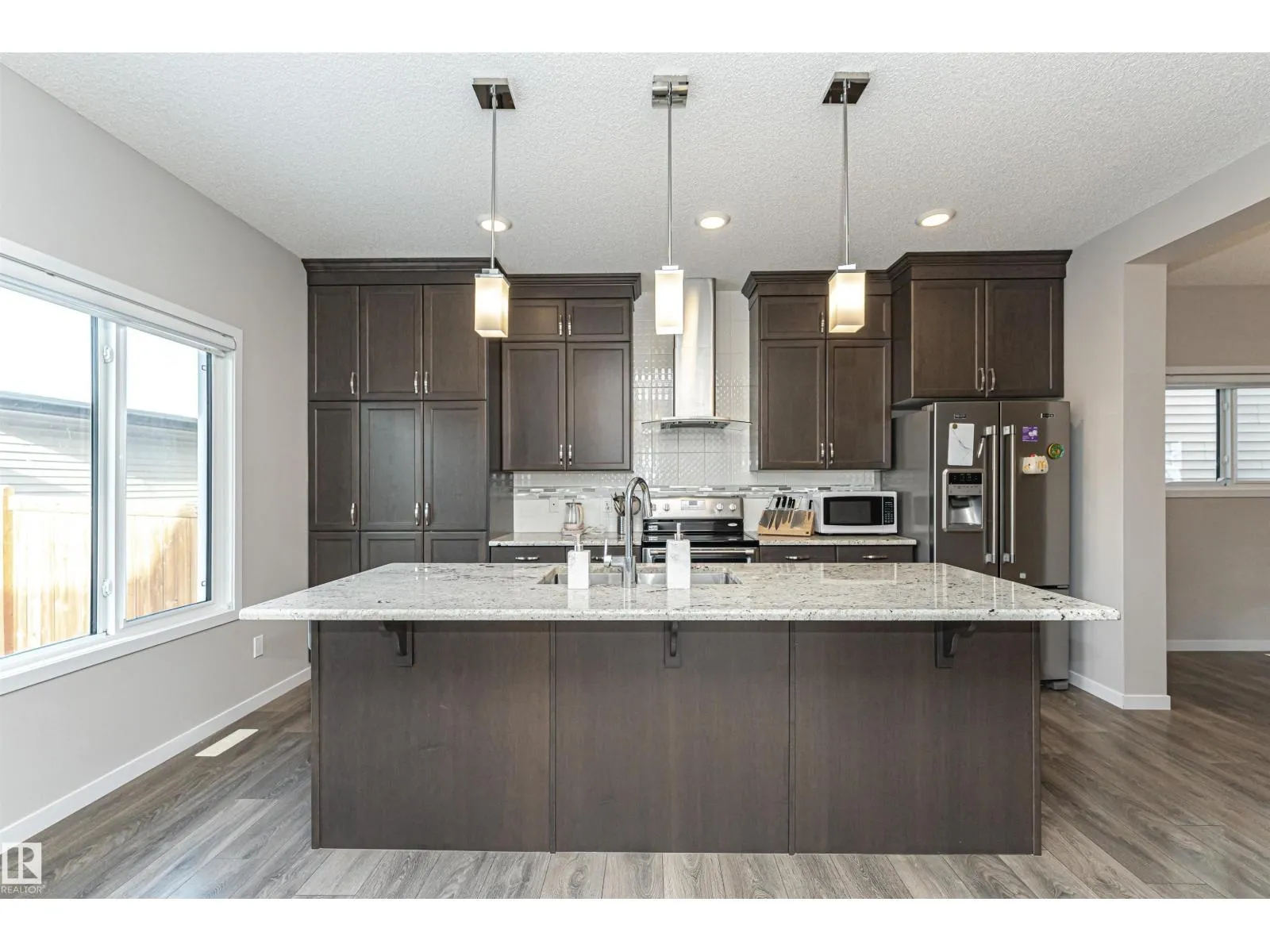 This 1,620 sq. ft. two-storey detached home with double attached garage is located in the desirable Ambleside community. The open-concept main floor features 9 ft ceilings, a bright living and dining area, and a modern kitchen with stainless steel appliances, ceiling-height cabinets, and granite countertops, plus a convenient 2-pc bath and mudroom. Upstairs offers a primary bedroom with walk-in closet and 4-pc ensuite, two additional bedrooms, and a full bath. The unfinished basement provides great future potential. Close to schools, parks, shopping, and easy access to Anthony Henday. (id:27476)