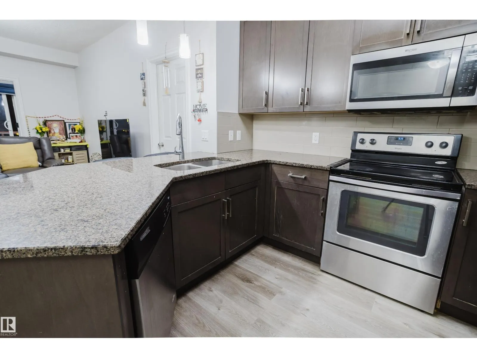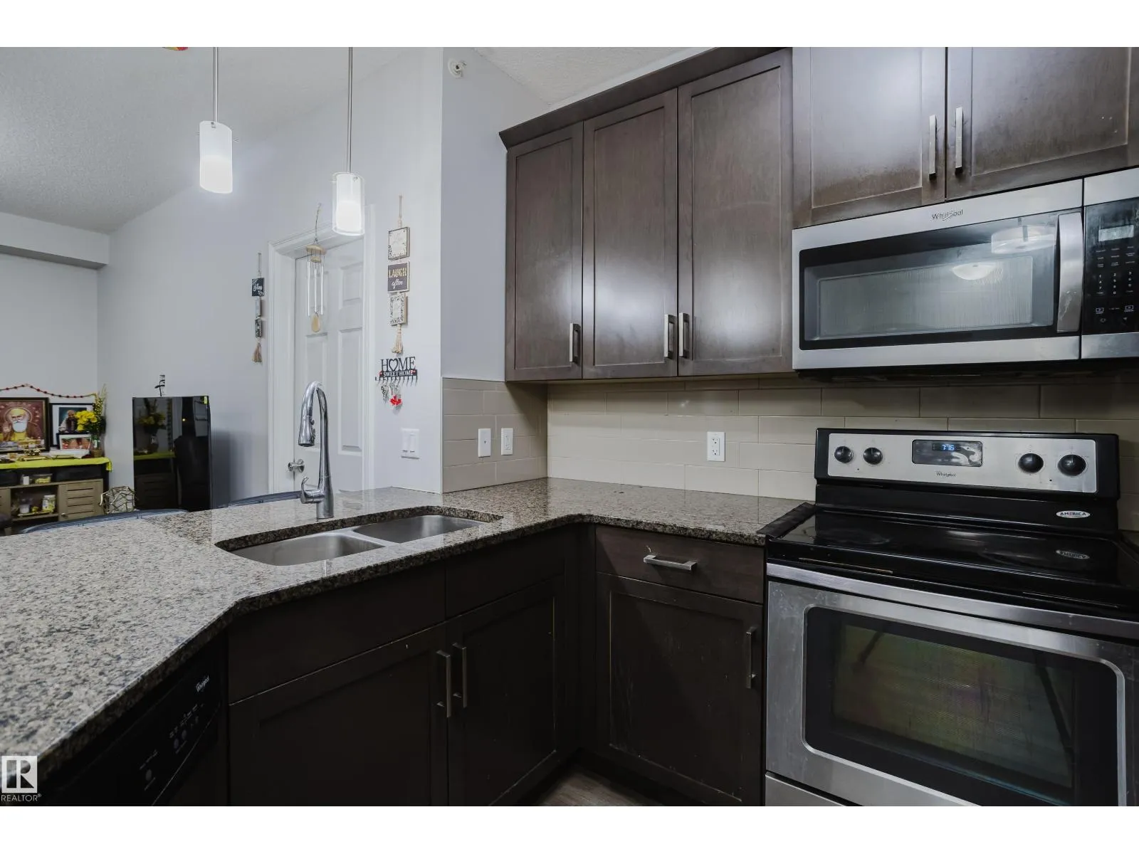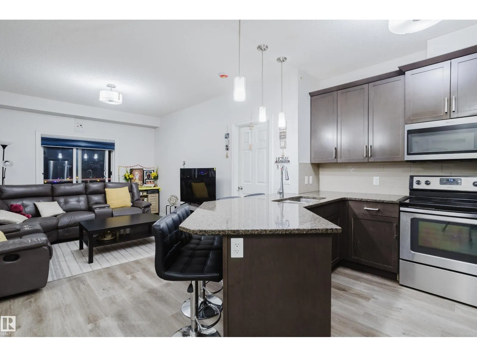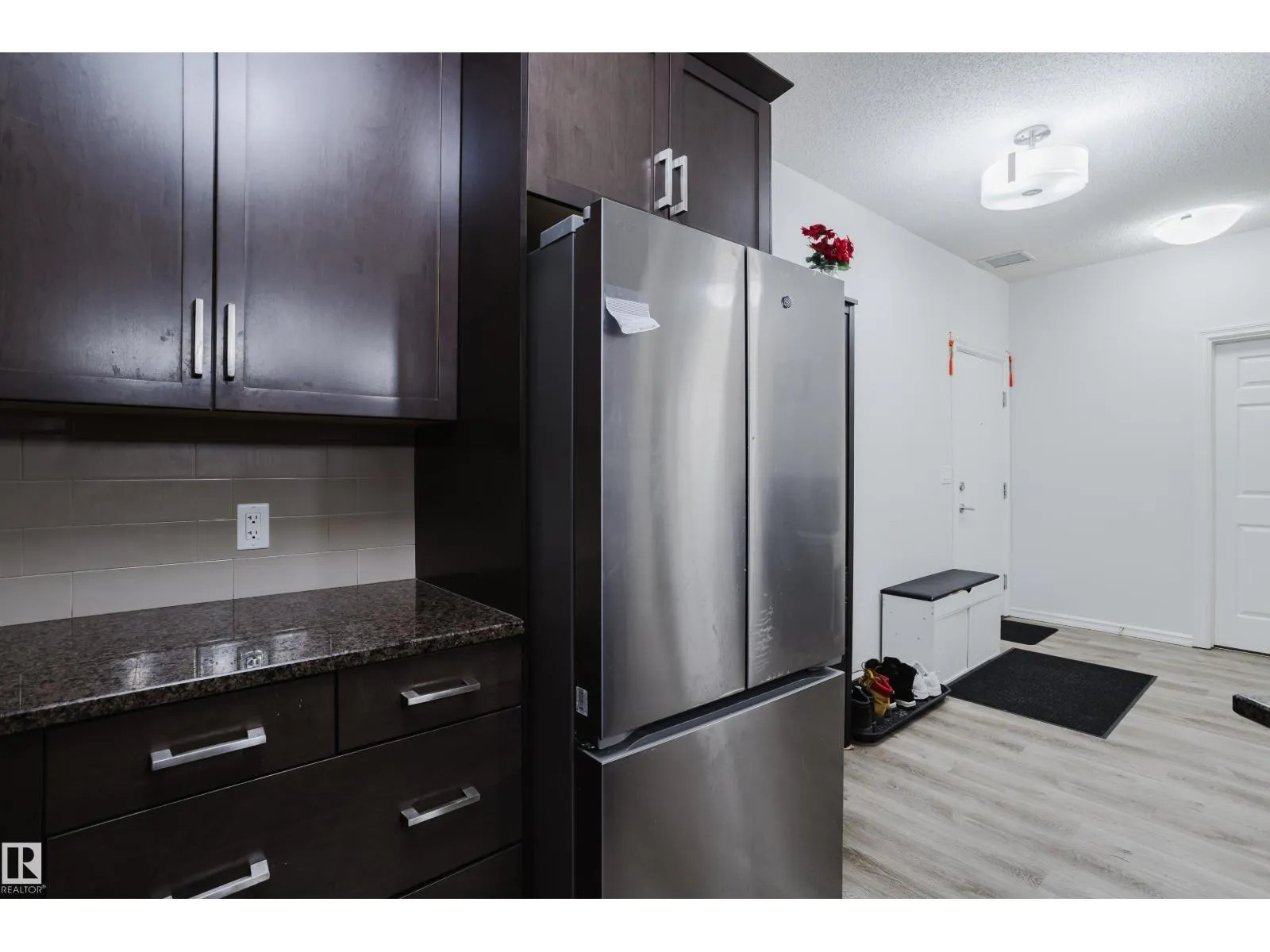 Welcome to this stunning top-floor 2-bedroom, 2-bathroom condo, ideally located in the heart of The Meadows within the quiet community of Larkspur. Just steps from every amenity you could need, this spacious 865 sq. ft. unit is one of the largest in its class. The home showcases a modern and stylish living space with an open-concept layout, abundant natural light, and a contemporary kitchen fully equipped with stainless steel appliances, granite countertops, and ample storage. The refrigerator is brand new, adding extra value and peace of mind. Both bedrooms are generously sized with plenty of closet space, offering comfortable areas to relax and unwind. Enjoy the convenience of in-suite laundry with a new washing machine, as well as one underground parking stall. The well-maintained Aspen Meadows complex offers excellent amenities, including a fitness center and a social room. (id:27476)