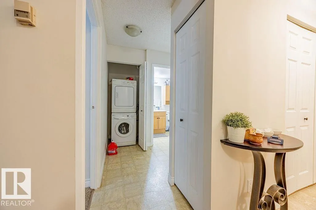 PRIME DOWNTOWN LOCATION. This spacious, well-maintained condo is ideally positioned in the heart of downtown, just steps from restaurants, nightlife, shopping, and the LRT. Grant MacEwan University is within walking distance, and with the train at your doorstep, commuting to the University of Alberta is quick and convenient. Inside, youâll find a modernized kitchen that flows into a generous living areaâperfect for both everyday living and entertaining. The large private balcony offers impressive downtown views and space for a BBQ. This one-bedroom unit includes in-suite laundry and a titled underground parking stall. The building offers excellent amenities including a fitness room and sauna. Recent building upgrades include new windows (2020), make-up air unit (2022), backwater flow prevention system (2019), hot water tanks (2018), parkade membrane (2024), and new hallway carpets (2022). An excellent opportunity to enjoy urban living with everything at your doorstep. (id:27476)