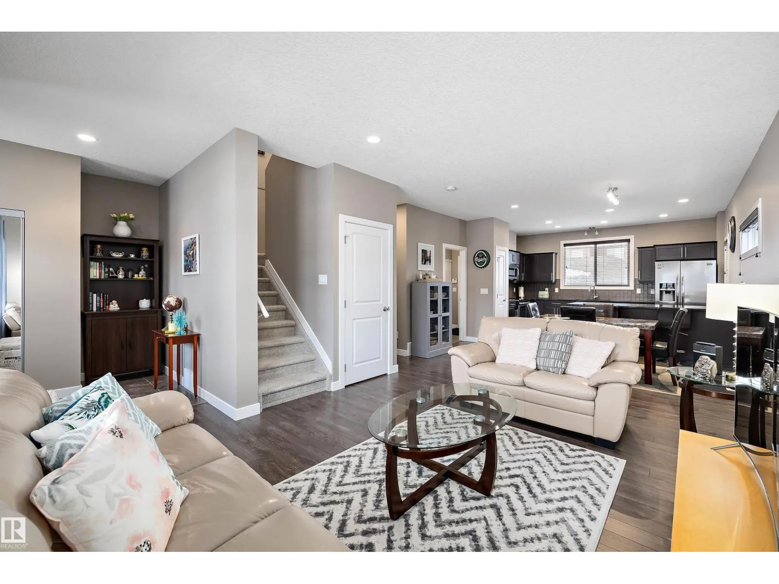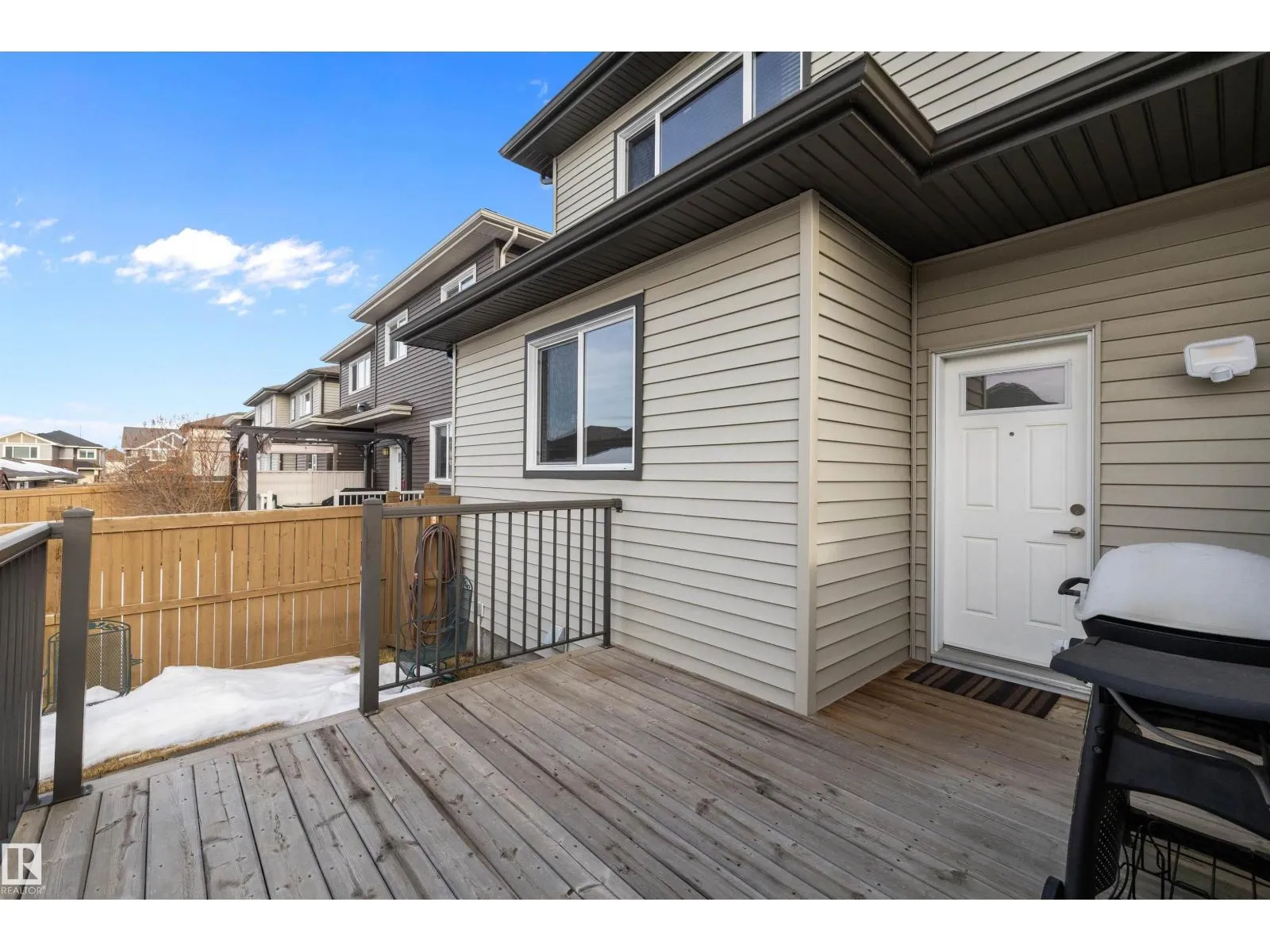 Welcome home to this beautifully designed half duplex that blends comfort, space, and modern style. Step onto the charming front porch veranda and into a bright main floor featuring 9-foot ceilings and a warm living room filled with natural light from large windows. The kitchen is both stylish and functional, complete with stainless steel appliances and quartz countertops, perfect for everyday living and entertaining. Upstairs, youâll find a spacious primary suite with a walk-in closet and private ensuite, along with two generously sized bedrooms and a full washroom. The fully finished basement adds even more living space, offering a large bedroom, family room, and full washroomâideal for guests or a growing family. Enjoy outdoor living on the 10x10 deck with natural gas hookup, and appreciate the unbeatable location close to shopping, restaurants, all amenities, public transportion, schools and quick access to the Anthony Henday. This inviting home checks all the boxesâdonât miss out on this gem! (id:27476)