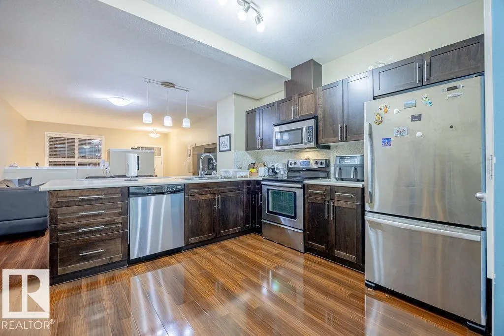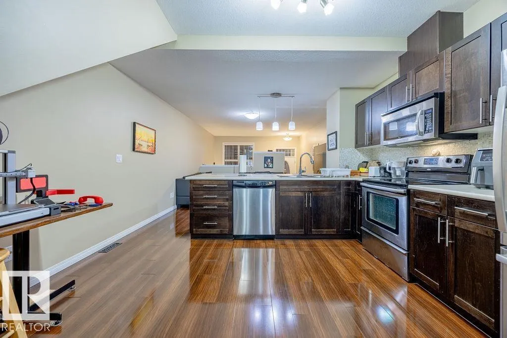 Welcome to this bright and modern townhome in desirable South Terwillegar offering over 1,000 sq. ft. of open-concept living and truly maintenance-free living in a fantastic location. The main floor features a spacious great room with living and dining areas, an L-shaped kitchen with maple cabinetry, granite countertops, stainless steel appliances, and a convenient 2-piece powder roomâperfect for everyday living and entertaining. Upstairs, youâll find two generously sized bedrooms, each with access to a full bathroom, including a primary bedroom with its own ensuite. An upper-floor laundry adds everyday convenience. The lower level includes the mechanical room and an oversized tandem-style attached garage, providing ample storage and easy access in and out. Located near Schools, the Community Garden, and the neighbourhoodâs central amenitiesâincluding a corner store, café, and restaurantâthis community is known for its welcoming, family-friendly atmosphere and pet-friendly lifestyle. (id:27476)