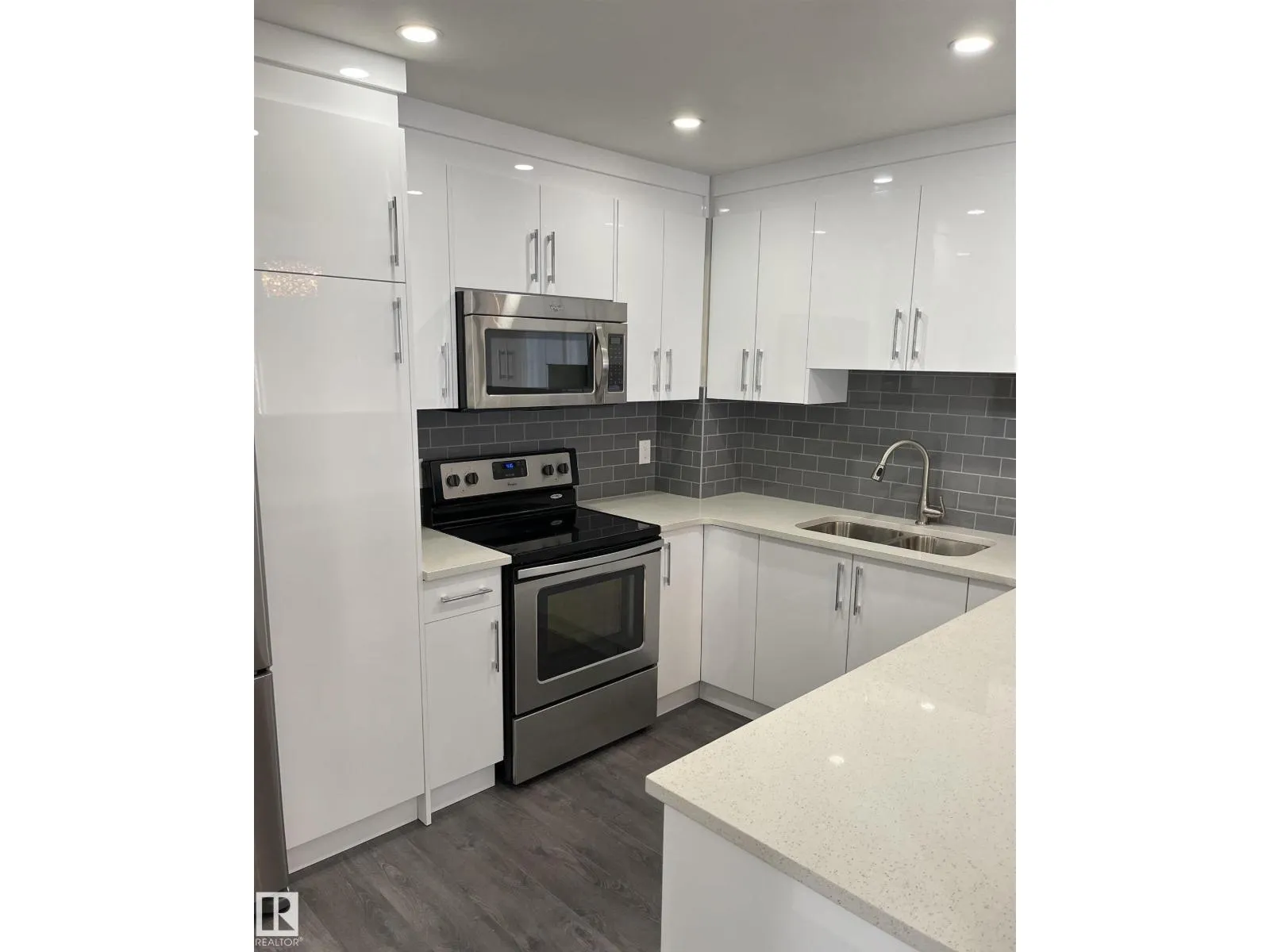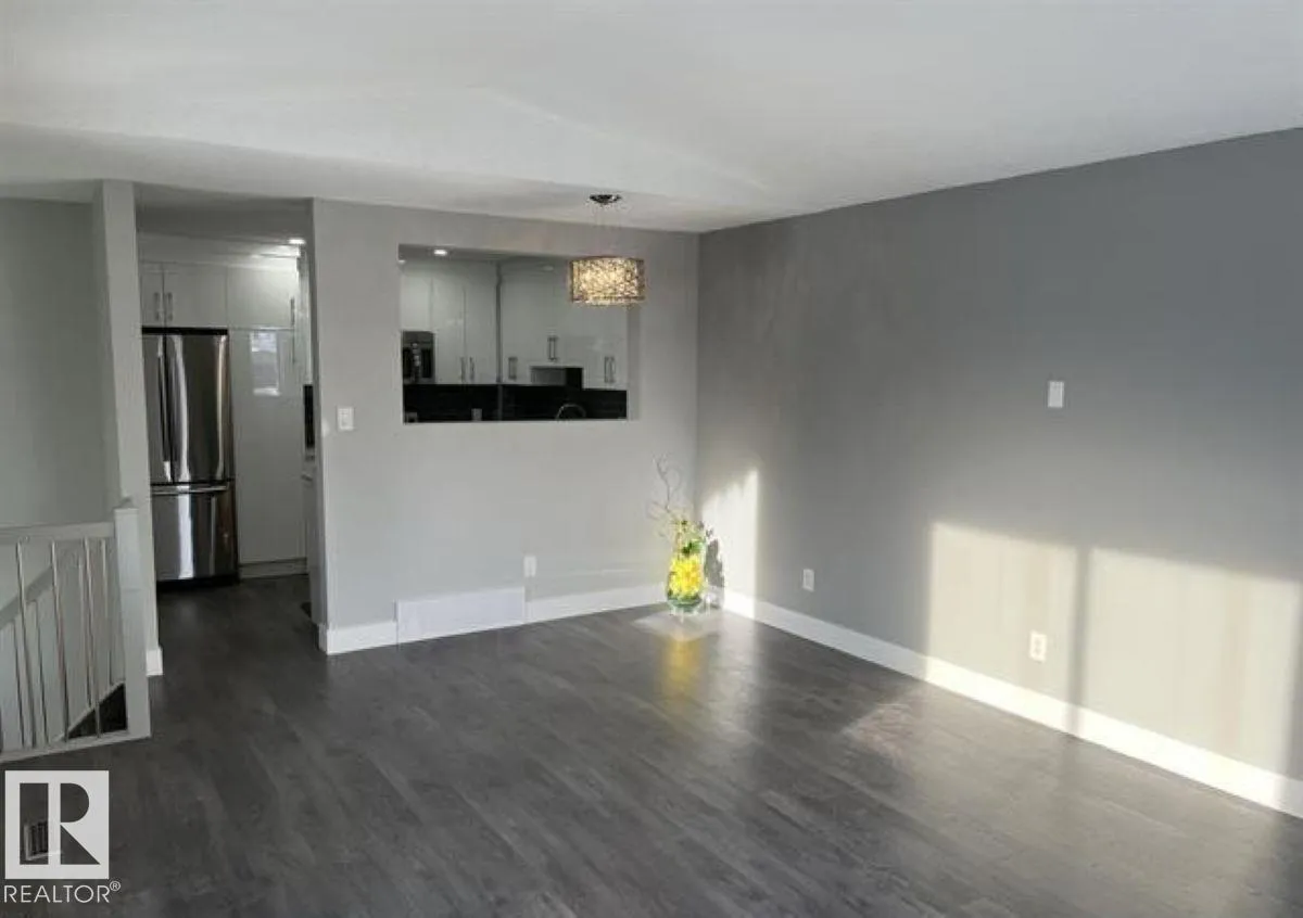 Welcome to this beautifully renovated 3-bedroom, 2-bathroom bi-level townhouse located in the heart of Lymburn. This home has been completely transformed from top to bottom and showcases brand new laminate flooring throughout, custom-tiled bathrooms, and sleek white high-gloss cabinetry in both the kitchen and bathrooms. The modern kitchen features stainless steel appliances, quartz countertops, bold black hardware, and a large gourmet island, all flowing seamlessly into a bright, open-concept living space accented by pot lights and a striking iron staircase. Mirrored closet doors enhance the spacious bedrooms, adding both style and function. Ideally situated close to all amenities with easy access to Whitemud Drive, Anthony Henday, West Edmonton Mall, and Misericordia Hospital, this move-in-ready townhouse offers modern living in a highly desirable location. (id:27476)