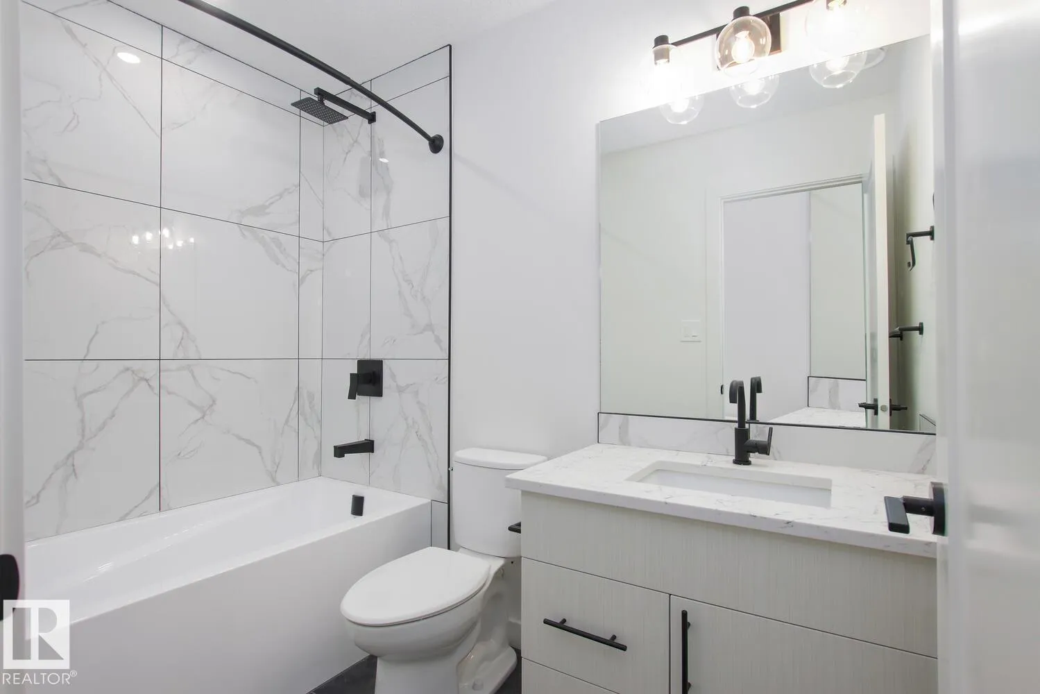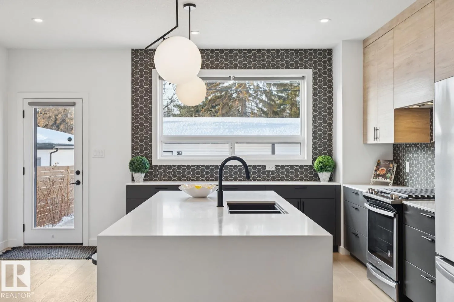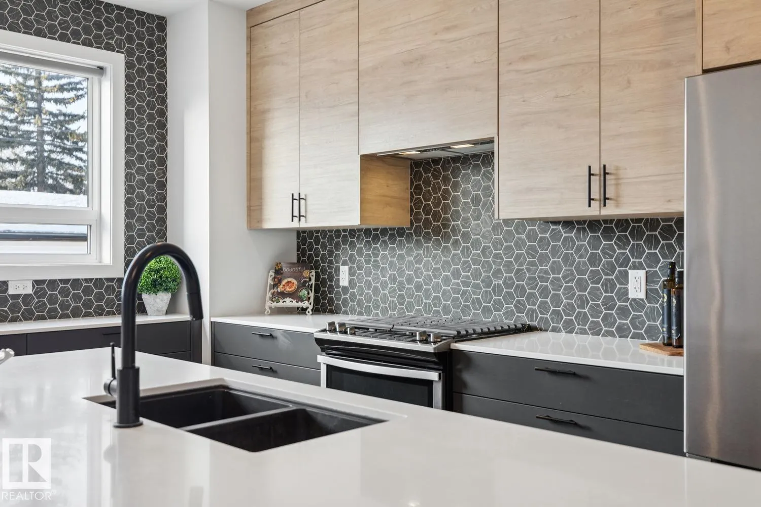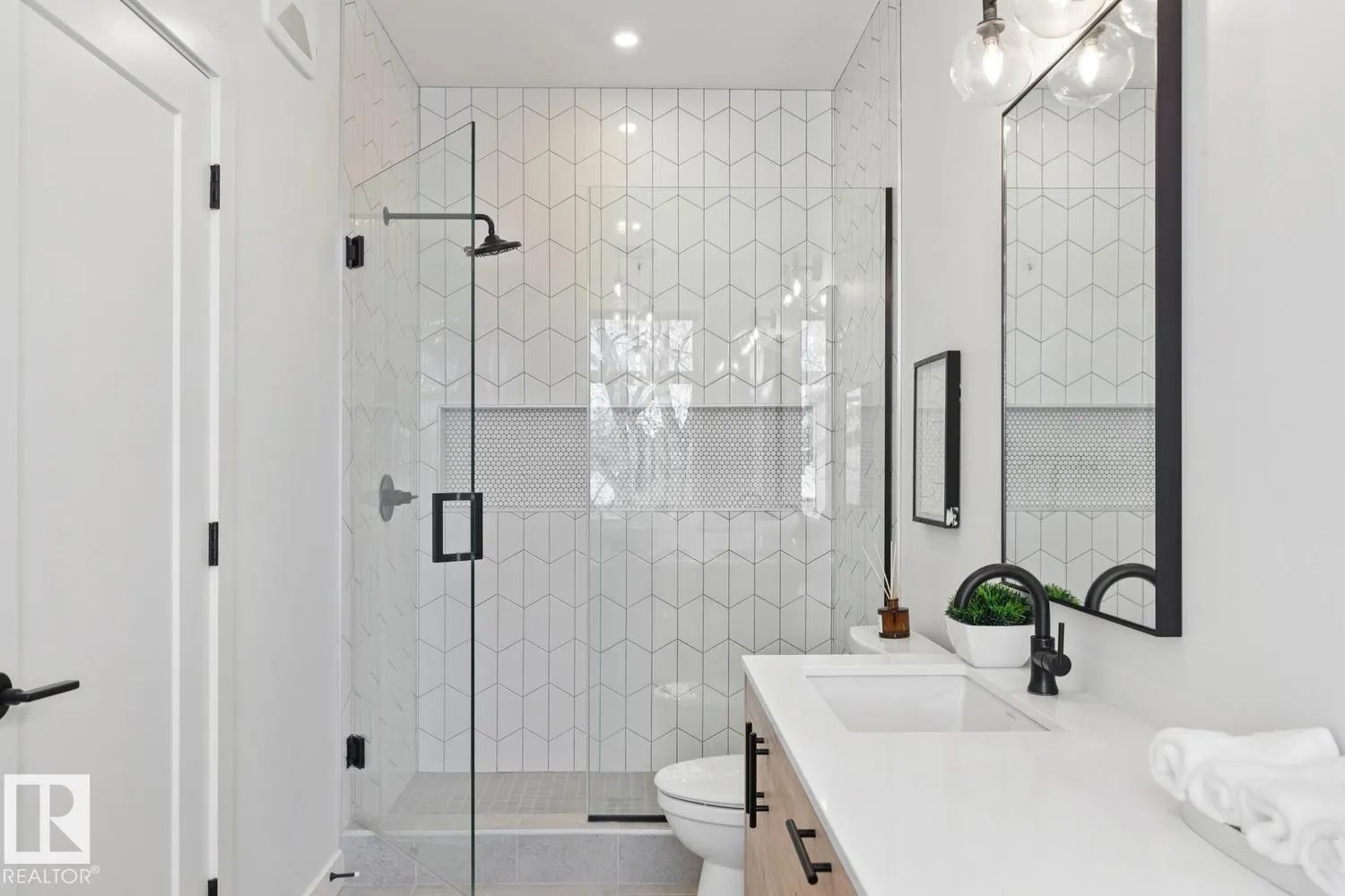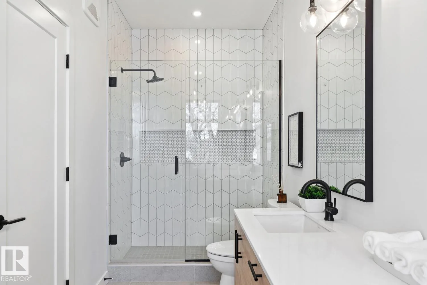 MORTGAGE HELPER â LEGAL 1-BEDROOM BASEMENT SUITE! Built by ACCENT INFILLS, Albertaâs 2020 Builder of the Year, The WINNIFRED is located in the highly sought after community of Westmount. This modern 4-bed, 4-bath, 2-storey home offers 1,574 sq. ft. (builder plans show 1,684 sq. ft.) of exceptional design & functionality. The exterior features striking Shou Sugi Ban burnt cedar with Hardie Board & Batten for standout curb appeal. Inside, enjoy 9-ft ceilings, oversized windows, & an open-concept main floor with a gourmet kitchen, stainless steel appliances, & a large waterfall islandâperfect for entertaining. The primary bedroom boasts a vaulted ceiling, walk-in closet, & a spa-like 5 piece ensuite. Professionally finished 1 bedroom Legal basement suite with private entrance, kitchen, full bath & in-suite laundryâideal for income or guests! West-facing rear deck & double garage included. Located on a tree-lined street near top schools, the Brewery District, trendy restaurants, & vibrant 124th Street. (id:27476)