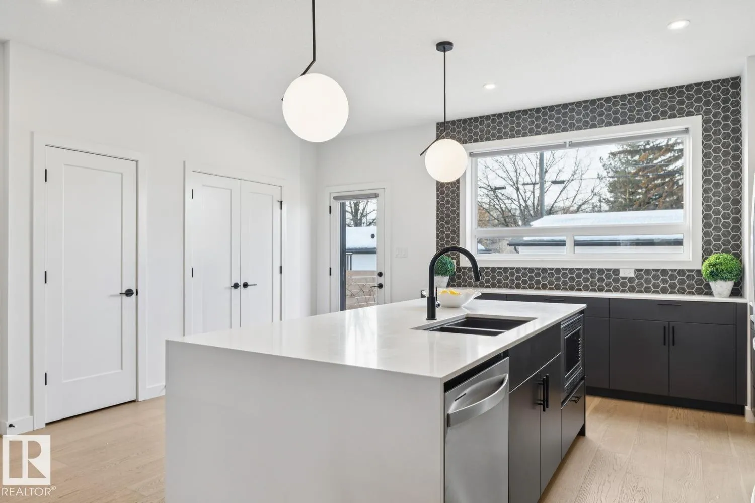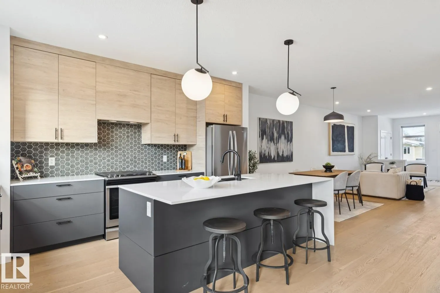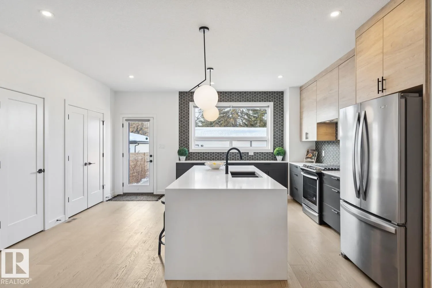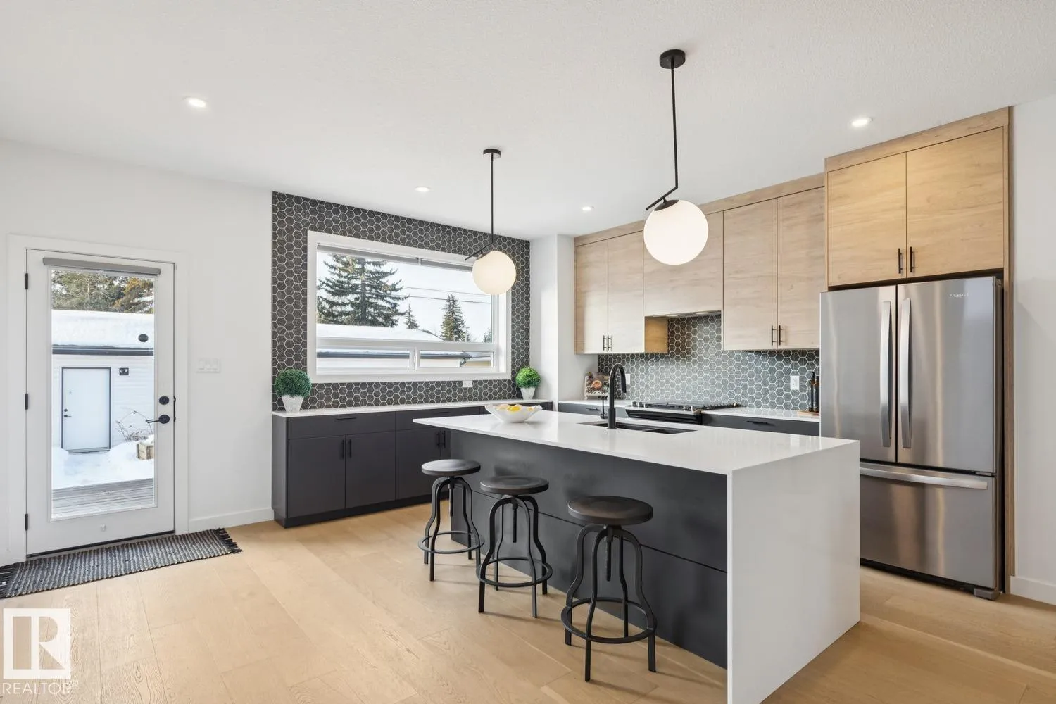 MORTGAGE HELPER â LEGAL 1-BEDROOM BASEMENT SUITE! Built by ACCENT INFILLS, Albertaâs 2020 Builder of the Year, The WINNIFRED is located in the highly sought after community of Westmount. This modern 4-bed, 4-bath, 2-storey home offers 1,574 sq. ft. (builder plans show 1,684 sq. ft.) of exceptional design & functionality. The exterior features striking Shou Sugi Ban burnt cedar with Hardie Board & Batten for standout curb appeal. Inside, enjoy 9-ft ceilings, oversized windows, & an open-concept main floor with a gourmet kitchen, stainless steel appliances, & a large waterfall islandâperfect for entertaining. The primary bedroom boasts a vaulted ceiling, walk-in closet, & a spa-like 5 piece ensuite. Professionally finished 1 bedroom Legal basement suite with private entrance, kitchen, full bath & in-suite laundryâideal for income or guests! West-facing rear deck & double garage included. Located on a tree-lined street near top schools, the Brewery District, trendy restaurants, & vibrant 124th Street. (id:27476)