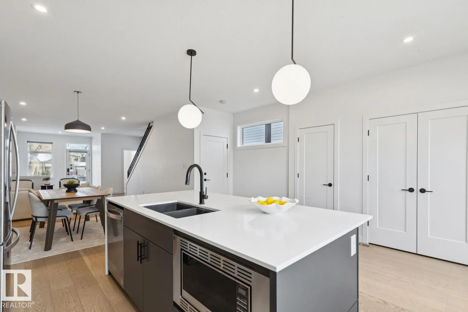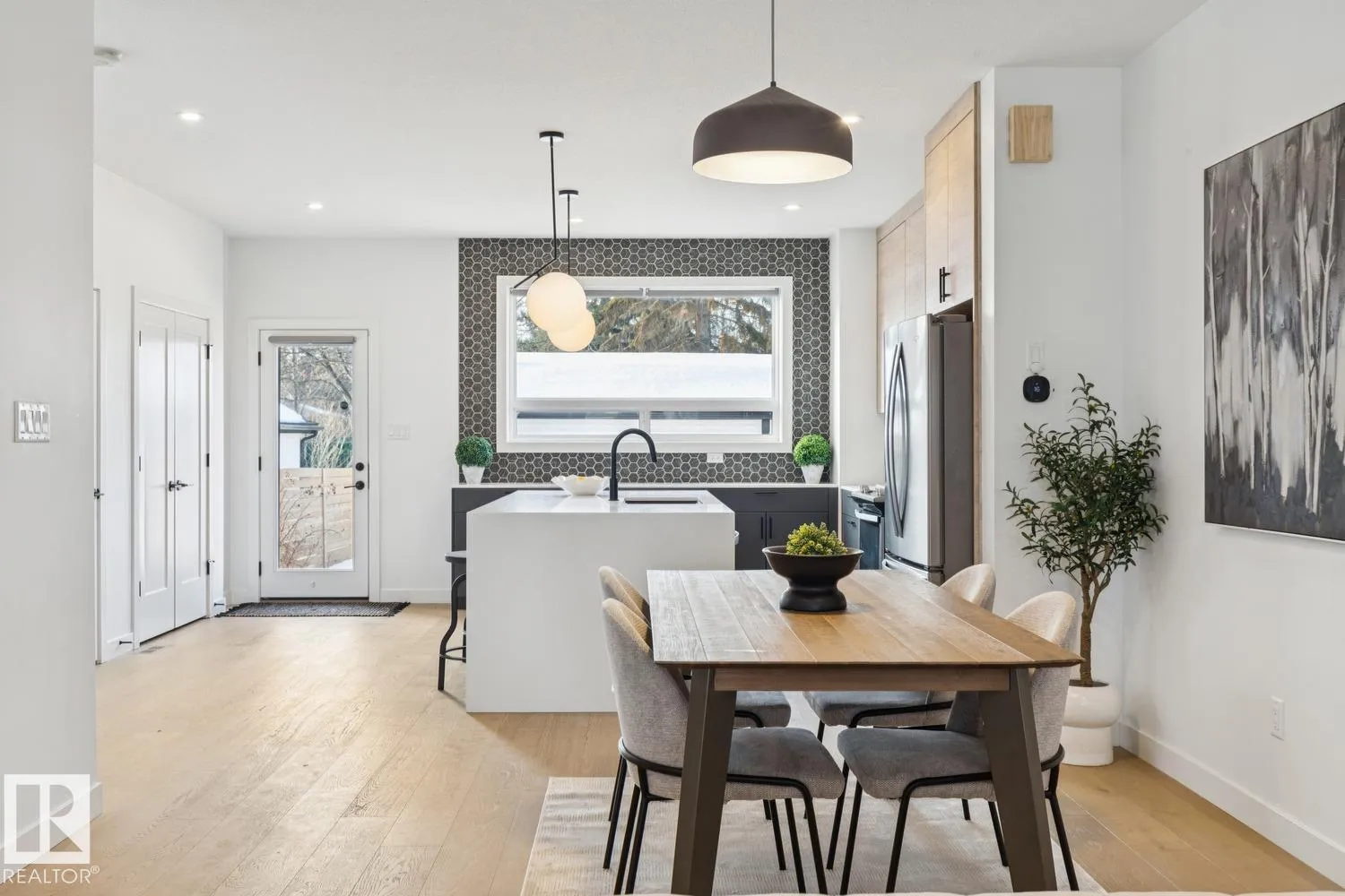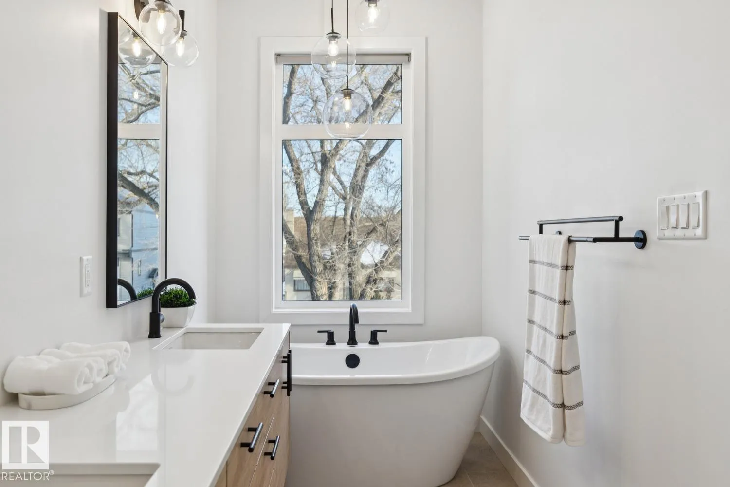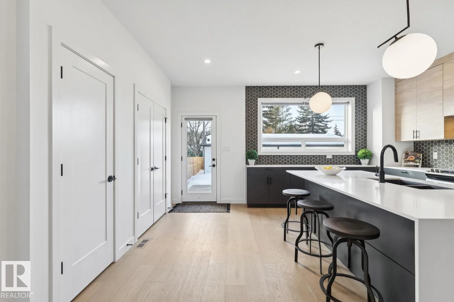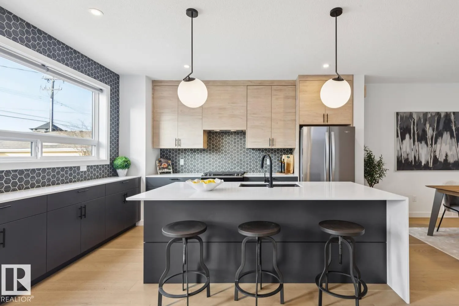 MORTGAGE HELPER â LEGAL 1-BEDROOM BASEMENT SUITE! Built by ACCENT INFILLS, Albertaâs 2020 Builder of the Year, The WINNIFRED is located in the highly sought after community of Westmount. This modern 4-bed, 4-bath, 2-storey home offers 1,574 sq. ft. (builder plans show 1,684 sq. ft.) of exceptional design & functionality. The exterior features striking Shou Sugi Ban burnt cedar with Hardie Board & Batten for standout curb appeal. Inside, enjoy 9-ft ceilings, oversized windows, & an open-concept main floor with a gourmet kitchen, stainless steel appliances, & a large waterfall islandâperfect for entertaining. The primary bedroom boasts a vaulted ceiling, walk-in closet, & a spa-like 5 piece ensuite. Professionally finished 1 bedroom Legal basement suite with private entrance, kitchen, full bath & in-suite laundryâideal for income or guests! West-facing rear deck & double garage included. Located on a tree-lined street near top schools, the Brewery District, trendy restaurants, & vibrant 124th Street. (id:27476)