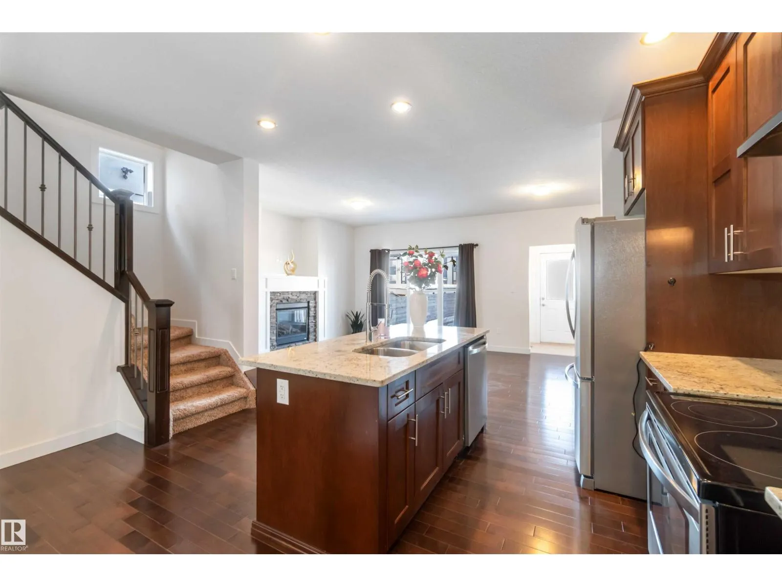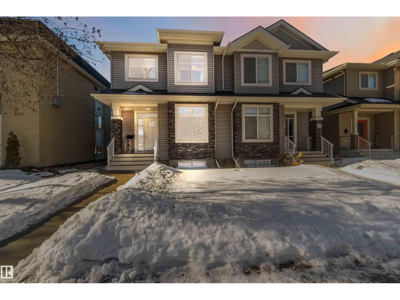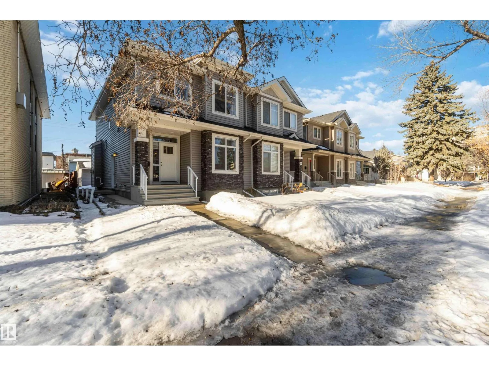 Inglewood welcomes you to this well-maintained half-duplex home offering 4 bedrooms, a den, 3.5 bathrooms, a fully finished basement. The main floor features beautiful, well-cared-for hardwood flooring, a large den near the front entry, a 2-piece bathroom, a spacious living room, & a stunning kitchen w/ a large granite island, rich wood cabinetry, SS Appliances & granite countertops.The upper level offers 3 spacious bedrooms, including a primary bedroom w/ a stunning 5-piece ensuite, plus a 4-piece bathroom, laundry room, & plush high-end carpeting throughout. A separate side entrance leads to the fully finished basement, complete w/ a large living room, kitchen, 4-piece bathroom, & a generous bedroom. The basement offers potential for conversion to a legal suite.The backyard is perfect for entertaining & provides access to the double garage. Conveniently located close to premier schools, NAIT Campus, Grant MacEwan University, easy access to the University of Alberta via Groat Road, and shopping centres. (id:27476)