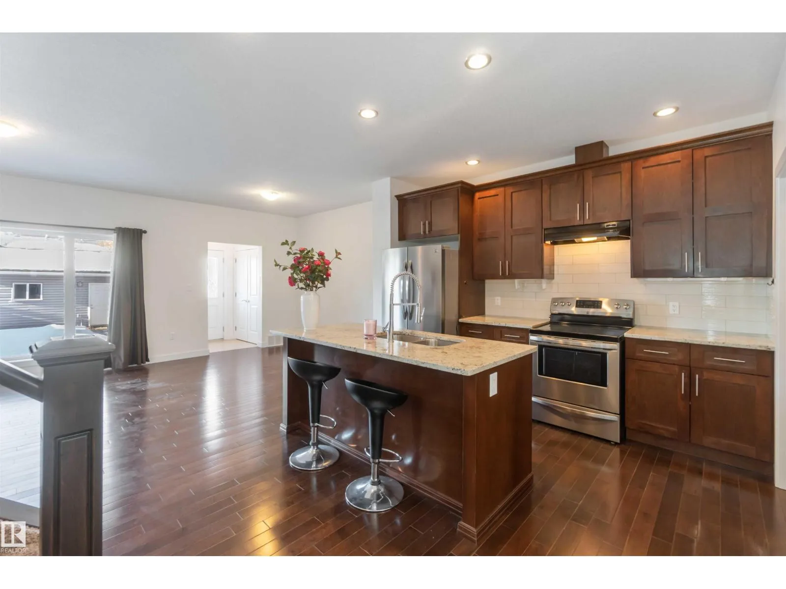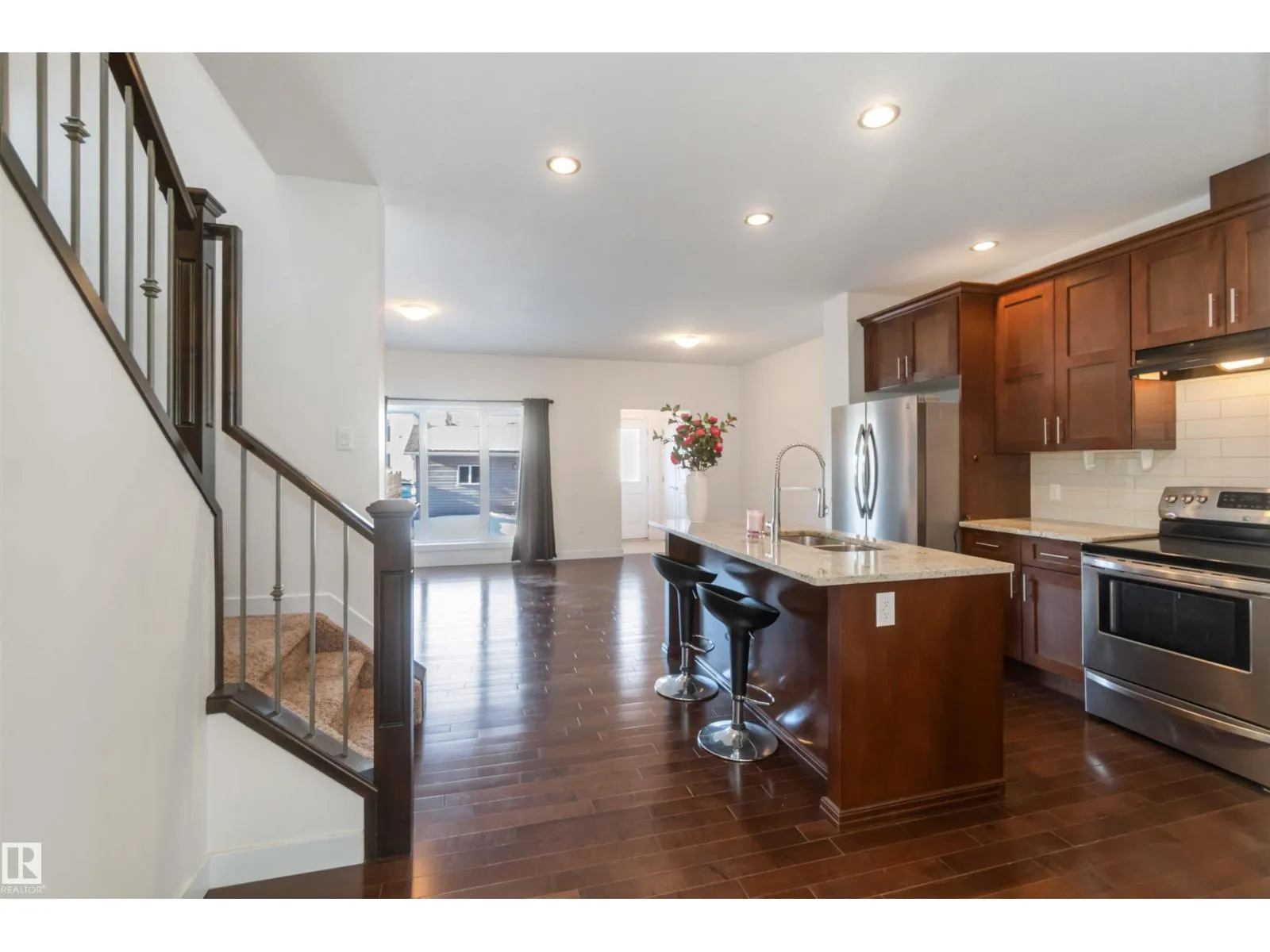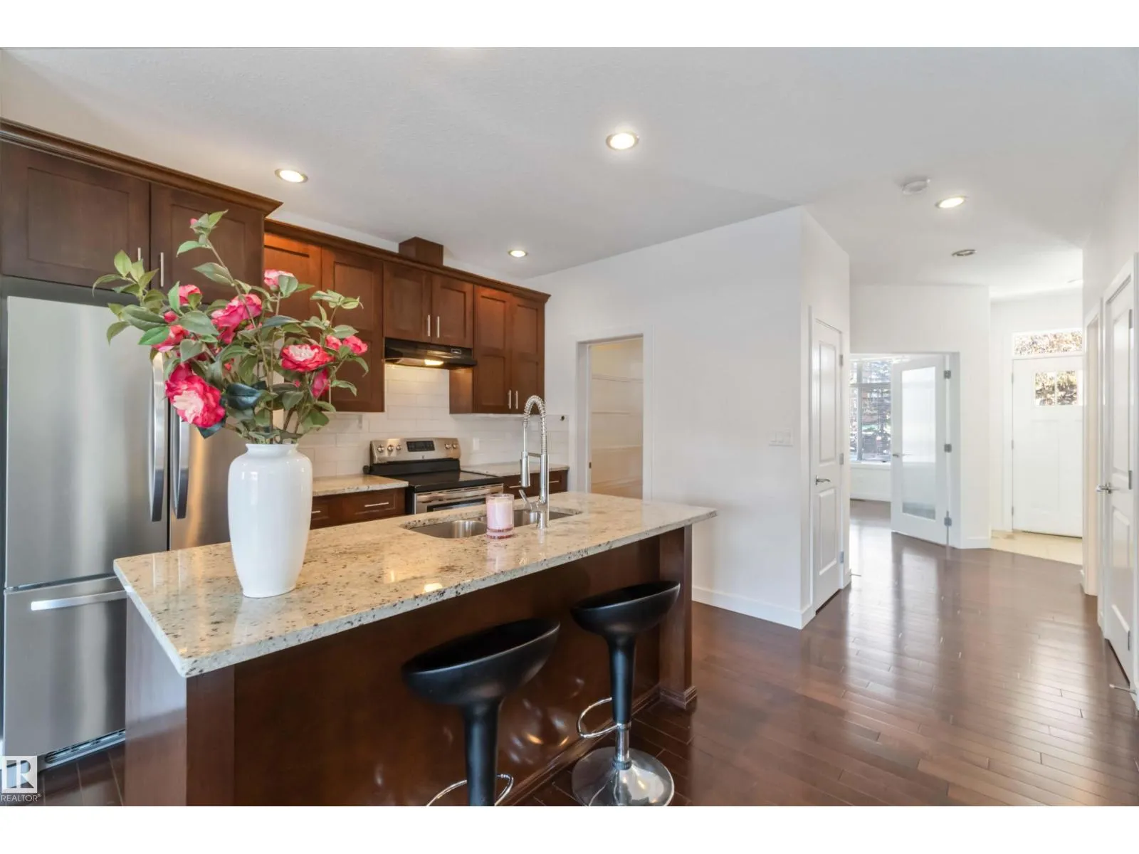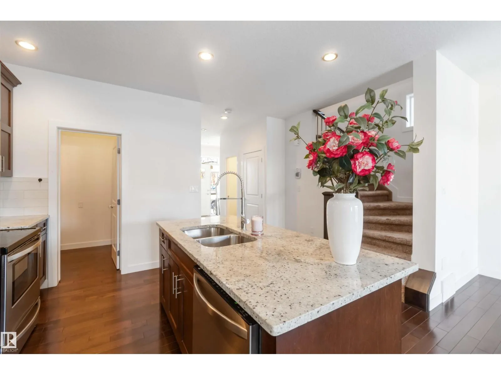 Inglewood welcomes you to this well-maintained half-duplex home offering 4 bedrooms, a den, 3.5 bathrooms, a fully finished basement. The main floor features beautiful, well-cared-for hardwood flooring, a large den near the front entry, a 2-piece bathroom, a spacious living room, & a stunning kitchen w/ a large granite island, rich wood cabinetry, SS Appliances & granite countertops.The upper level offers 3 spacious bedrooms, including a primary bedroom w/ a stunning 5-piece ensuite, plus a 4-piece bathroom, laundry room, & plush high-end carpeting throughout. A separate side entrance leads to the fully finished basement, complete w/ a large living room, kitchen, 4-piece bathroom, & a generous bedroom. The basement offers potential for conversion to a legal suite.The backyard is perfect for entertaining & provides access to the double garage. Conveniently located close to premier schools, NAIT Campus, Grant MacEwan University, easy access to the University of Alberta via Groat Road, and shopping centres. (id:27476)