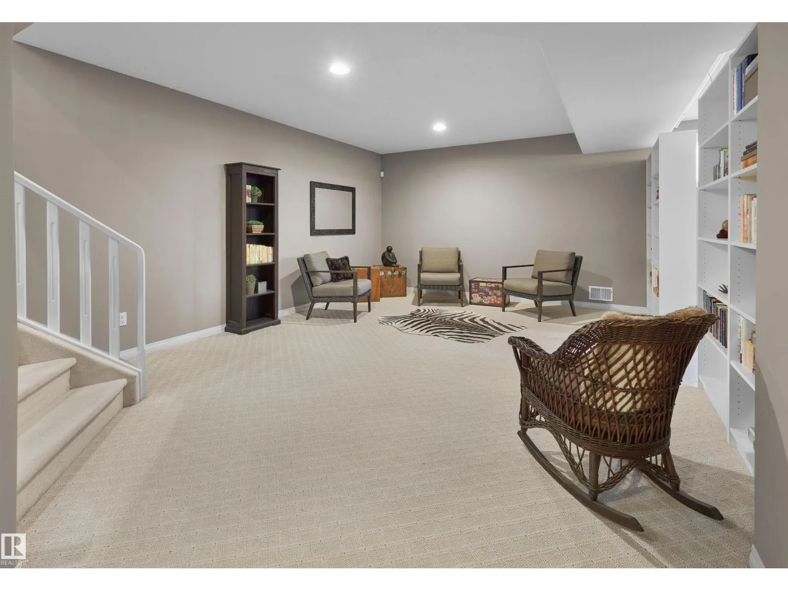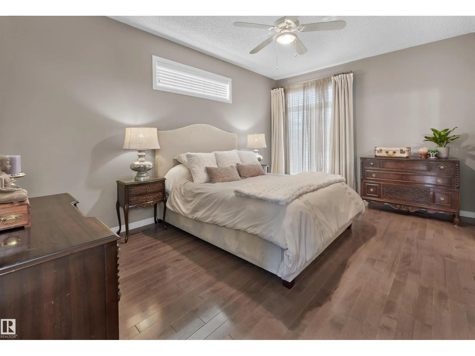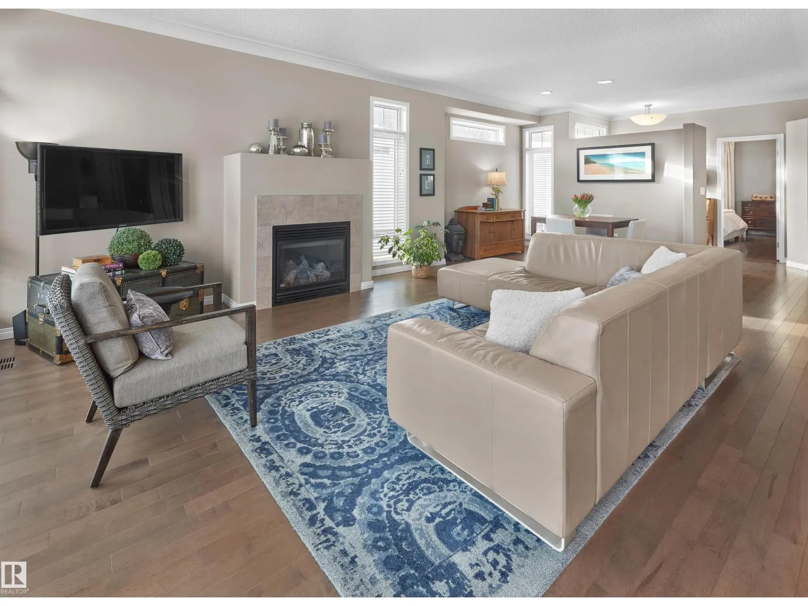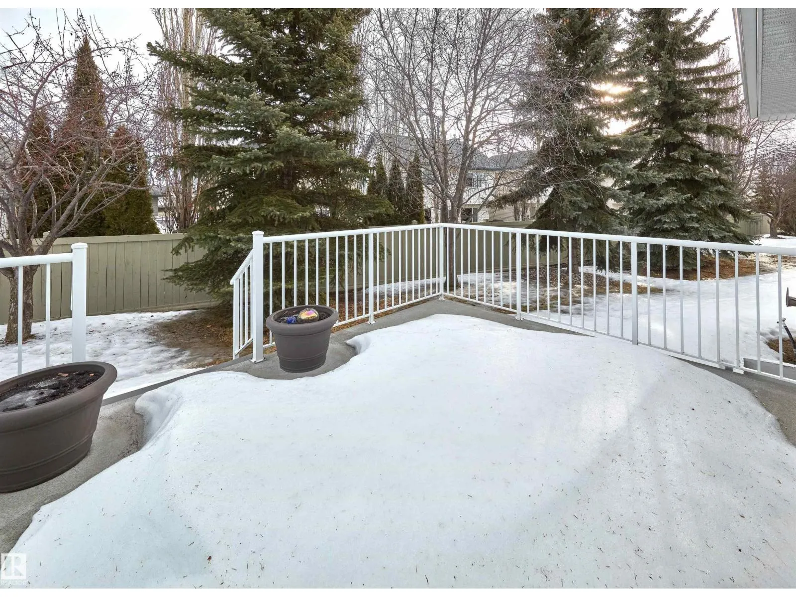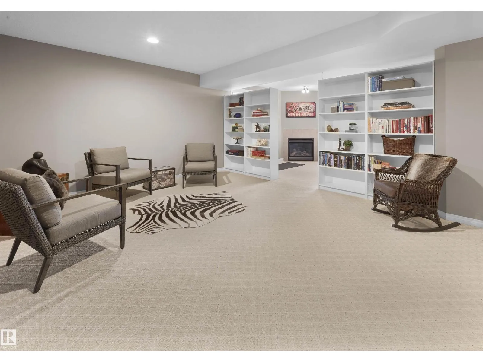 Tucked away in a peaceful Leger cul-de-sac, this beautifully maintained BRASS THREE half-duplex bungalow offers the feel of a single-family homeâwith NO CONDO FEES! Warm hardwood floors, a bright island kitchen with stainless appliances, and a cozy fireplace create an inviting main floor. The primary suite features a generous walk-in closet and a 5-piece ensuite. The finished basement adds another bedroom, rec room, flex spaces (perfect for a gym or office), a second fireplace and abundant storage. Enjoy summer evenings on the private deck, plus the convenience of a generous attached garage. Over 2,500 sq. ft. of total living space, steps to shopping and amenities at Rabbit Hill Rd & 23 Ave. Exceptional value in a friendly community with great neighbours! HOA fee covers landscape and snow removal and fences. (id:27476)