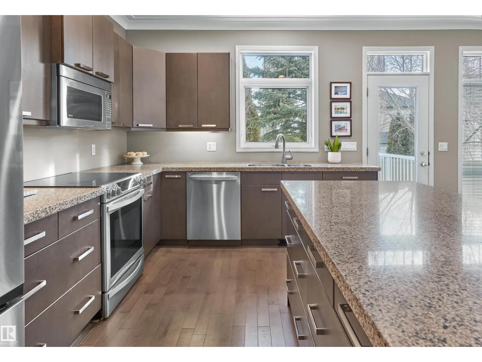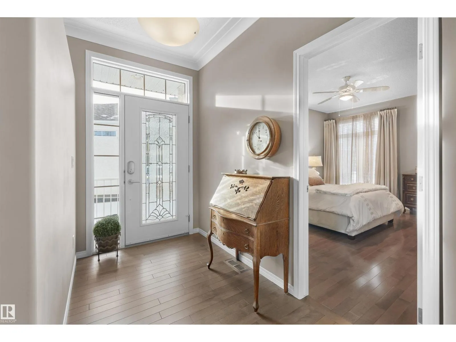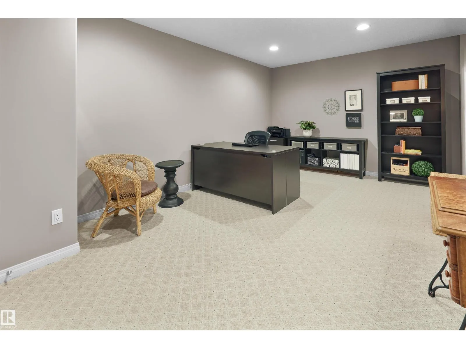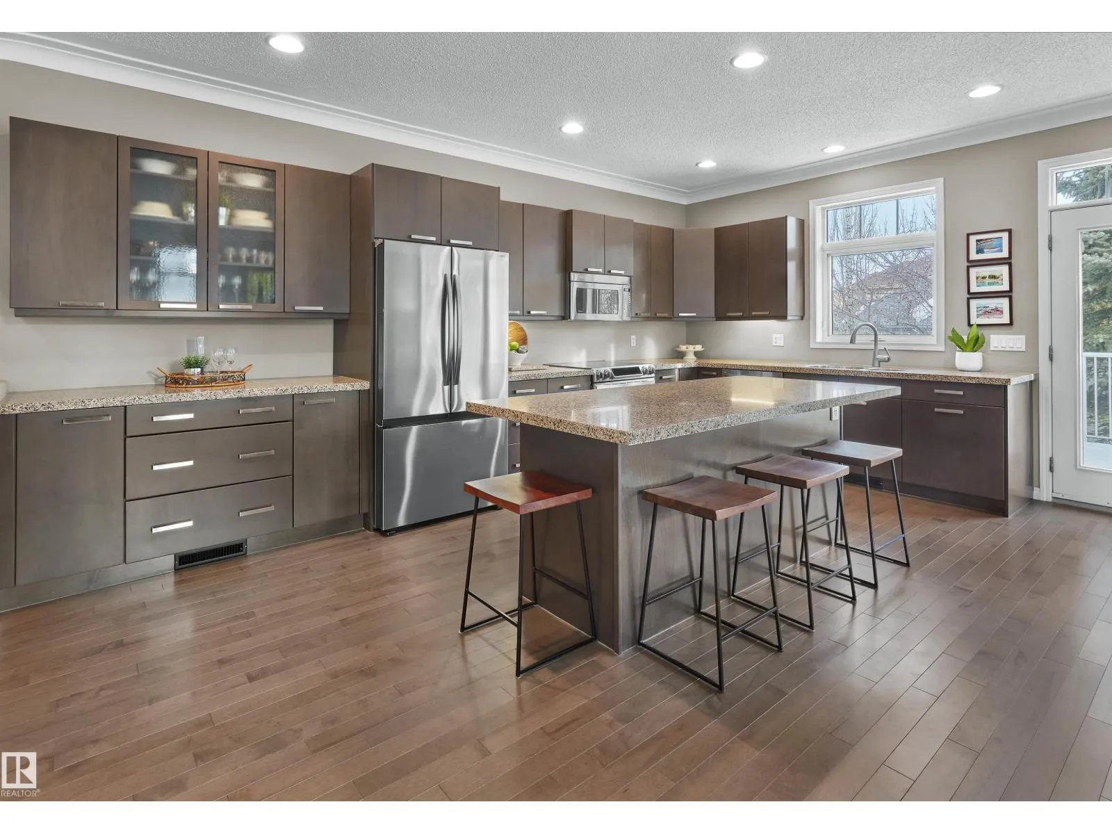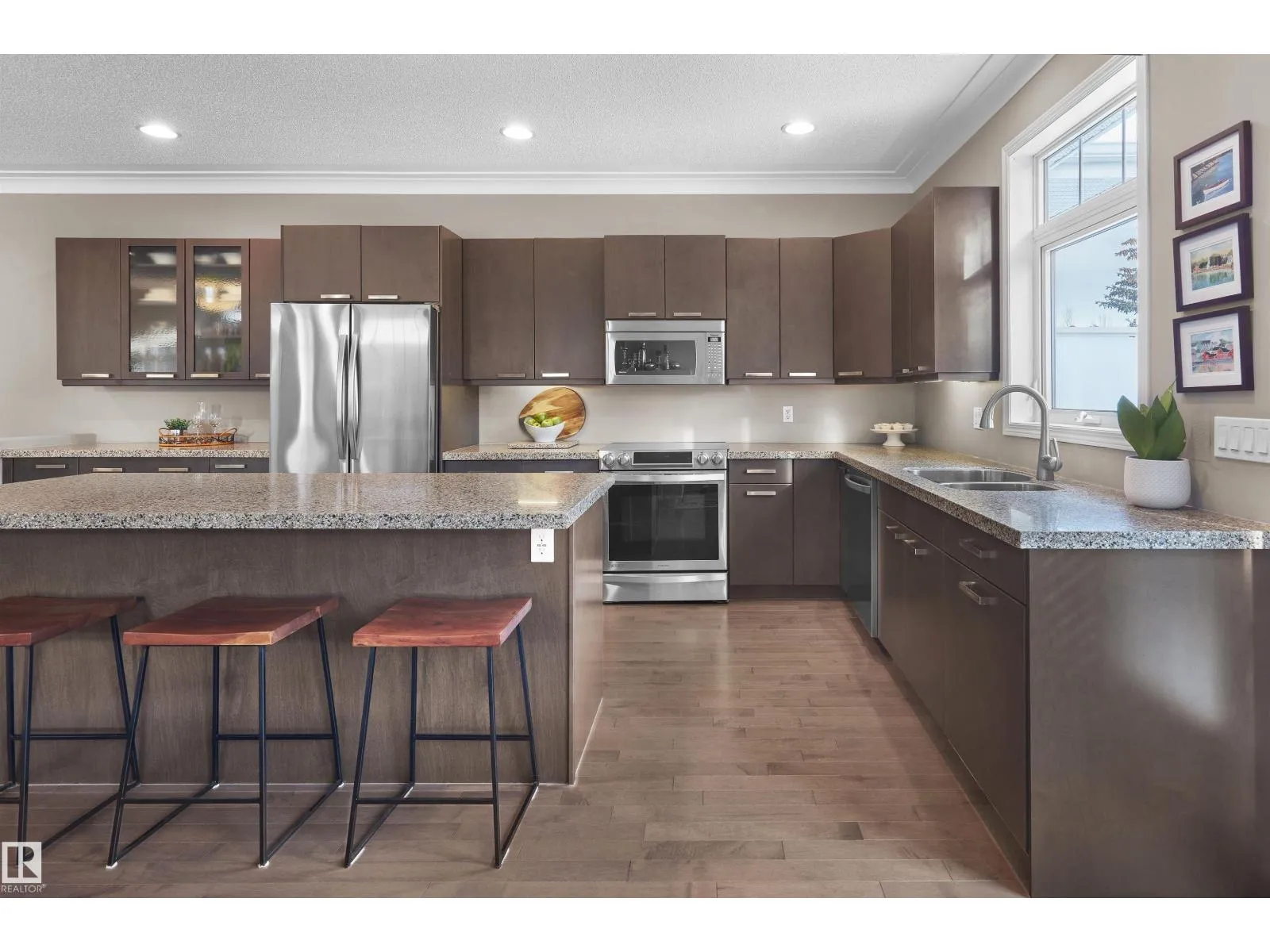 Tucked away in a peaceful Leger cul-de-sac, this beautifully maintained BRASS THREE half-duplex bungalow offers the feel of a single-family homeâwith NO CONDO FEES! Warm hardwood floors, a bright island kitchen with stainless appliances, and a cozy fireplace create an inviting main floor. The primary suite features a generous walk-in closet and a 5-piece ensuite. The finished basement adds another bedroom, rec room, flex spaces (perfect for a gym or office), a second fireplace and abundant storage. Enjoy summer evenings on the private deck, plus the convenience of a generous attached garage. Over 2,500 sq. ft. of total living space, steps to shopping and amenities at Rabbit Hill Rd & 23 Ave. Exceptional value in a friendly community with great neighbours! HOA fee covers landscape and snow removal and fences. (id:27476)