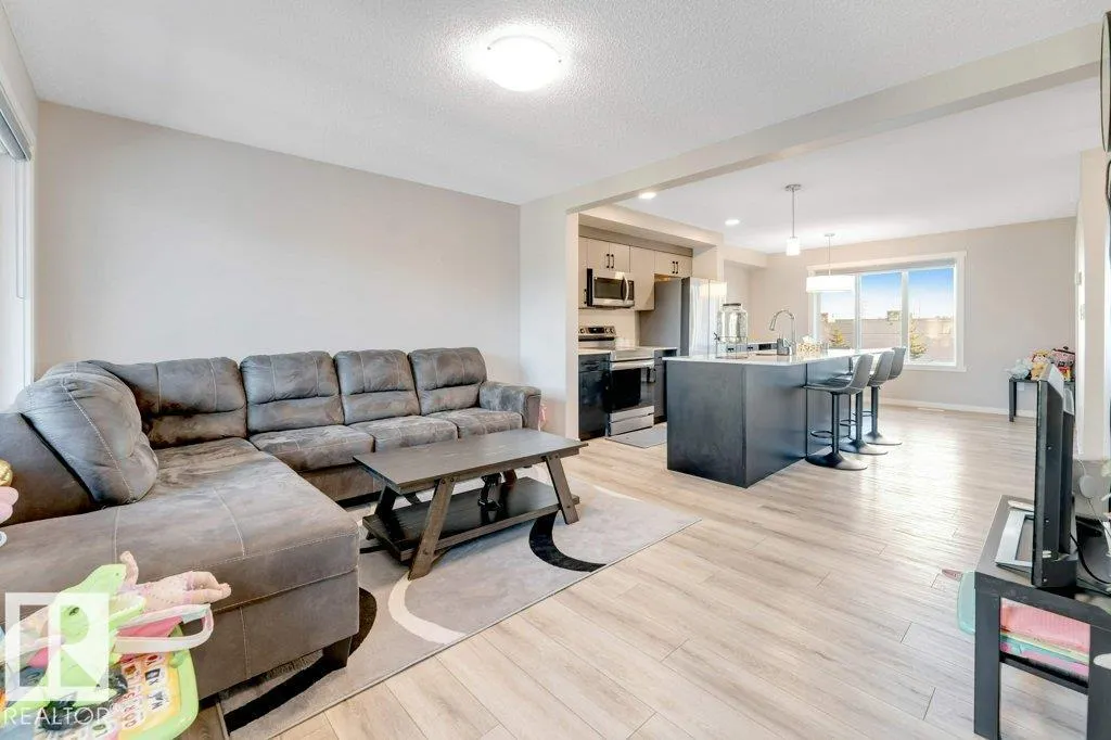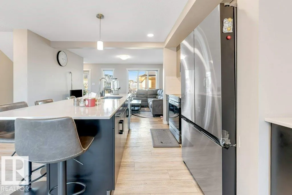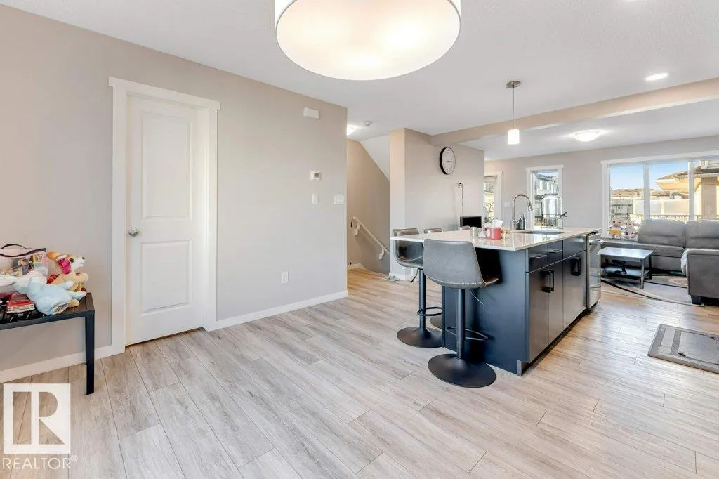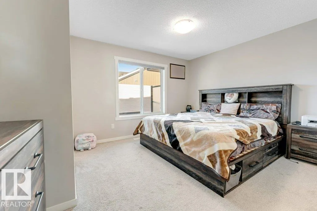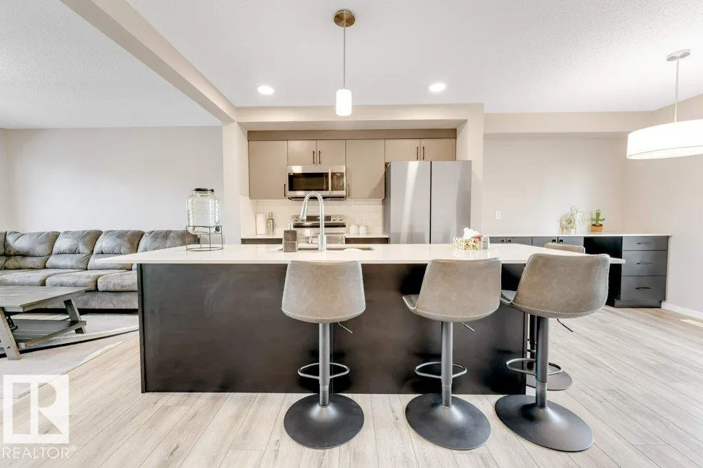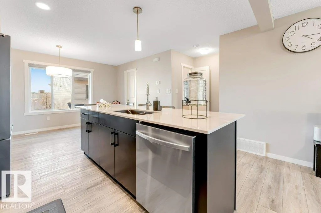 Welcome to StreetSide 3-storey home design featuring two spacious primary bedrooms, each with its own 4-piece ensuite and walk-in closets. The Main level a has a open-concept layout with a modern kitchen featuring quartz countertops, an island with flush eating bar, a powder room and a living room that opens onto a vinyl & aluminum deckâperfect for relaxing or entertaining. Stylish finishes include luxury vinyl plank flooring and carpet throughout. The Upper floor contains 2 bedrooms each with there own ensuite and walk-in closets, laundry completes this level. The oversized doublele garage provides extra space for storage or toys. Enjoy professional landscaping, visitor parking on site, and close to shopping and amenities Anthony Hendey and Whitemud. (id:27476)