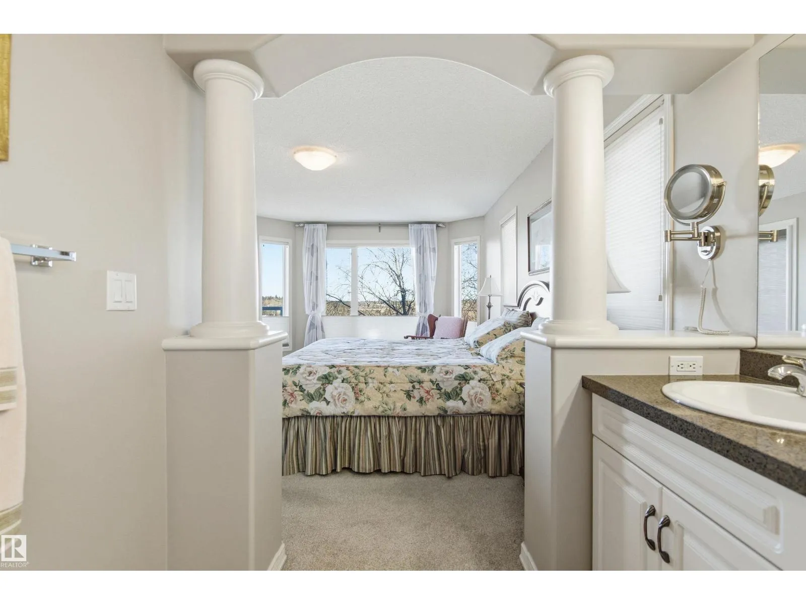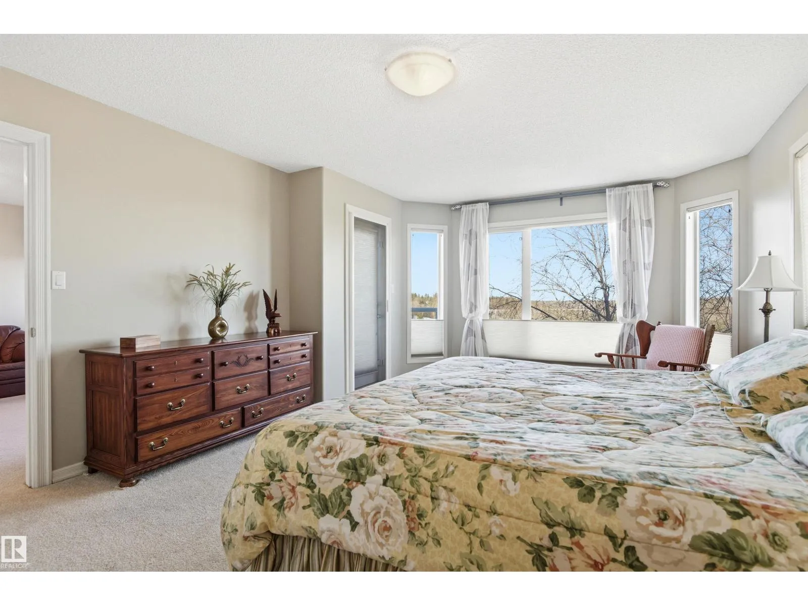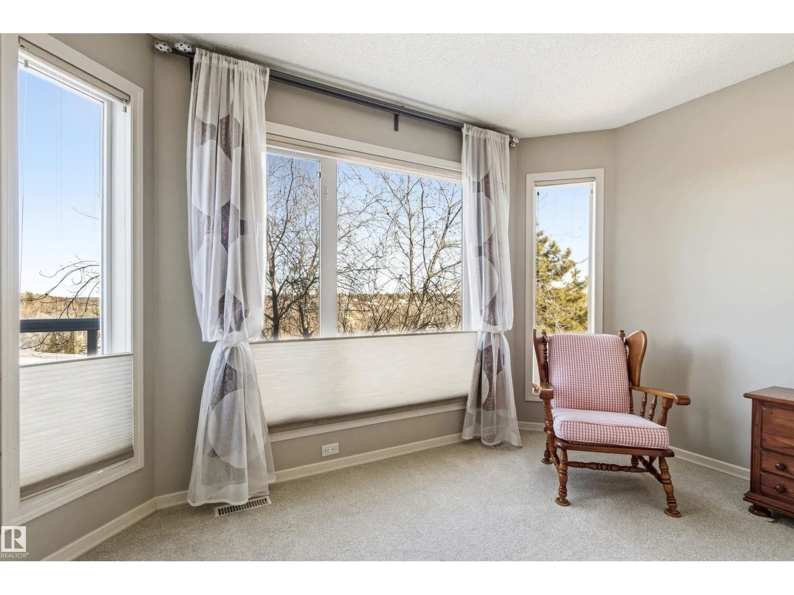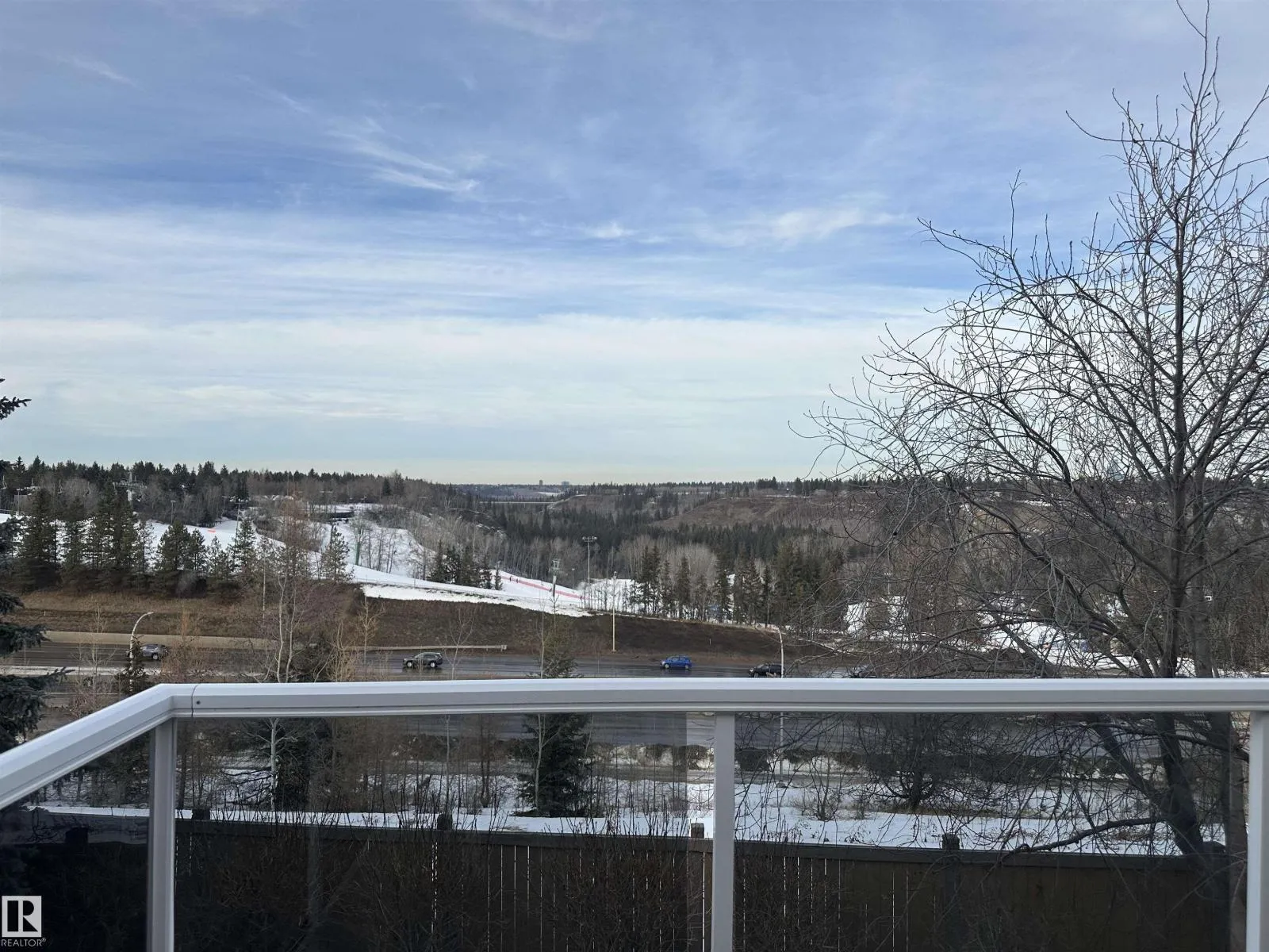Feels like home in this Castle On a Hill! Truly the Best of Both Worlds! Executive carefree living with panoramic ravine & city views. Quiet end unit. 2150 sq ft on two levels plus a fully developed lower level. It looks amazing inside and out with a gorgeous layout & surrounded by nature. Private & secluded, Serene & surreal! Main floor boasts a spacious & inviting foyer. Elegant formal dining area with two huge windows. Beautiful kitchen with ample cabinets & a garden window over sink. Bright & cheery dinette has huge picturesque windows & french door onto the private deck. Fantastic great room has two windows & gorgeous gas fireplace. Master tranquil retreat has that same unsurpassed view. Walk-in closet & 5 piece jacuzzi ensuite. Second bedroom is humongous with access to a full bath. Cozy family room/loft has a commanding view including the ski hill & a private balcony. Conveniently located laundry room. Lower level has a rec room, 2 more large bedrooms, full bath & ample storage.A pleasure to show. (id:27476)