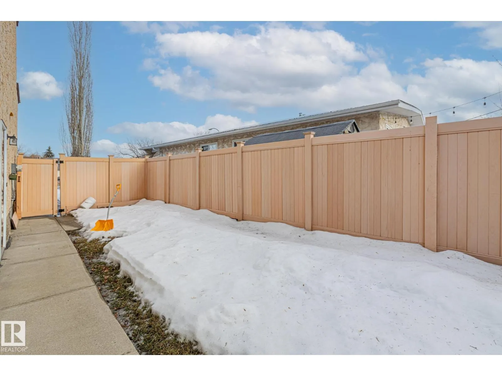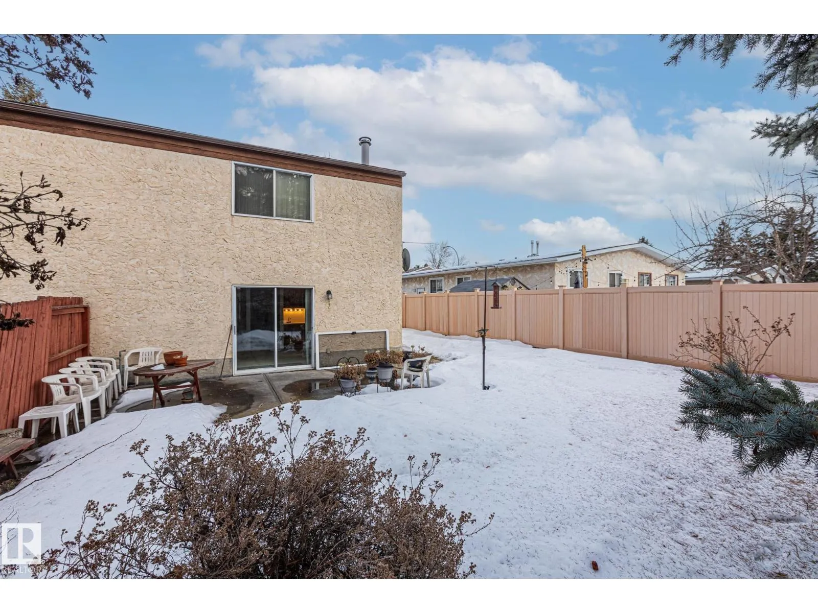 Welcome to Belmead. NO CONDO FEE duplex offers a well-designed four-level living space, perfect for large families or those seeking a sound investment opportunity. This home features three generously sized bedrooms and three bathrooms. Functional kitchen and the cutest coffee deck off the eating nook. Ideal floor plan seamlessly blends style (check out the awesome wood details!) and practicality. Large family-style dining room ideal for gatherings, while the large living room boasts a cozy brick-facing fireplace, wet bar, and sliding doors that lead to an expansive fenced backyard, providing excellent sight lines for parents to watch their children play. Side entrance with great mud room! Primary suite is a true sanctuary, spacious enough for a king-sized bed and featuring a convenient two-piece ensuite. Two additional bedrooms on their own level are perfect for family, guests, or office space. Unbeatable location situated minutes away from WEM, LRT expansion, Henday, schools, and a variety of amenities. (id:27476)