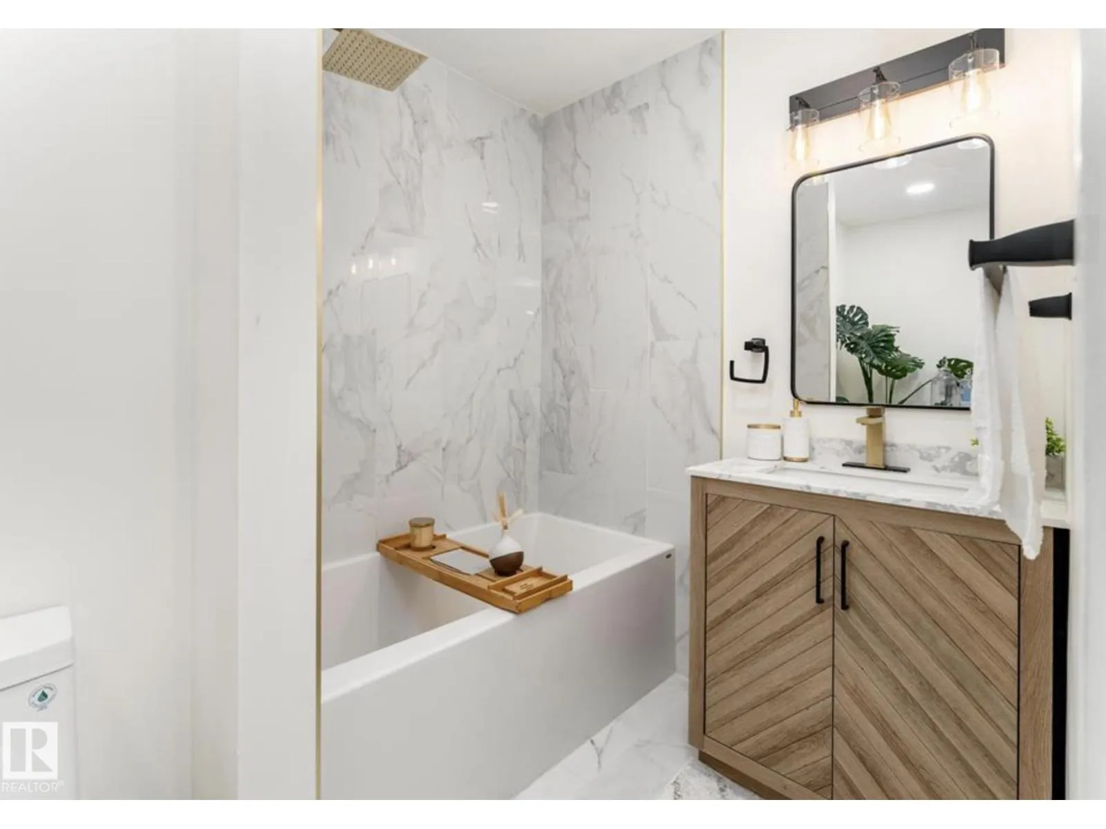 Discover the newest standout in Baturyn... a home that redefines modern living in an established community. This isn't just a renovation; itâs a contemporary masterpiece featuring a striking designer porcelain feature wall and sleek glass railings that immediately set a sophisticated tone. The chef-inspired kitchen is the heart of the main floor, equipped with premium appliances and flowing seamlessly into a sunlit dining space designed for hosting. The main floor offers three spacious bedrooms, including a primary retreat with a chic private ensuite. The wow factor continues in the fully finished basement, which features a custom fireplace media wall and a layout designed for extended family or guests. The lower level includes two additional bedroomsâone of which is a true VIP suite with its own private lounge and ensuite bath. Situated on a commanding corner lot with an oversized double garage and expansive deck, this home offers the perfect blend of luxury finishes and functional family living. (id:27476)