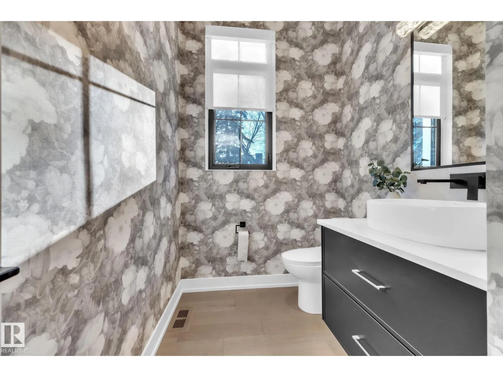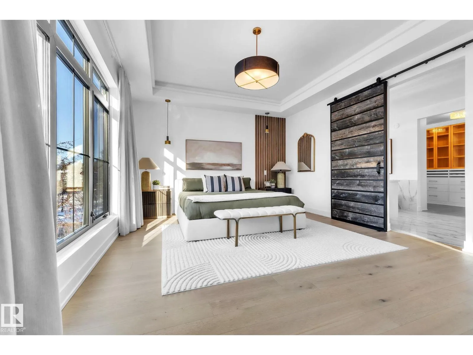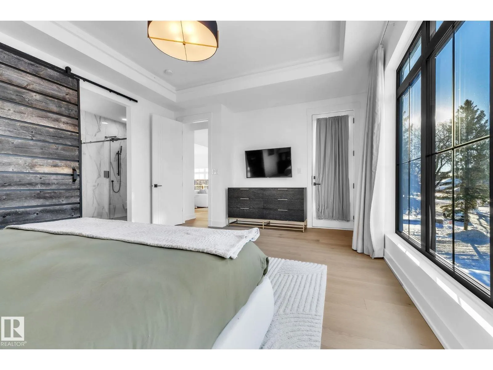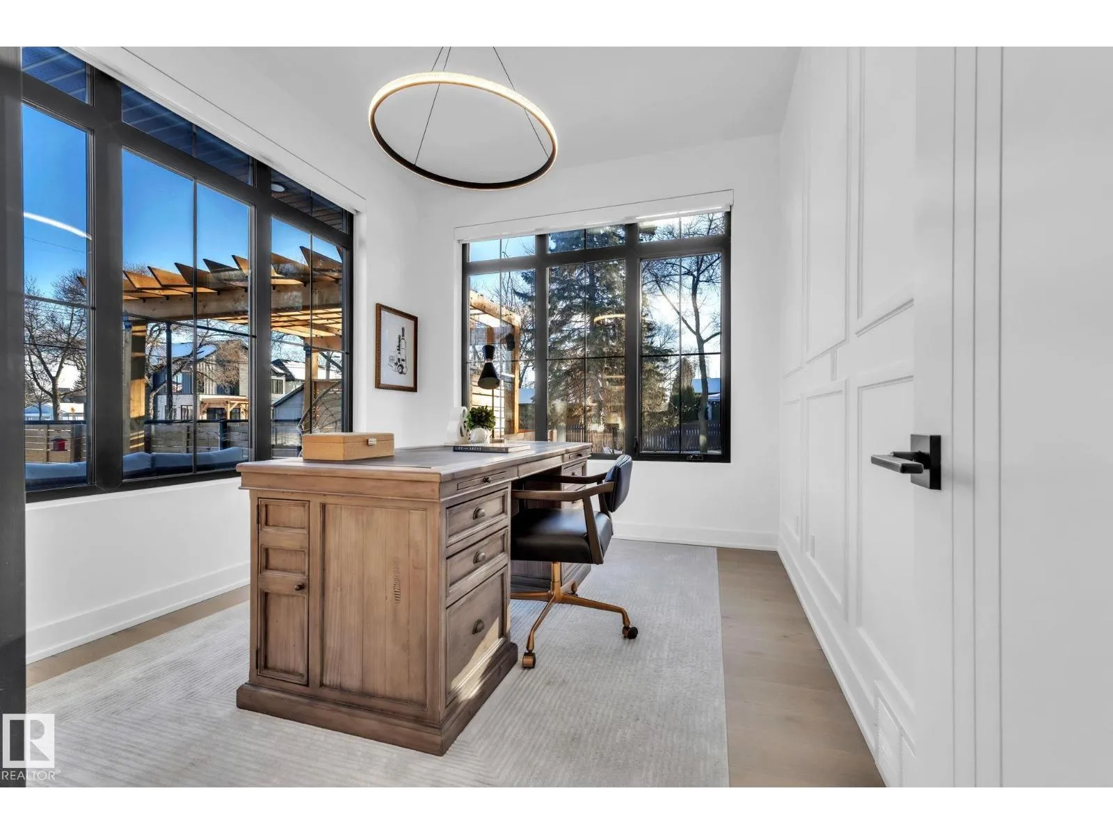 Stunning executive yet family friendly home in prestigious Glenora. At 4,587 SqFt of refined living space designed with architectural precision, this 2-storey masterpiece offers a level of craftsmanship & proportions that mix modern with timelessness & comfort. The main floor scale is impressive yet warm, engulfed in natural light from floor to ceiling windows with East, South & West exposures. The kitchen is nothing but impressive & grand: expansive cabinetry, quartz countertops, 6-burner gas range, pot-filler, a butlerâs pantry & lux finishes! Vaulted upper level bonus sitting area w/deck, an unforgettable primary suite w/ 6 piece spa-like ensuite & custom walk-in closet, 2 more bdrms & 5Pce bath. Lower level space for family living & fun vibes: wine room, swanky yet sophisticated wet bar, guest suite, home gym. Executive office, remote blinds, great yard, expansive deck & 4-car heated garage completes the package. Steps from schools, parks, River Valley trails & all of Downtown Edmontonâs amenities. (id:27476)