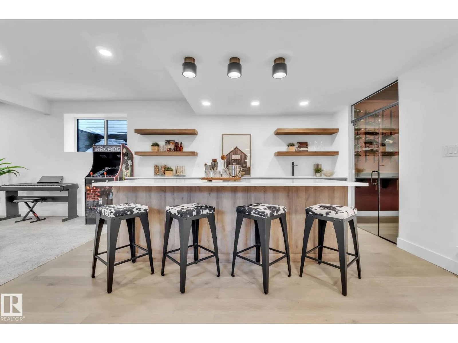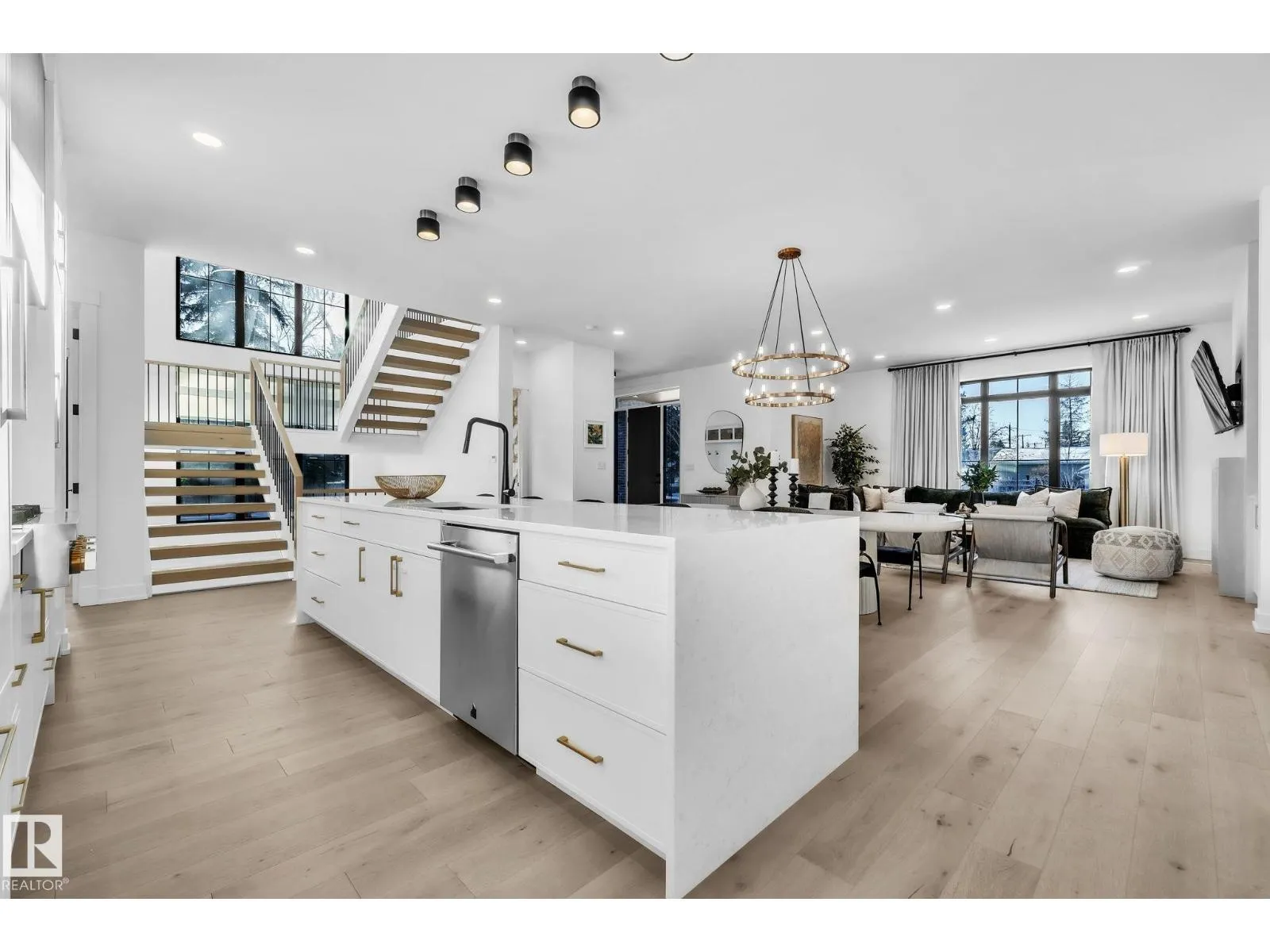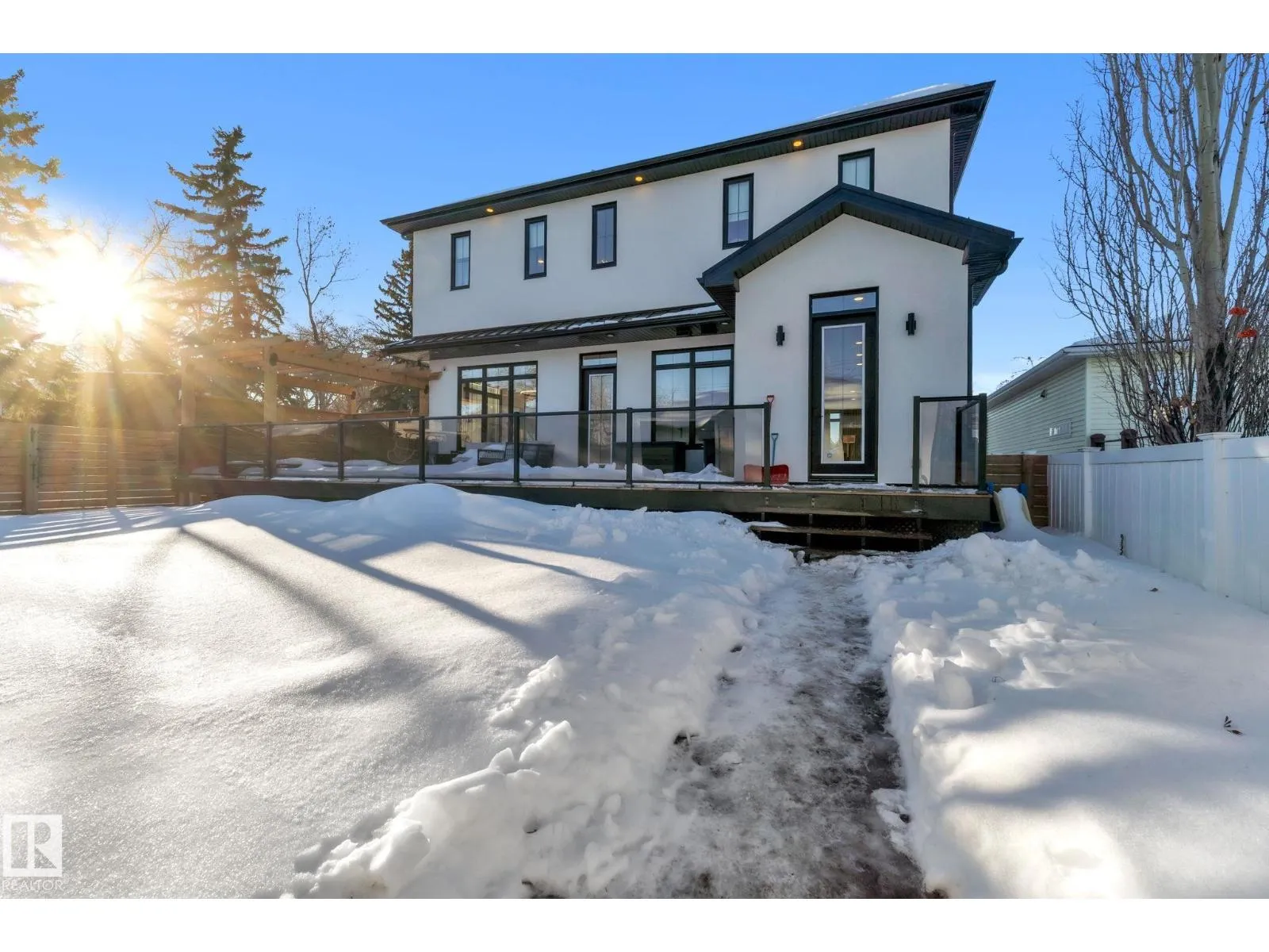 Stunning executive yet family friendly home in prestigious Glenora. At 4,587 SqFt of refined living space designed with architectural precision, this 2-storey masterpiece offers a level of craftsmanship & proportions that mix modern with timelessness & comfort. The main floor scale is impressive yet warm, engulfed in natural light from floor to ceiling windows with East, South & West exposures. The kitchen is nothing but impressive & grand: expansive cabinetry, quartz countertops, 6-burner gas range, pot-filler, a butlerâs pantry & lux finishes! Vaulted upper level bonus sitting area w/deck, an unforgettable primary suite w/ 6 piece spa-like ensuite & custom walk-in closet, 2 more bdrms & 5Pce bath. Lower level space for family living & fun vibes: wine room, swanky yet sophisticated wet bar, guest suite, home gym. Executive office, remote blinds, great yard, expansive deck & 4-car heated garage completes the package. Steps from schools, parks, River Valley trails & all of Downtown Edmontonâs amenities. (id:27476)