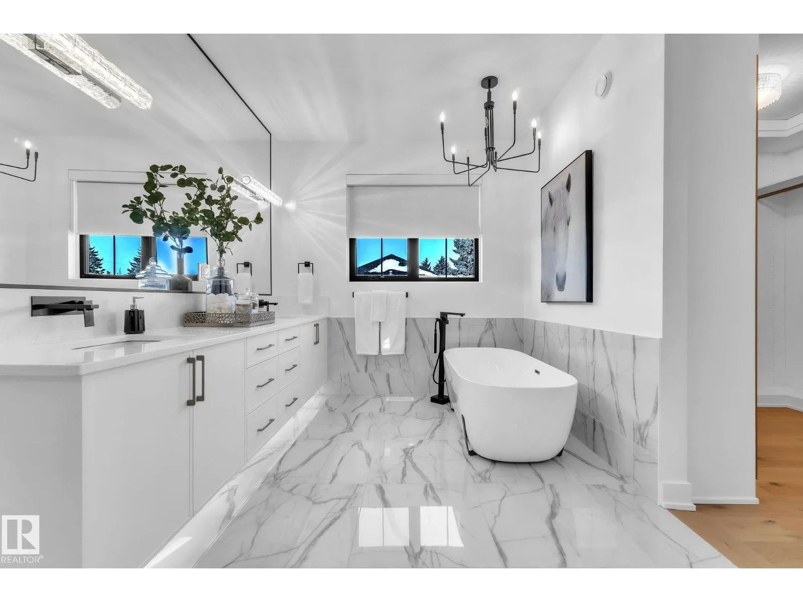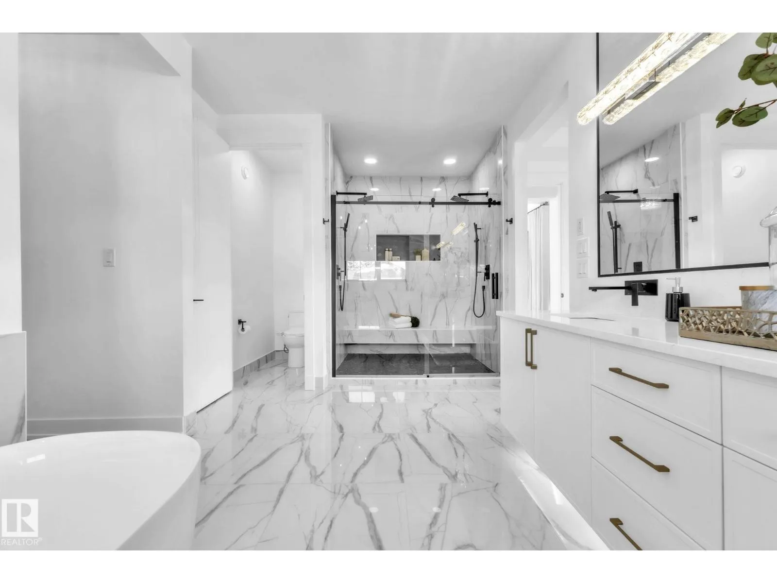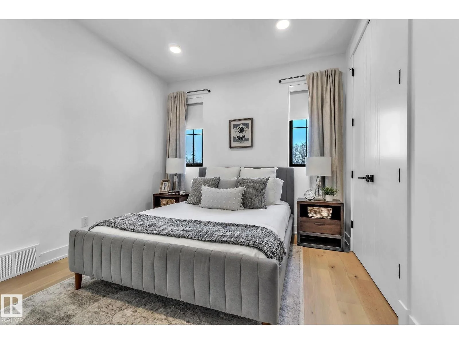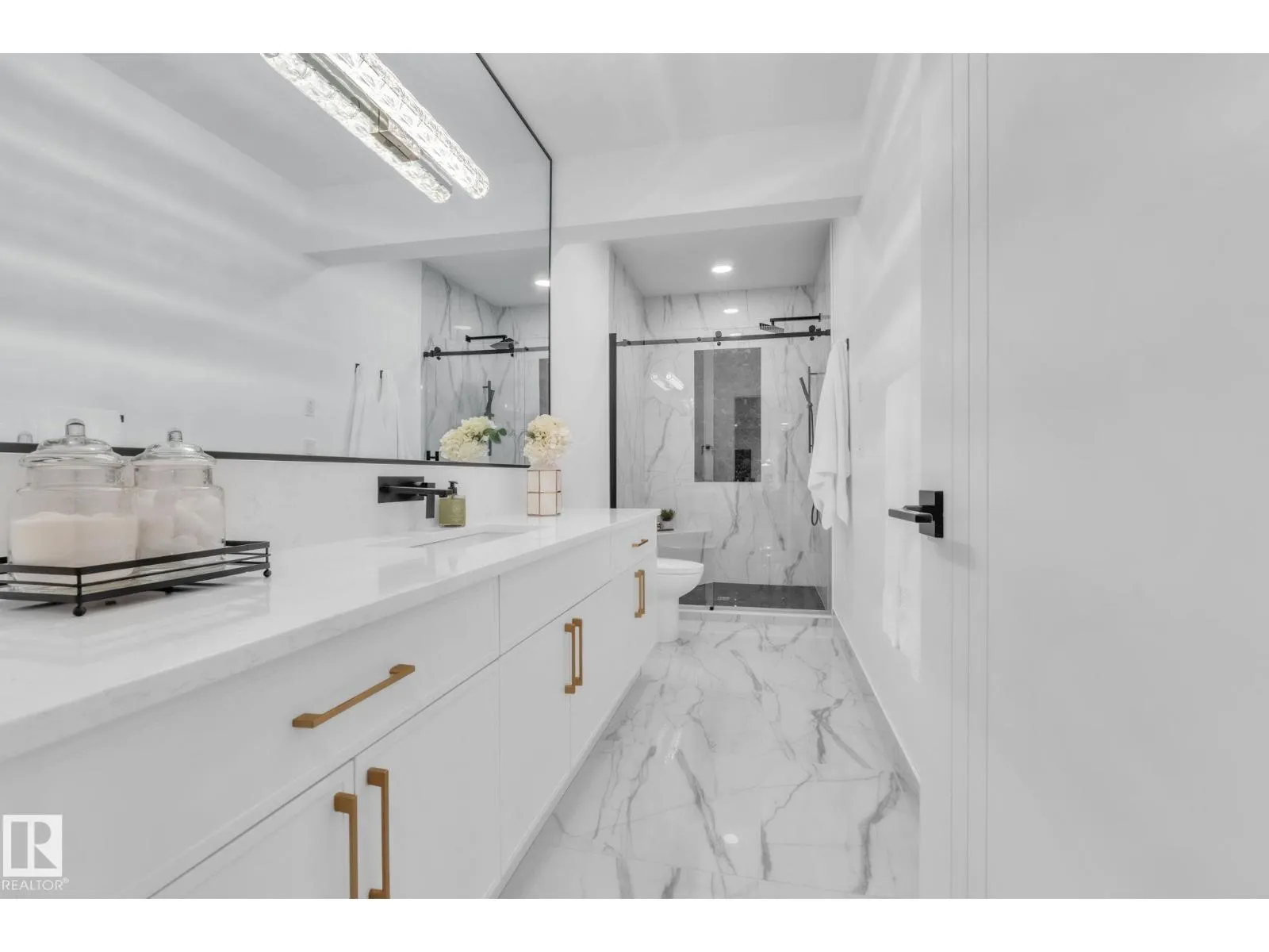 Stunning executive yet family friendly home in prestigious Glenora. At 4,587 SqFt of refined living space designed with architectural precision, this 2-storey masterpiece offers a level of craftsmanship & proportions that mix modern with timelessness & comfort. The main floor scale is impressive yet warm, engulfed in natural light from floor to ceiling windows with East, South & West exposures. The kitchen is nothing but impressive & grand: expansive cabinetry, quartz countertops, 6-burner gas range, pot-filler, a butlerâs pantry & lux finishes! Vaulted upper level bonus sitting area w/deck, an unforgettable primary suite w/ 6 piece spa-like ensuite & custom walk-in closet, 2 more bdrms & 5Pce bath. Lower level space for family living & fun vibes: wine room, swanky yet sophisticated wet bar, guest suite, home gym. Executive office, remote blinds, great yard, expansive deck & 4-car heated garage completes the package. Steps from schools, parks, River Valley trails & all of Downtown Edmontonâs amenities. (id:27476)