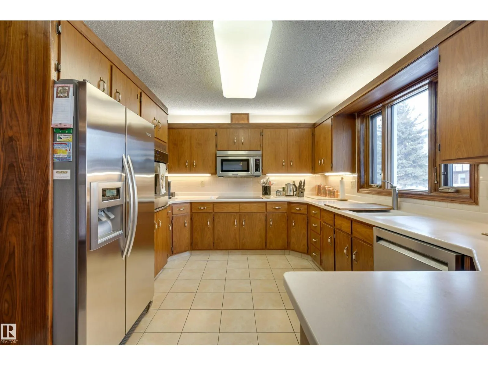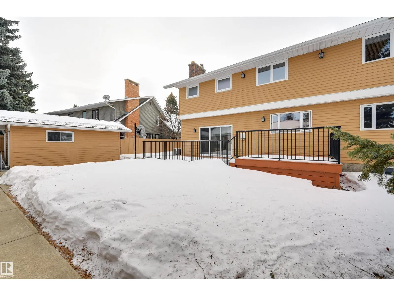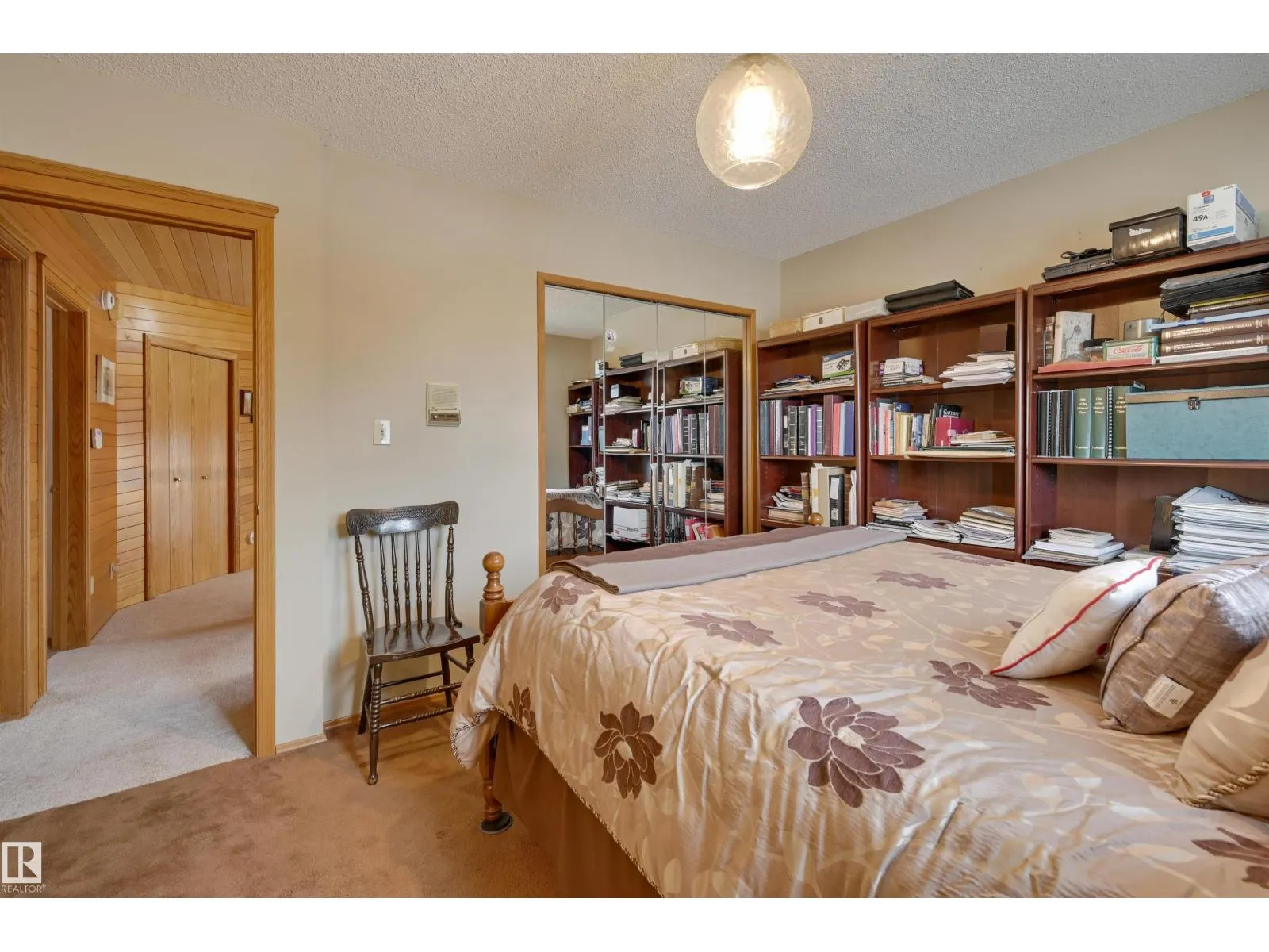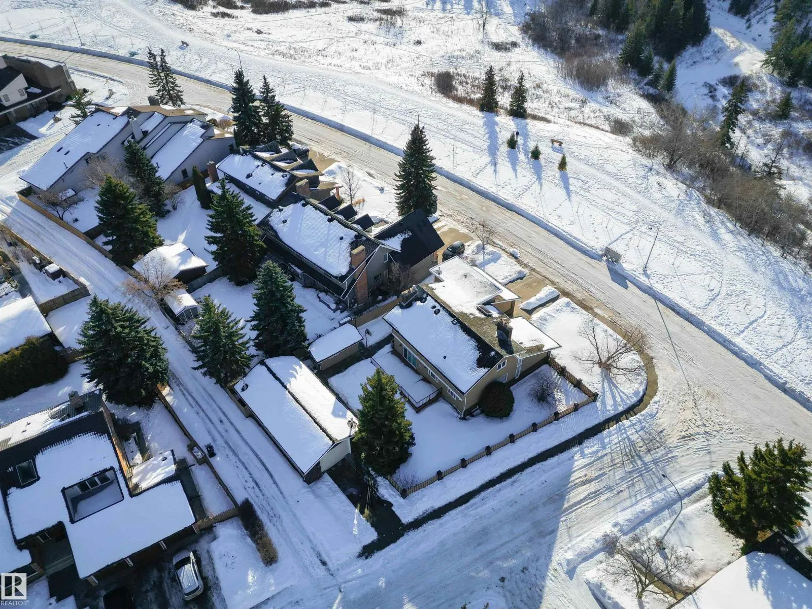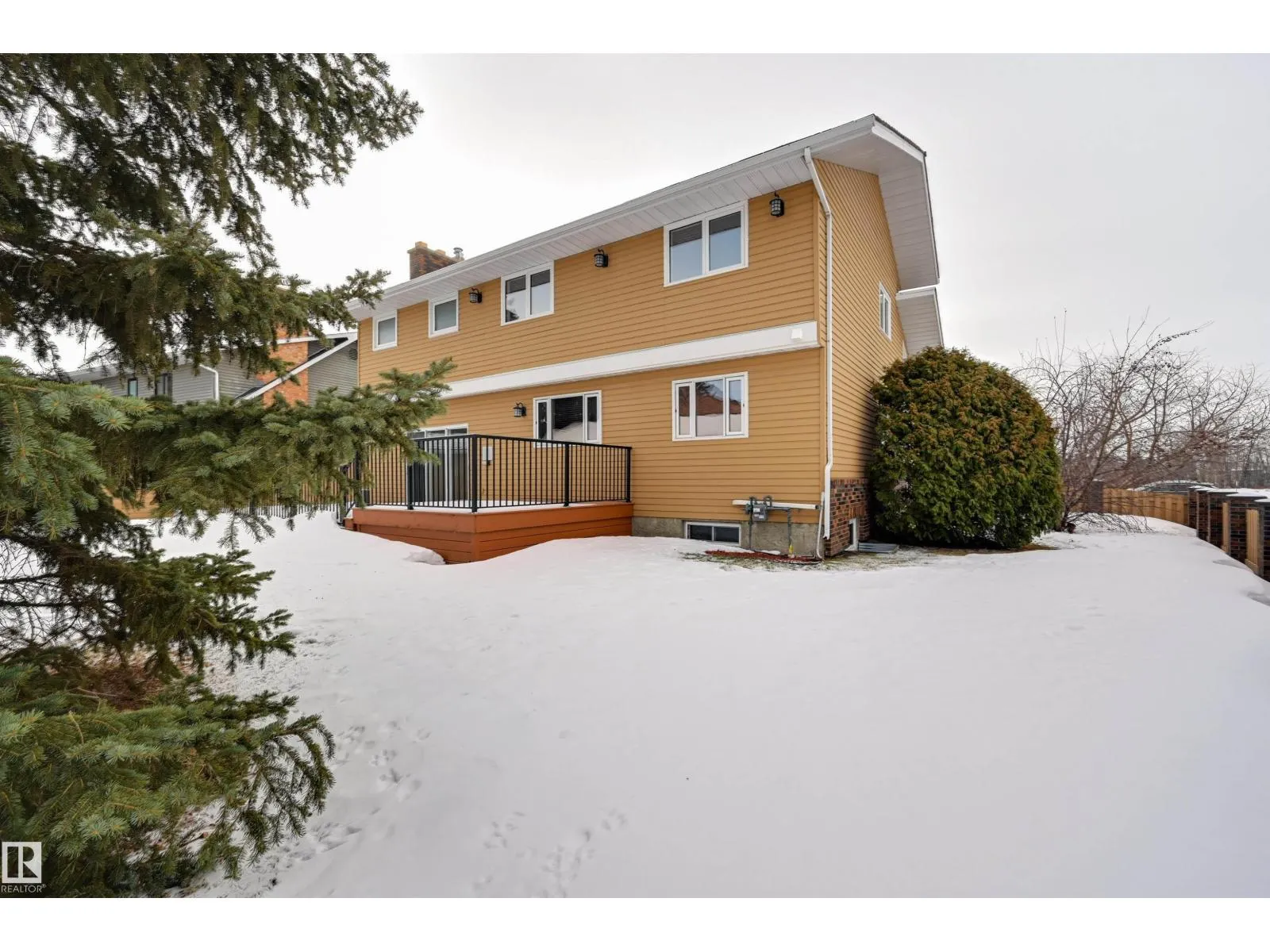 Located across from Big Bear Park with stunning views of Blackmud Creek Ravine this custom-built Birkholz home on a corner lot offers over 2900 sq ft plus a fully finished basement. Grand front entry leads to living room featuring a vaulted cedar ceiling & brick wood-burning fireplace, creating a warm & inviting space. The dining room is perfect for special occasions & enhanced by black walnut hardwood. The adjacent kitchen offers built-in oven, stove top, black walnut cabinetry, & a dining nook overlooking the backyard. The family room has access to the deck & second fireplace. Upstairs the primary suite includes a den, private balcony, cedar closet, & ensuite (2015). Three additional bedrooms & a full bath (updated in 2015). The finished basement features new carpet, a nanny suite plus 5th bedroom, & direct access to the attached garage. Additional highlights include a large deck, huge detached RV garage with work pit, cedar shakes (2012), & A/C. An exceptional home in a truly outstanding location. (id:27476)