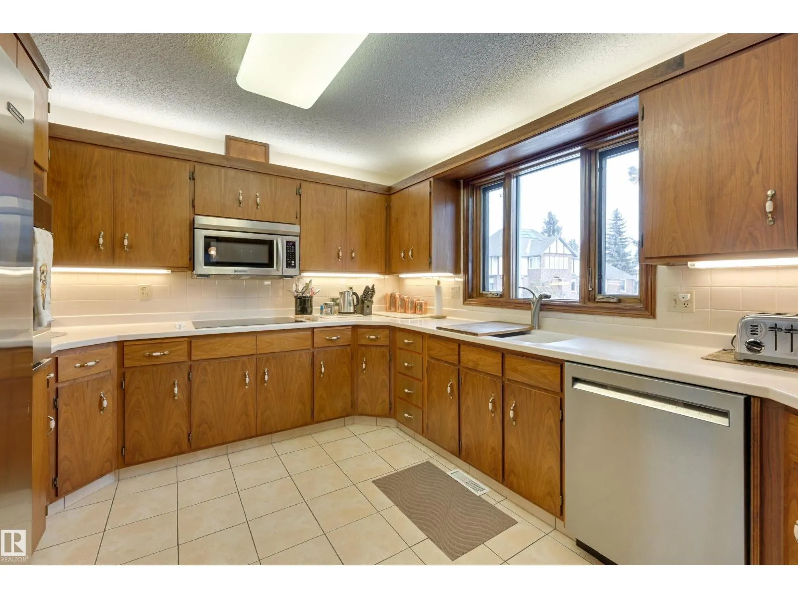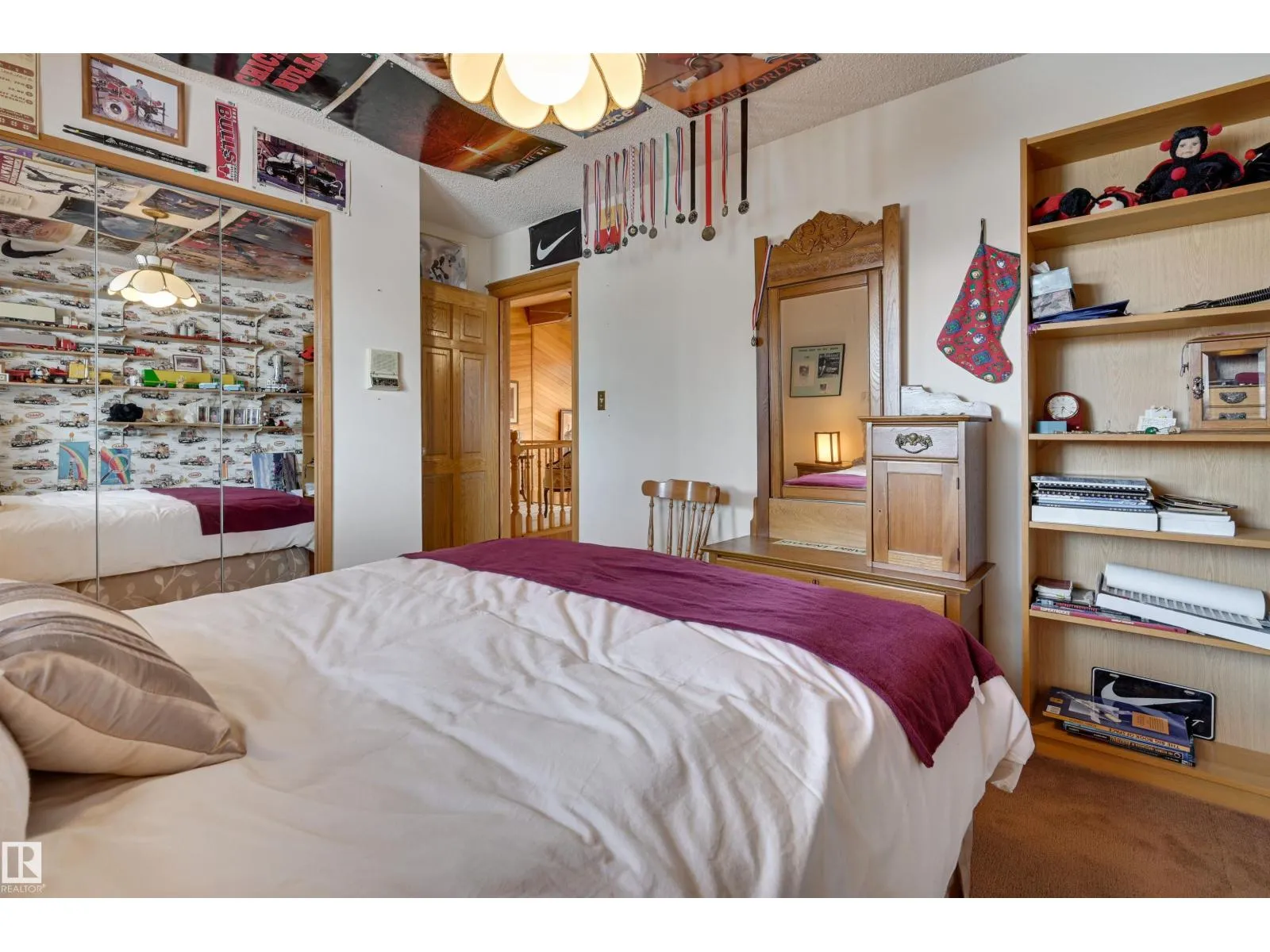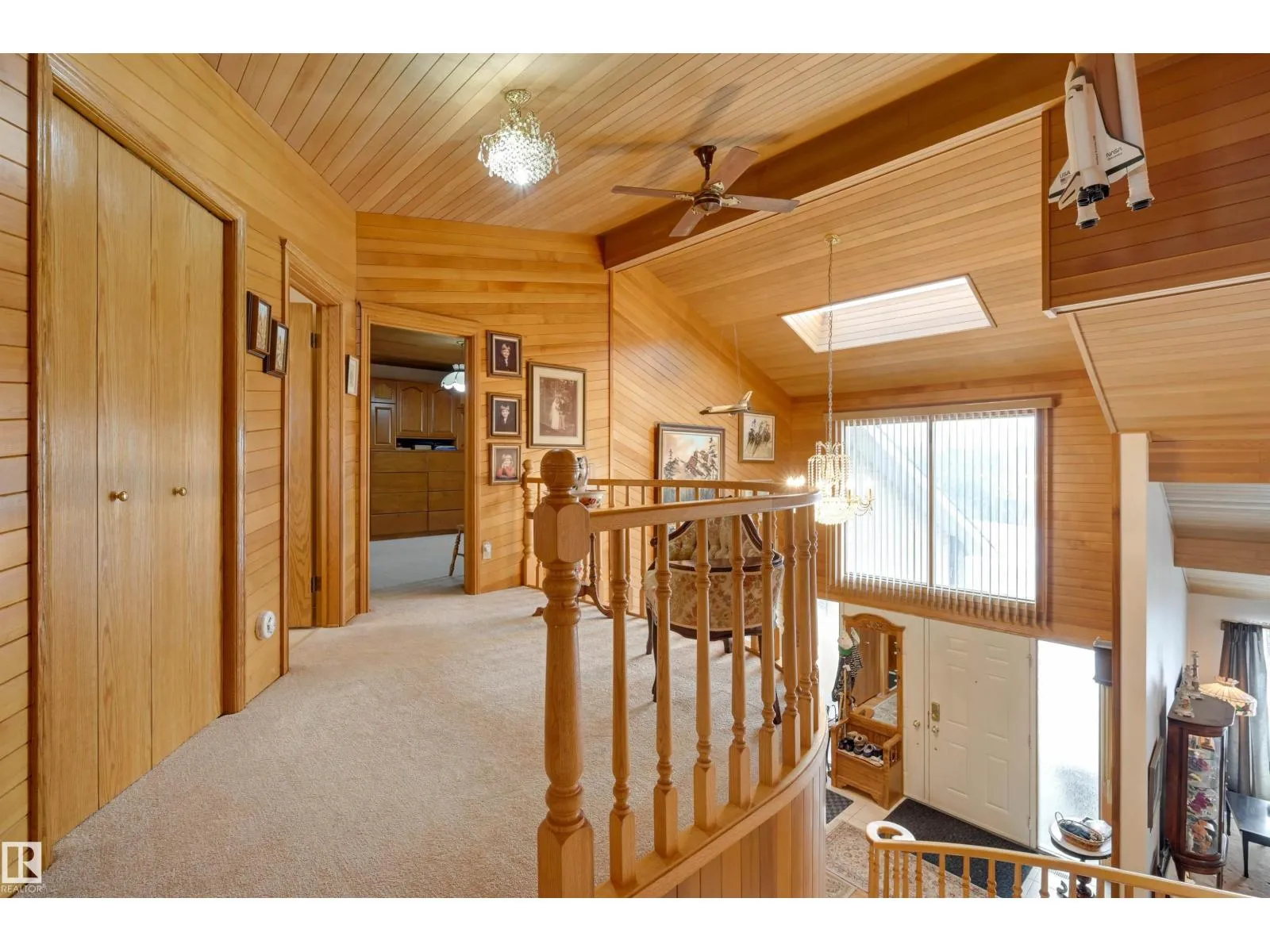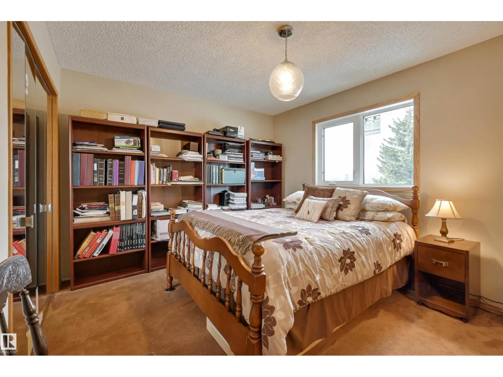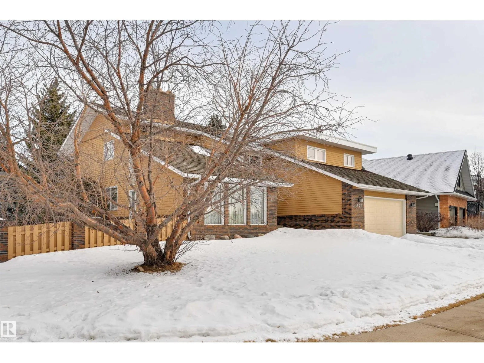Located across from Big Bear Park with stunning views of Blackmud Creek Ravine this custom-built Birkholz home on a corner lot offers over 2900 sq ft plus a fully finished basement. Grand front entry leads to living room featuring a vaulted cedar ceiling & brick wood-burning fireplace, creating a warm & inviting space. The dining room is perfect for special occasions & enhanced by black walnut hardwood. The adjacent kitchen offers built-in oven, stove top, black walnut cabinetry, & a dining nook overlooking the backyard. The family room has access to the deck & second fireplace. Upstairs the primary suite includes a den, private balcony, cedar closet, & ensuite (2015). Three additional bedrooms & a full bath (updated in 2015). The finished basement features new carpet, a nanny suite plus 5th bedroom, & direct access to the attached garage. Additional highlights include a large deck, huge detached RV garage with work pit, cedar shakes (2012), & A/C. An exceptional home in a truly outstanding location. (id:27476)