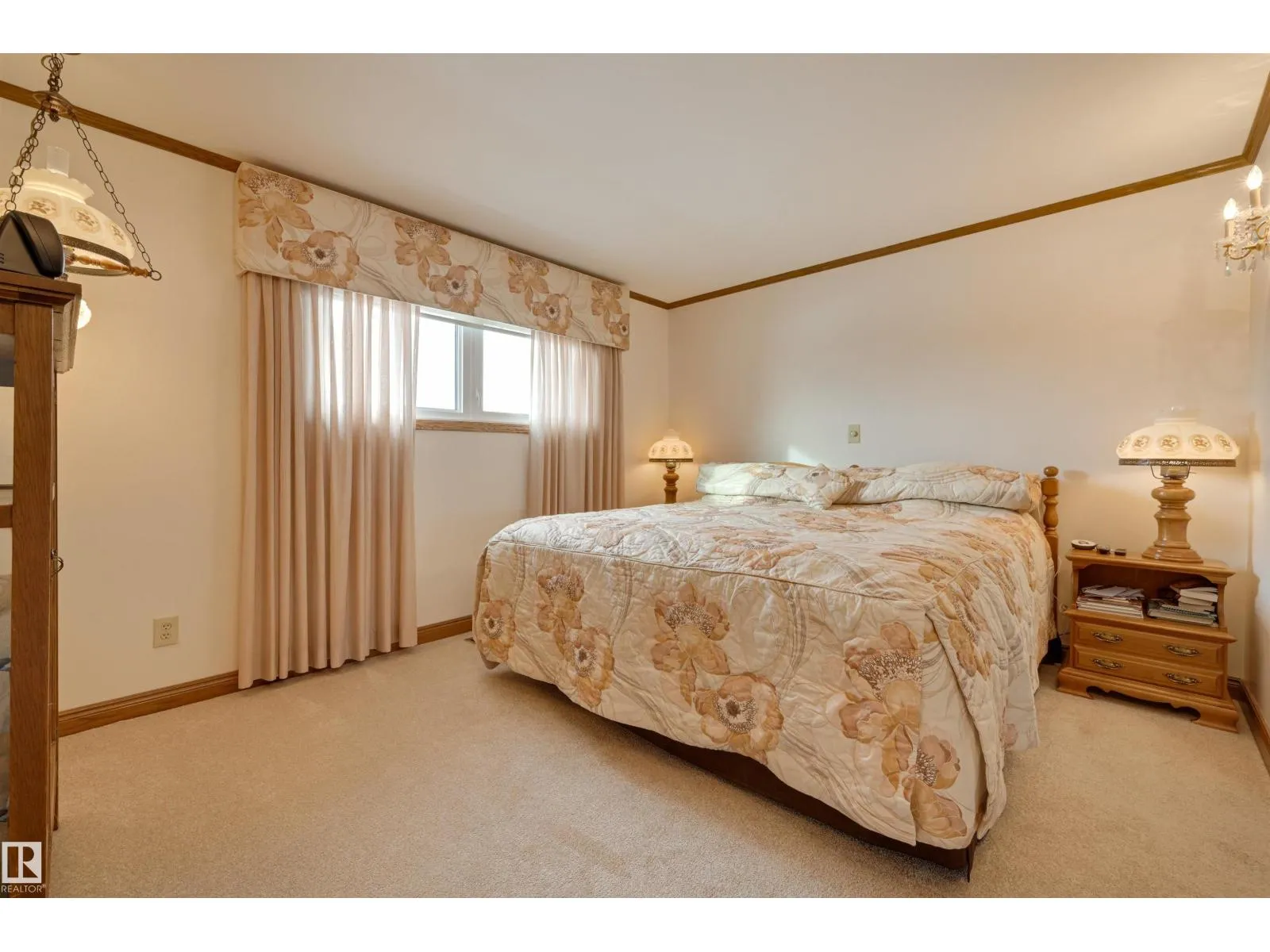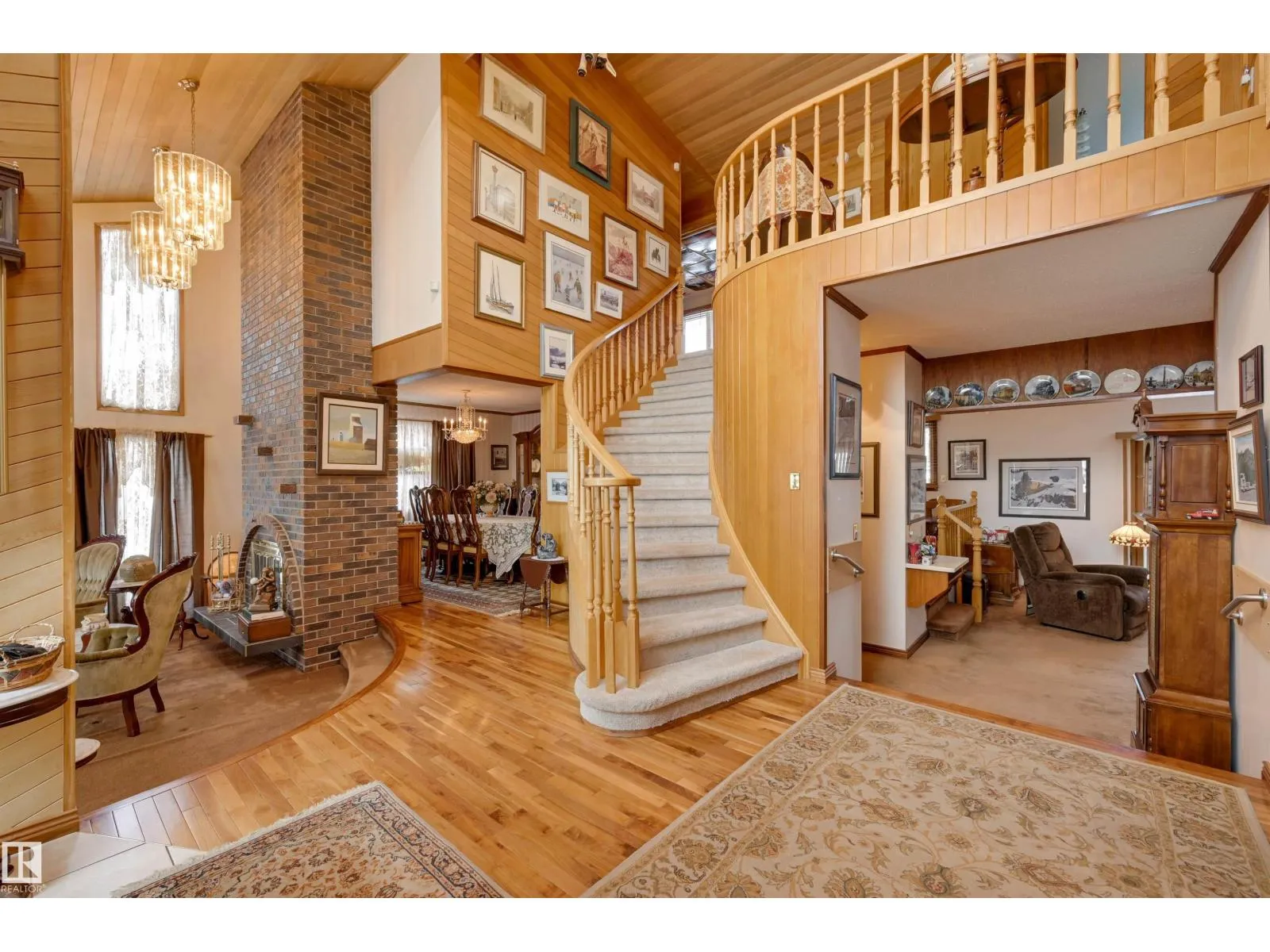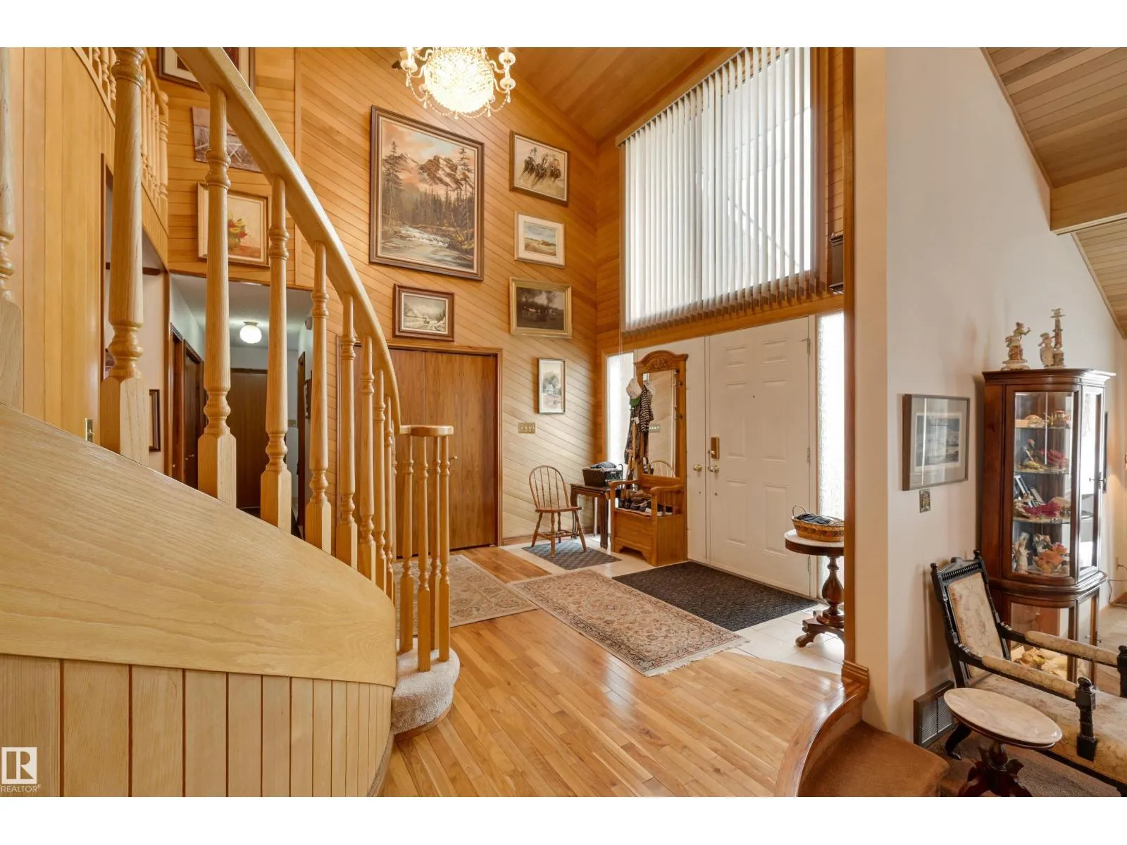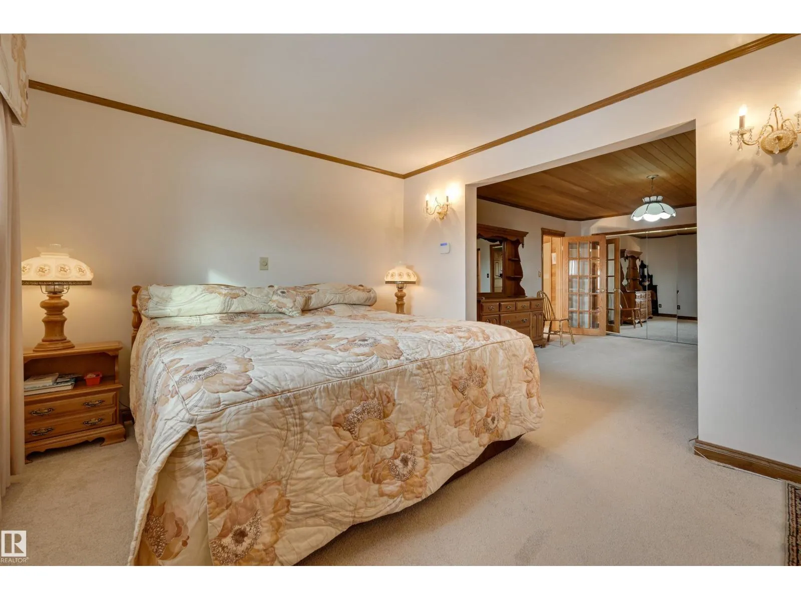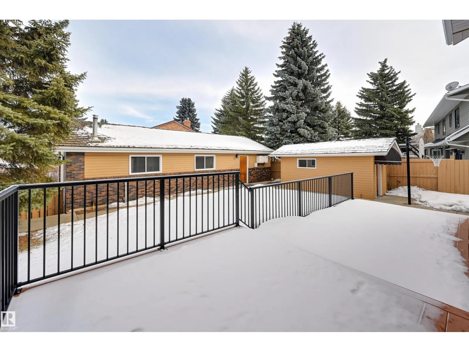 Located across from Big Bear Park with stunning views of Blackmud Creek Ravine this custom-built Birkholz home on a corner lot offers over 2900 sq ft plus a fully finished basement. Grand front entry leads to living room featuring a vaulted cedar ceiling & brick wood-burning fireplace, creating a warm & inviting space. The dining room is perfect for special occasions & enhanced by black walnut hardwood. The adjacent kitchen offers built-in oven, stove top, black walnut cabinetry, & a dining nook overlooking the backyard. The family room has access to the deck & second fireplace. Upstairs the primary suite includes a den, private balcony, cedar closet, & ensuite (2015). Three additional bedrooms & a full bath (updated in 2015). The finished basement features new carpet, a nanny suite plus 5th bedroom, & direct access to the attached garage. Additional highlights include a large deck, huge detached RV garage with work pit, cedar shakes (2012), & A/C. An exceptional home in a truly outstanding location. (id:27476)