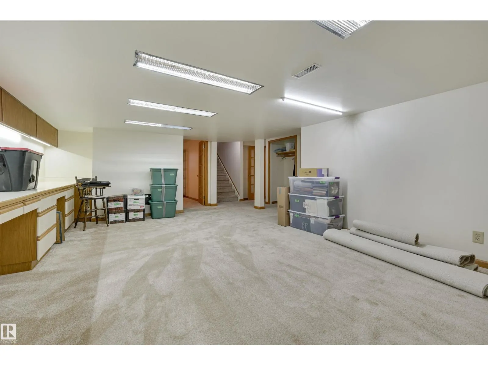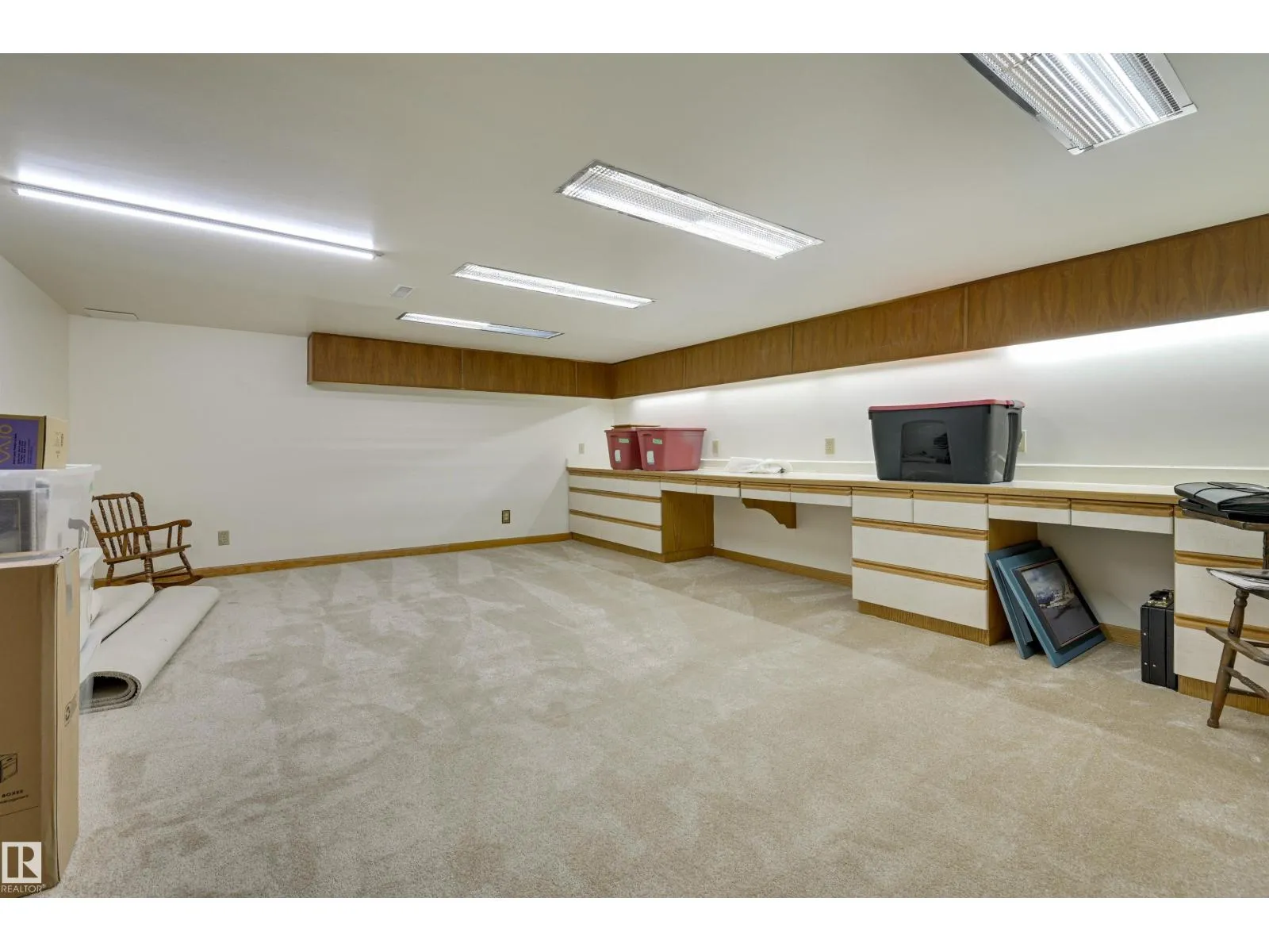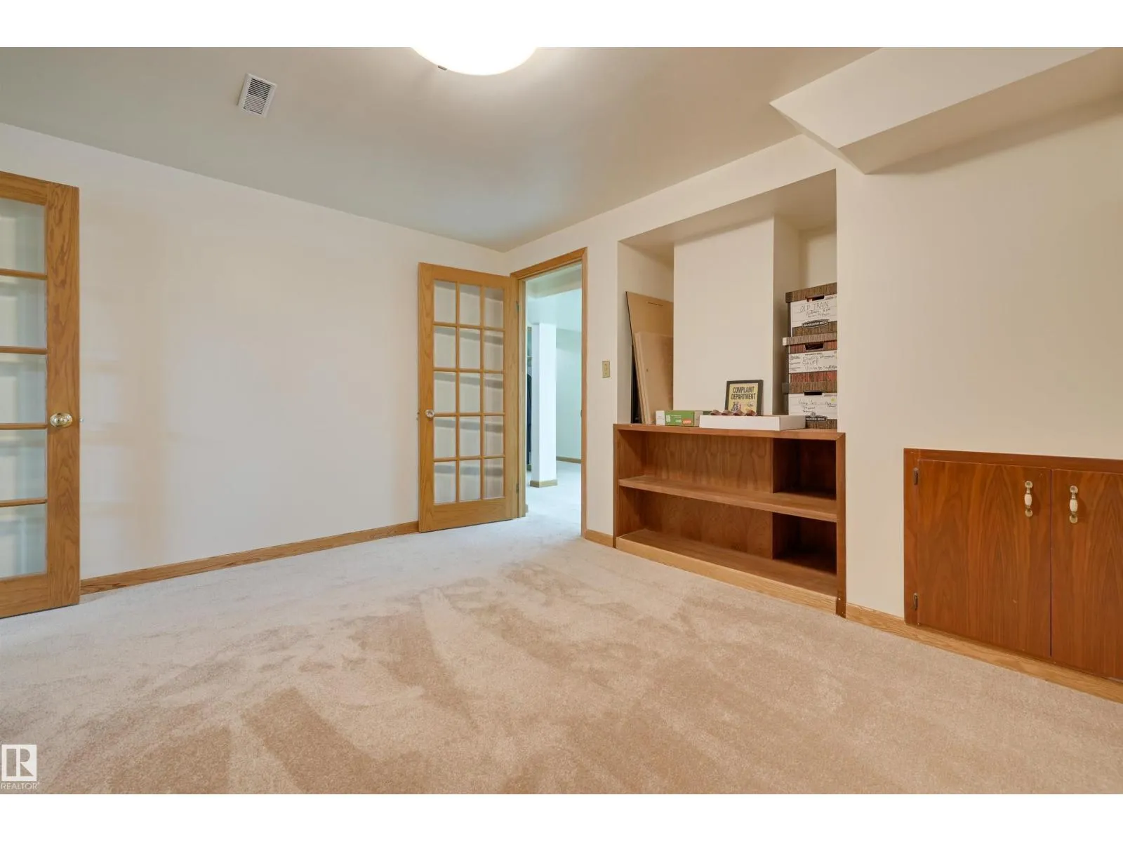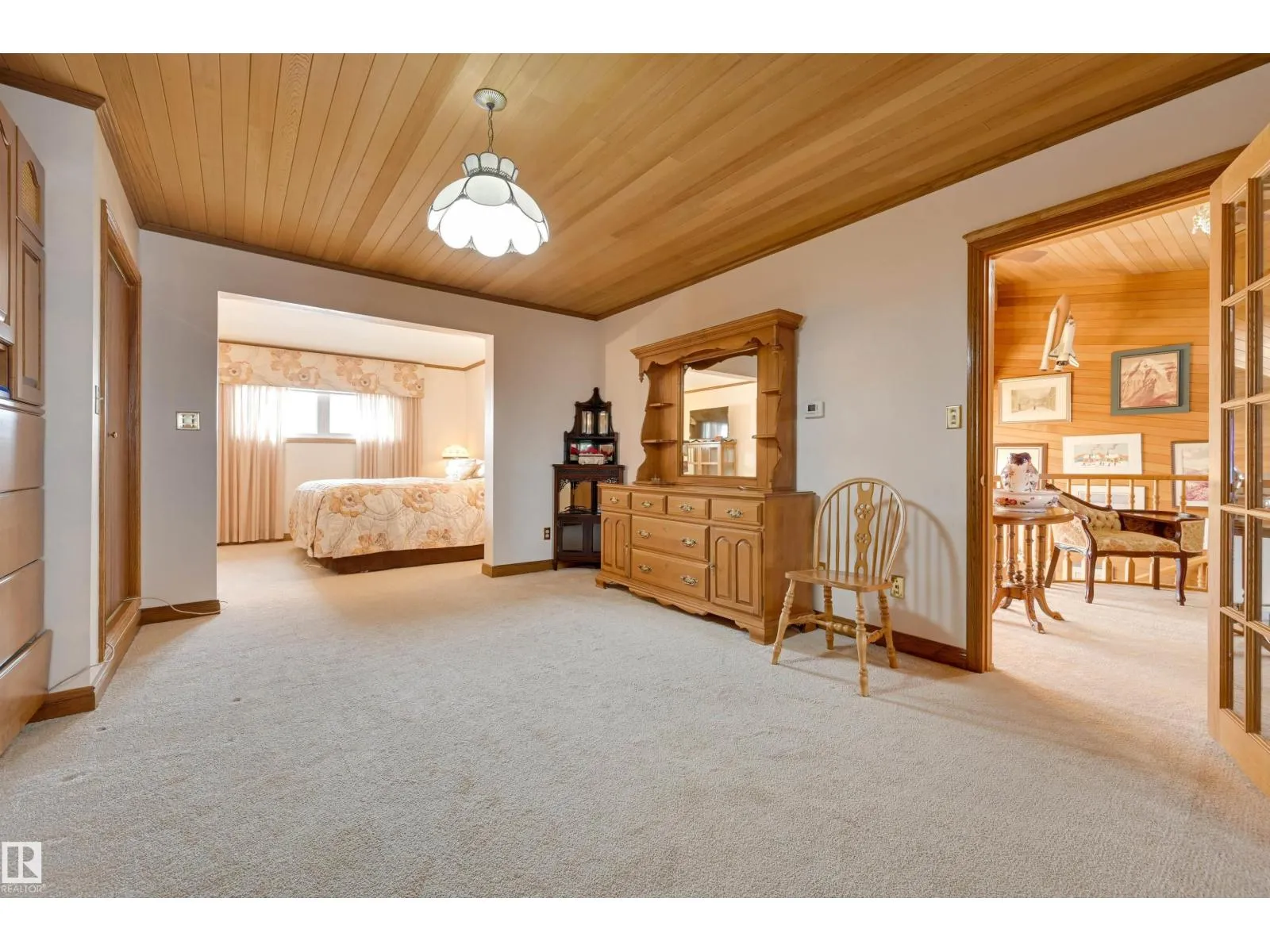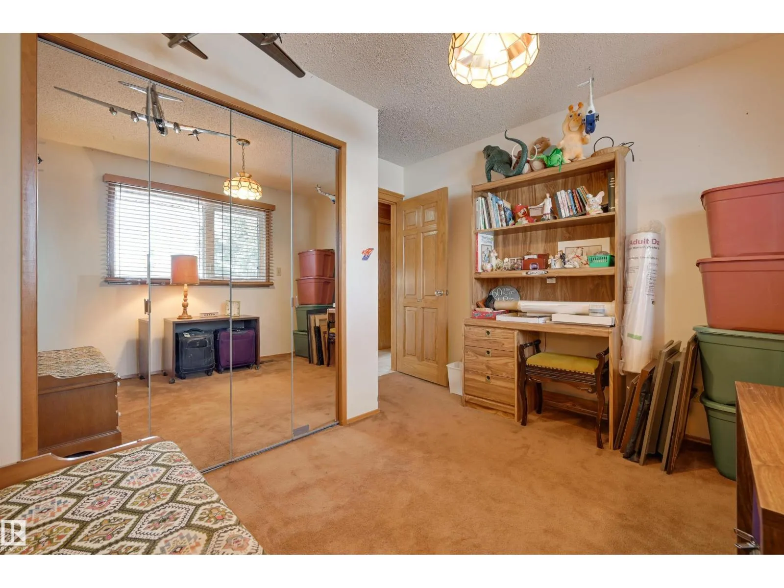 Located across from Big Bear Park with stunning views of Blackmud Creek Ravine this custom-built Birkholz home on a corner lot offers over 2900 sq ft plus a fully finished basement. Grand front entry leads to living room featuring a vaulted cedar ceiling & brick wood-burning fireplace, creating a warm & inviting space. The dining room is perfect for special occasions & enhanced by black walnut hardwood. The adjacent kitchen offers built-in oven, stove top, black walnut cabinetry, & a dining nook overlooking the backyard. The family room has access to the deck & second fireplace. Upstairs the primary suite includes a den, private balcony, cedar closet, & ensuite (2015). Three additional bedrooms & a full bath (updated in 2015). The finished basement features new carpet, a nanny suite plus 5th bedroom, & direct access to the attached garage. Additional highlights include a large deck, huge detached RV garage with work pit, cedar shakes (2012), & A/C. An exceptional home in a truly outstanding location. (id:27476)