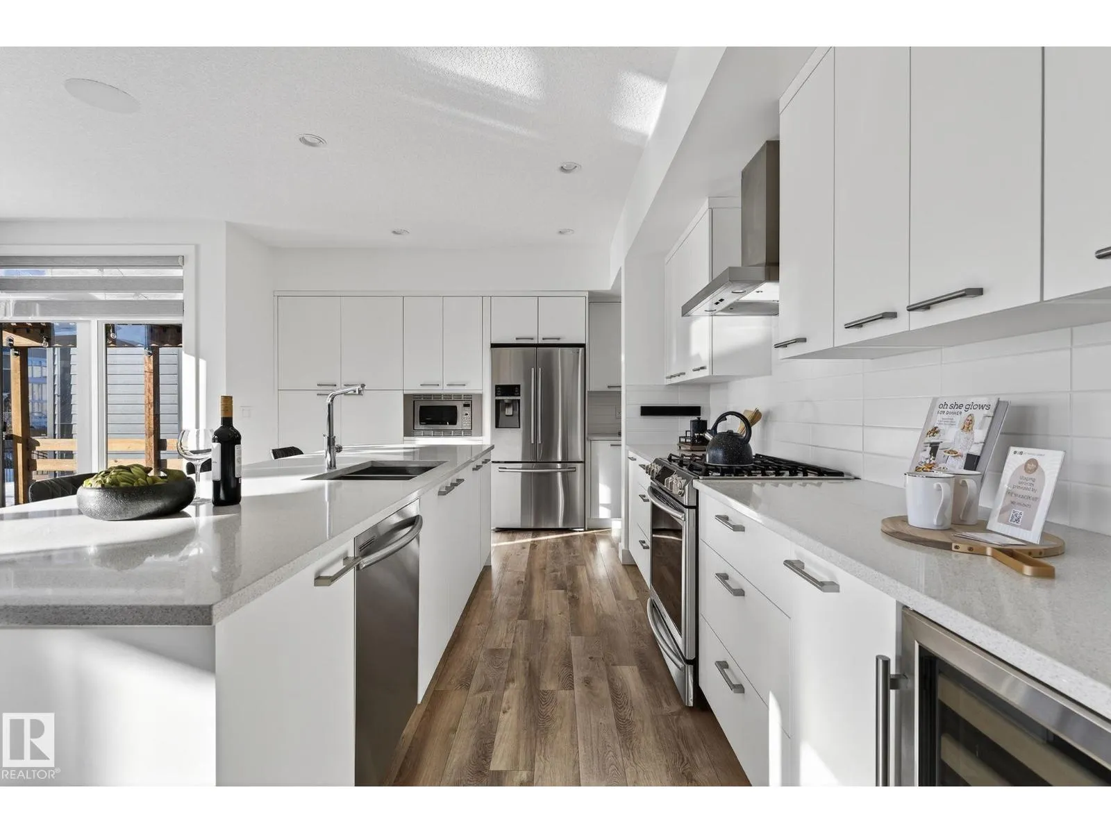Welcome to a home that balances modern elegance with effortless family living in Keswick Premier. This Kanvi-built 2-storey residence offers over 3,000 sq ft of bright, open space designed for connection and comfort. Sunlight pours through panoramic windows, illuminating the heart of the home where the chefâs kitchenâwith its large island, quartz countertops, and sleek stainless steel appliancesâinvites gathering, casual meals, and shared conversation. The living room, anchored by a dramatic 100 linear electric fireplace, provides the perfect backdrop for cozy evenings or lively entertaining. Upstairs, a spacious bonus room with its own fireplace offers flexibility for movie nights, study sessions, or quiet retreats, while the primary suite impresses with a spa-inspired 5-piece ensuite and a walk-through closet that leads directly to the laundry, making daily routines seamless. Outside, the south-facing backyard is a private haven, featuring low-maintenance turf, a composite deck, and a 6-person hot tub (id:27476)