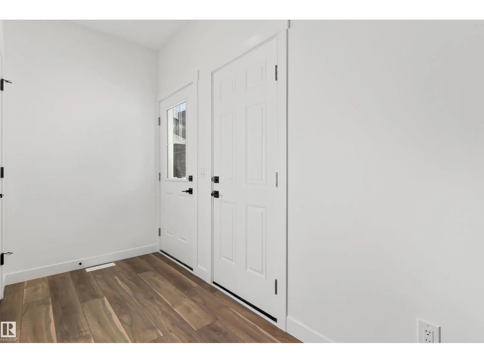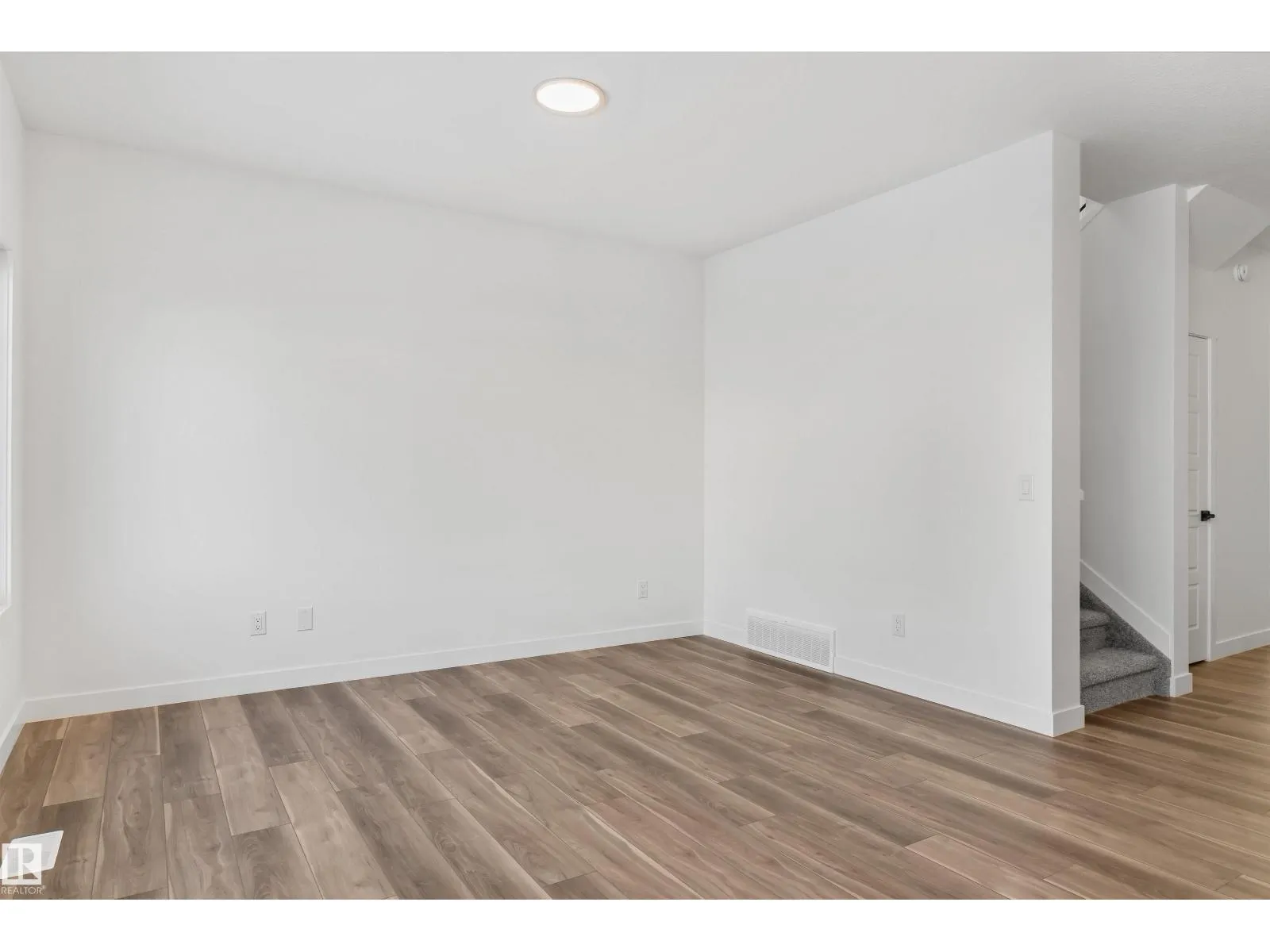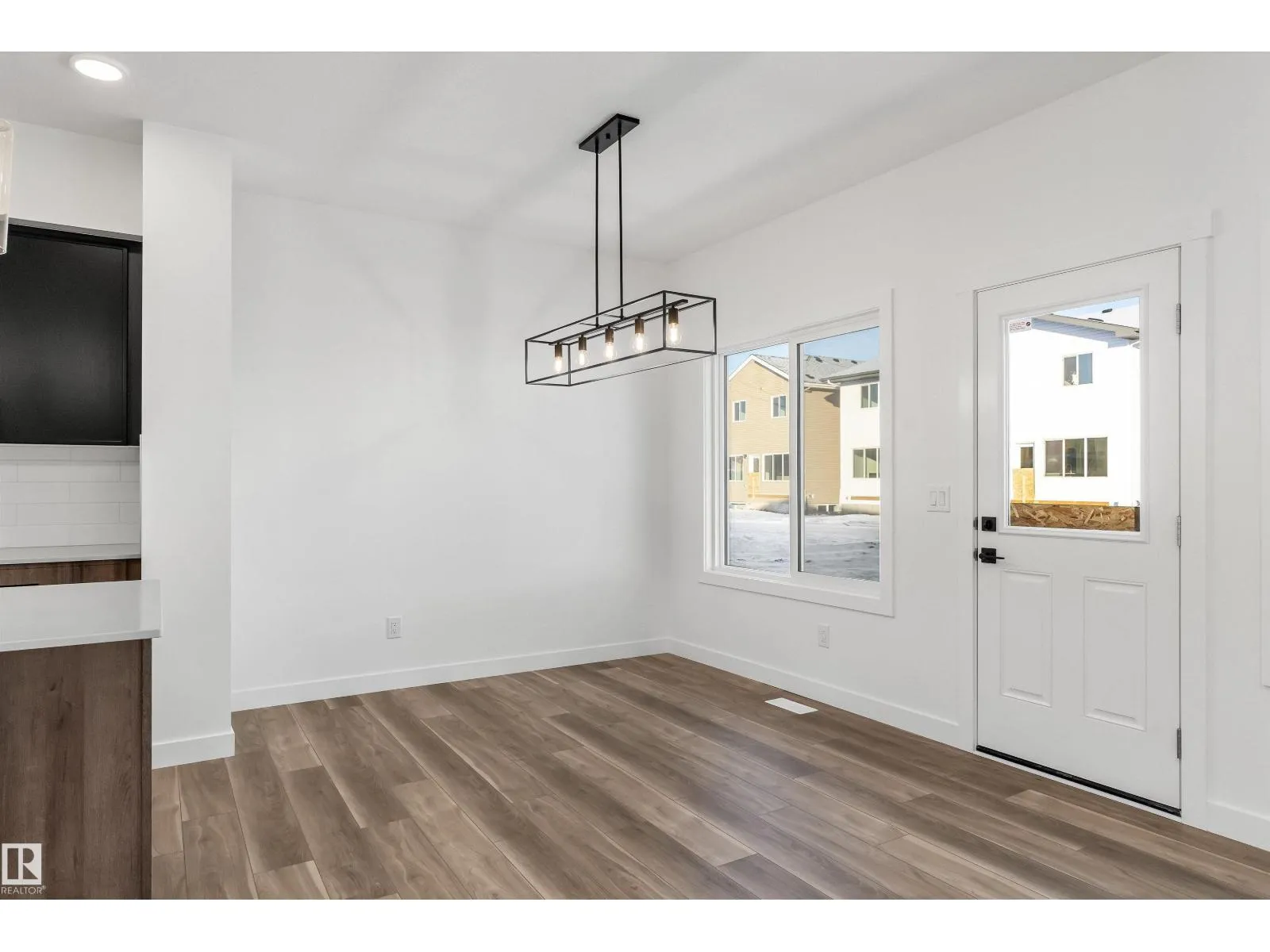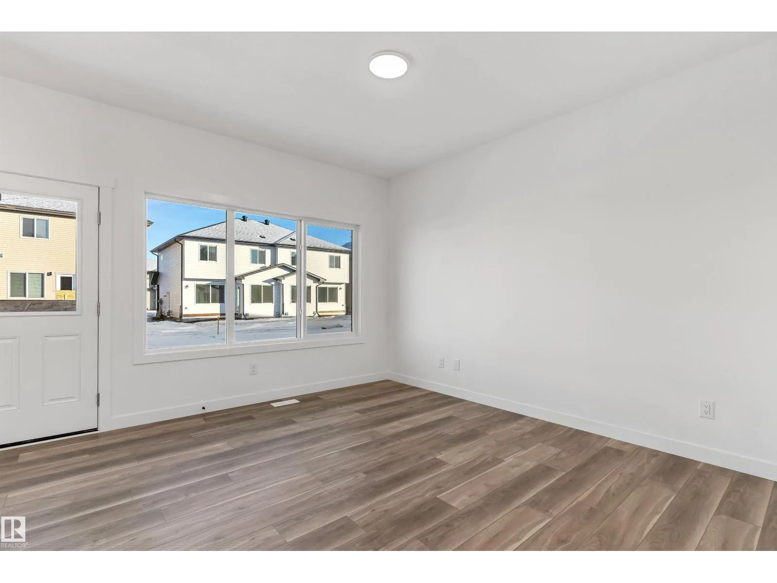 Built by Sterling Homes, this beautifully designed duplex in Aster offers bright, modern living in a Southeast Edmonton community known for its parks, schools, and convenient amenities. Triple pane windows and 9â ceilings fill the open-concept main floor with natural light, while luxury vinyl plank flooring adds warmth and durability. The kitchen features quartz countertops, a central island with seating, upgraded cabinetry, a corner pantry, chimney hood fan, and microwaveâperfect for family meals or entertaining. Large windows and a patio door connect dining and living areas to the backyard for seamless indoor-outdoor living. Upstairs, a spacious bonus room provides flexible space for movie nights, play, or a home office. The primary suite includes a walk-in closet and private 3-piece ensuite. Two more bedrooms, a full bath, and laundry complete the level. With a double attached garage, side entrance, upgraded railings, and basement rough-ins, this home blends comfort, function, and style. (id:27476)