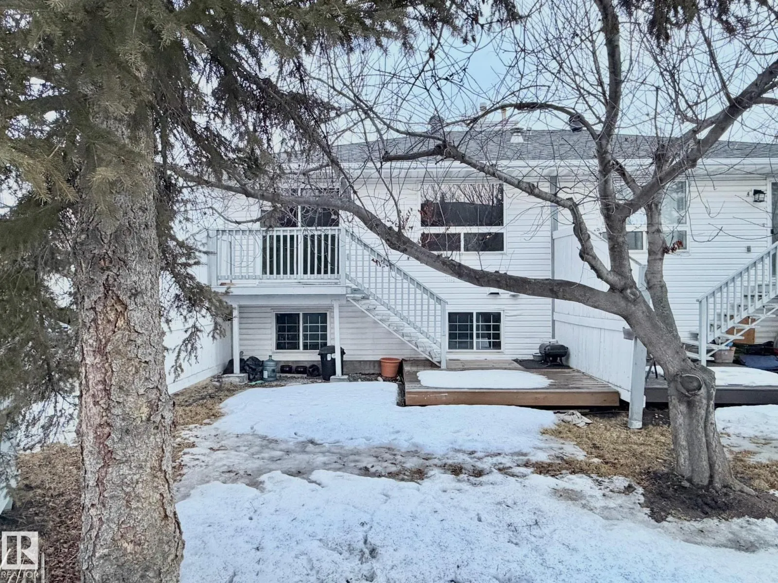 Step into this move-in-ready 3-bedroom, 2-bath END-UNIT townhouse, perfectly situated just steps from Grey Nuns Hospital and the LRT station. The main level boasts a bright, spacious living room with large picture windows, newer laminate flooring, and an open-concept kitchen featuring a functional island and pantry. A cozy gas fireplace enhances the dining and living areas, while patio doors lead to a private deckâperfect for relaxing or entertaining. The lower level offers a generous primary bedroom, two additional bedrooms, a full bathroom, and convenient in-suite laundry. This home provides added privacy with separate front and rear entrances and two energized parking stalls right at your doorstep. Enjoy a partially fenced yard, low-maintenance condo living, and quick possession. Close to shopping, schools, scenic walking paths, and all major amenities, this home offers exceptional value in a prime location. (id:27476)